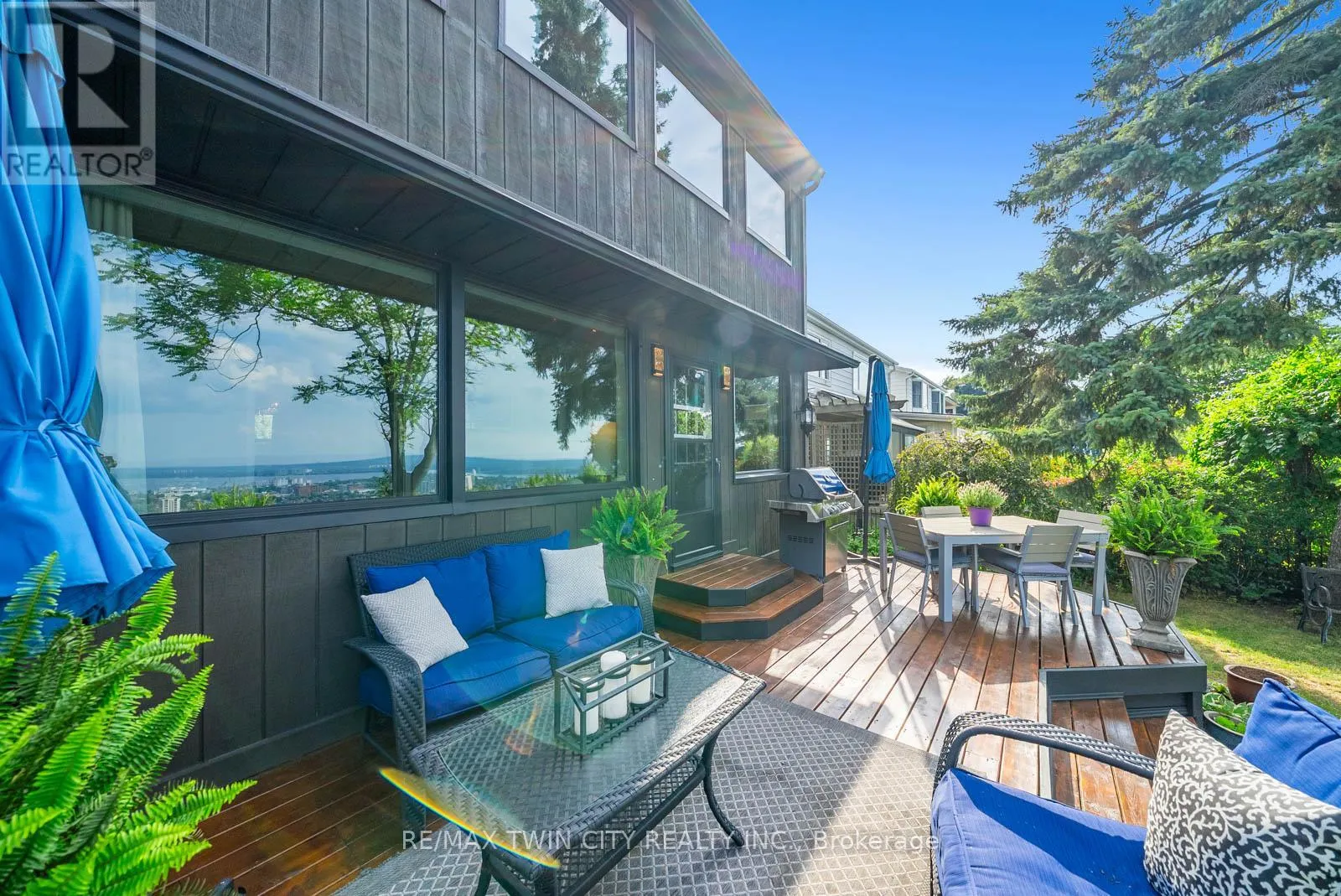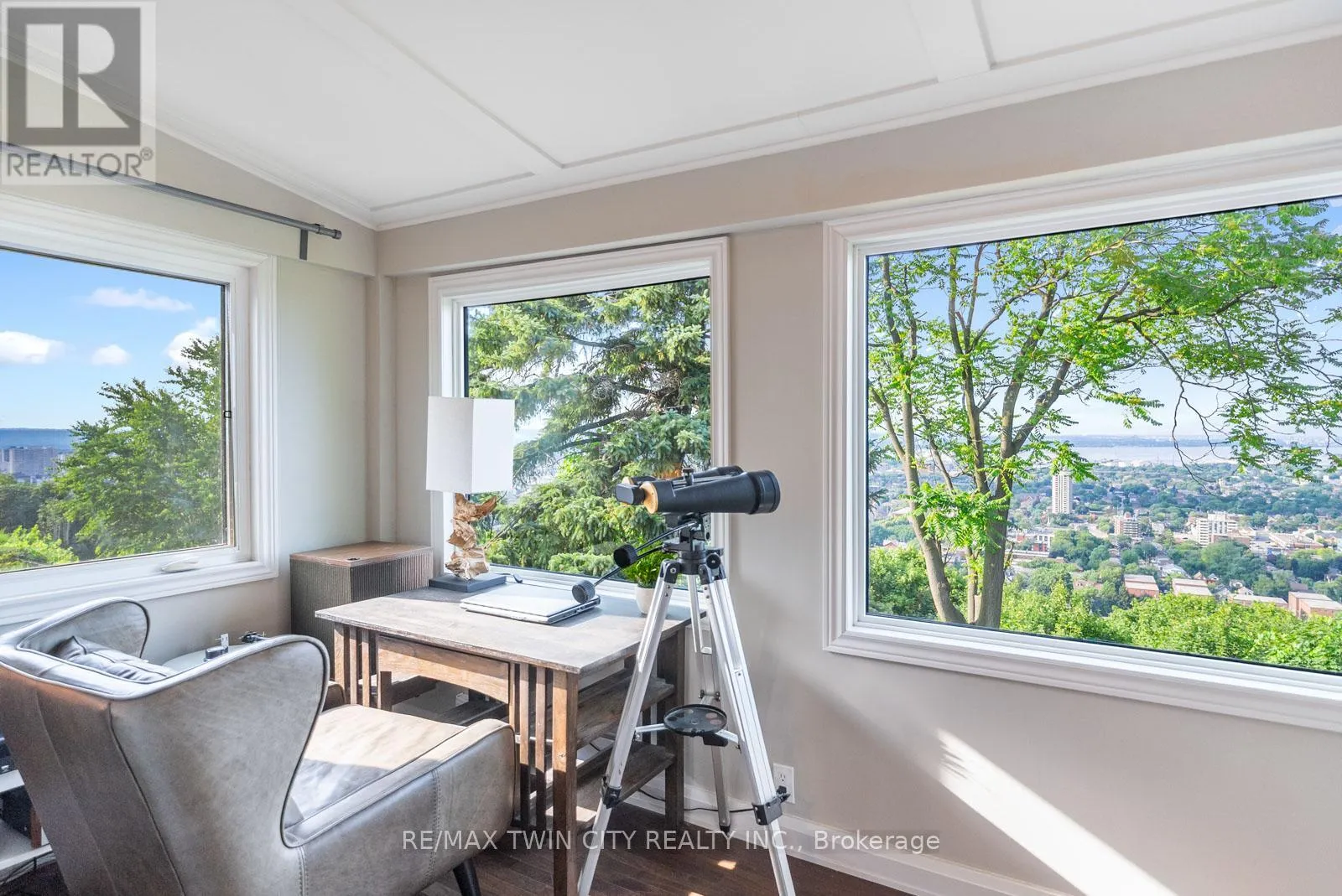 Cross Streets: Belwood. ** Directions: Concession to Belwood to Mountain Park. NEW PRICE! If these walls could talk, they'd have over 100 years of stories to tell. Perched on the edge of the Hamilton escarpment, this grand old soul has stood as a quiet witness to the unfolding of a city-watching the skyline stretch, the lights multiply & Lake Ontario shimmer through every season. The views are nothing short of breathtaking, shifting in mood & colour with the time of day & weather-sunrises that set the city aglow, misty mornings cloaked in fog, & glittering nights under the stars. Step inside & the magic continues. Ontario black walnut flooring runs underfoot in many principal rooms, offering warmth & elegance in equal measure. The main floor is rich with charm & function: a formal living room off the entry, a grand dining room made for conversation, & a peaceful sitting room/four-season sunroom at the back where the world seems to fall away in favour of sky & cityscape. The kitchen is timeless with crisp white cabinetry, & a thoughtfully placed 3pc bathroom with walk-in tiled shower adds flexibility. Upstairs, the front bedroom is a sanctuary of light with bay window framing the view & double closets. Two additional bedrooms serve as a home office & workout space, though the possibilities are endless. The upper-level bathroom is a statement-feminine, luxurious, with white chandeliers, soaker tub, & double vanity sinks that speak to slow mornings & self-care. Then there's the third floor: a true bonus level filled with creativity & light. The rear room-with its commanding view-is now a music studio, but could be a Primary Retreat, teen hangout, or artist's space. A full bath with tub/shower combo & a kitchenette complete this level, ideal for multi-generational living or long-term guests. Outside, the street is quiet & inviting, a blend of historic charm & tasteful new builds. But make no mistake-this home is unlike any other. It's not just a place to live, it's a place that has lived. And now, it's ready for its next chapter. Will it be yours? (id:27476)