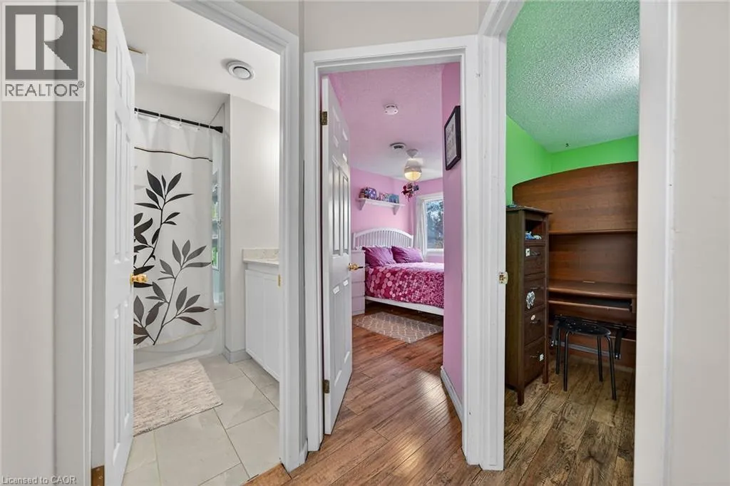 Upper Paradise to Hadeland to Fonthill Incredible starter home on Hamiltonâs West Mountain. This 3 bdrm., 2 storey END-UNIT townhome provides spacious living and is VALUE packed. Enjoy living across from Fonthill Park, perfect for puppies, kids, and morning walks. This home also features a 2-car driveway plus a fenced courtyard that backs onto a quiet treed area. Updates include a new forced-air gas furnace (2025), laminate flooring (2017), and a stunning 4-pc bathroom (2023). BATHROOM (2023) and a finished basement with garage door entry. This location is close to shopping, schools, public transit and so much more. (id:27476)