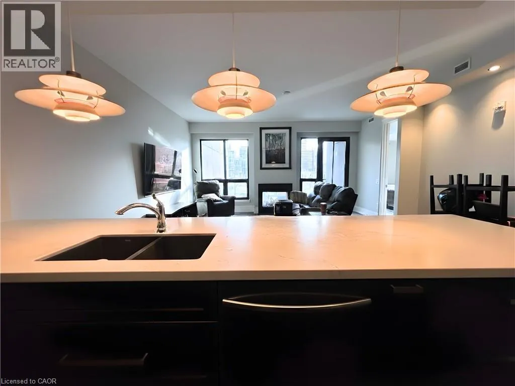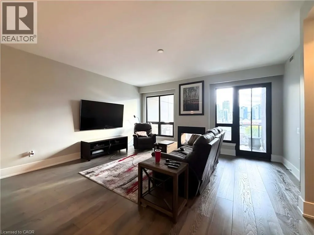 Located in the Residences at Acclamation on the southwest corner of Mulberry Street and James Street North Experience luxurious penthouse living in this exceptional 2-bedroom + den, 2-bath suite at 181 James Street North â one of Hamiltonâs most coveted boutique residences. Offering an expansive 1,378 sq. ft. of refined living space, this stunning penthouse blends contemporary design with premium upgrades, including remote-controlled blinds, custom built-in closet organizers, and an elegant indoor/outdoor gas fireplace that seamlessly connects the open-concept living area to the spacious private balcony complete with a BBQ grill. The chef-inspired kitchen and bright living space create an ideal setting for both entertaining and everyday comfort. The primary bedroom features a spa-like ensuite with an oversized soaker tub and sophisticated finishes, while the additional bedroom and den offer versatility for work, guests, or relaxation. With two underground parking spaces, an oversized locker, in-suite laundry, and access to building amenities such as a fitness centre and rooftop terrace, this residence leaves nothing to be desired. Located in the vibrant James North Arts District, youâre just steps from top restaurants, galleries, boutiques, the West Harbour GO Station, and the waterfront. Available December 15th at $3,599 + hydro (water, gas, internet/cable, and parking included). This immaculate penthouse delivers the ultimate in luxury, comfort, and convenience. (id:27476)