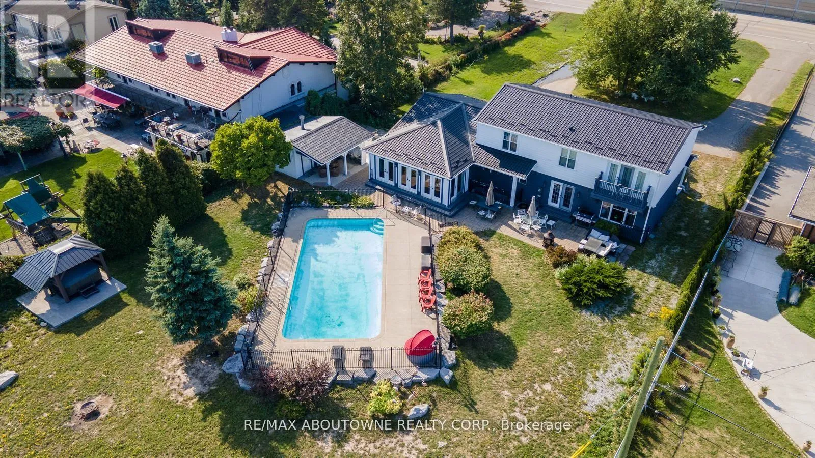 Fruitland/ QEW Perched on the tranquil shores of Lake Ontario, this exquisite home offers breathtaking, unobstructed views of the Toronto skyline, refined living spaces, and numerous upgrades throughout. Inside, the inviting layout features spacious principal rooms with hardwood floors and pot lights. The dining room showcases stunning lake views, while the family room boasts a cozy gas fireplace. Built-in speakers enhance the ambiance of the living room. The chefs kitchen impresses with stainless steel appliances, granite countertops, and hardwood flooring. The primary bedroom serves as a private retreat with a 3-piece ensuite, a walk-in closet, and hardwood floors. Three additional bedrooms provide ample space, including one with serene lake views and others overlooking the lush front yard. The versatile lower level includes a bedroom, a full washroom, and walk-up access to the backyard oasis. Outdoors, enjoy a 16' x 40' concrete pool set against a tranquil waterfront backdrop, along with aprivate outdoor sauna for ultimate relaxation. This home effortlessly blends luxury, comfort, and style perfect for your refined lifestyle. (id:27476)
