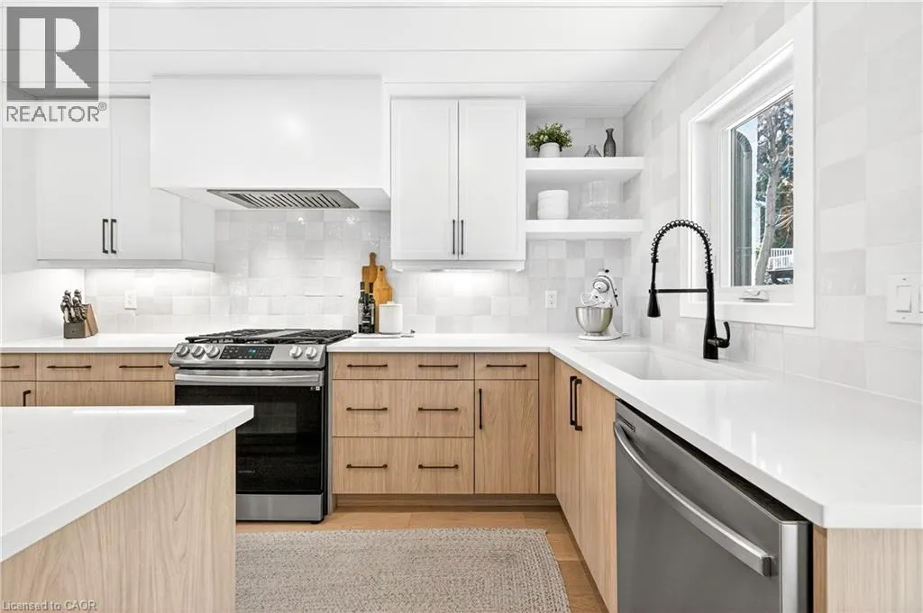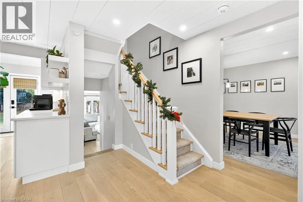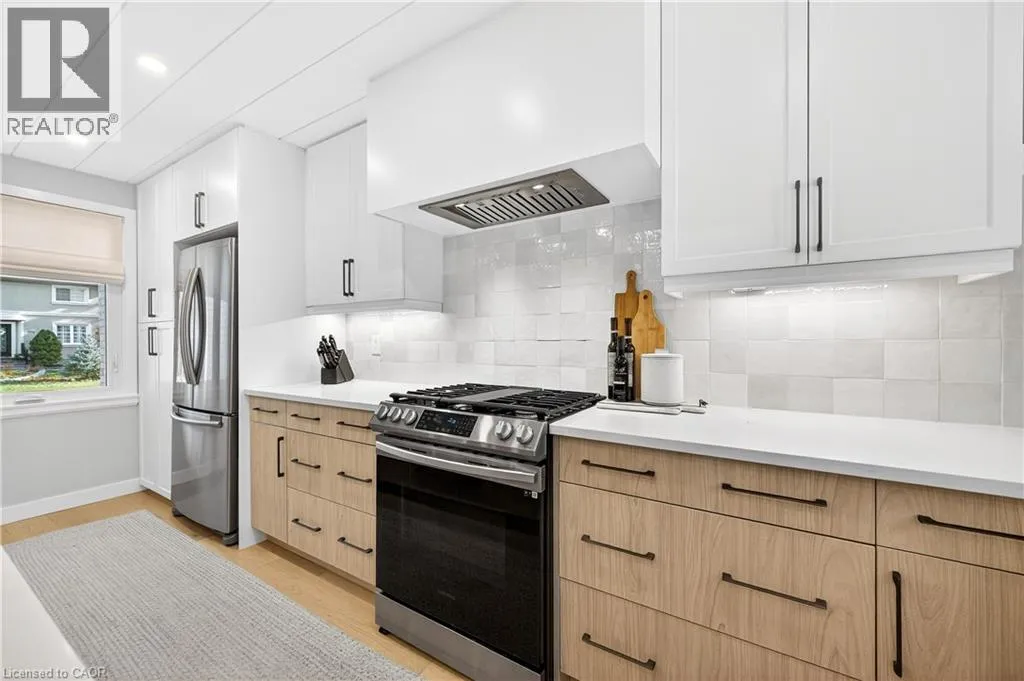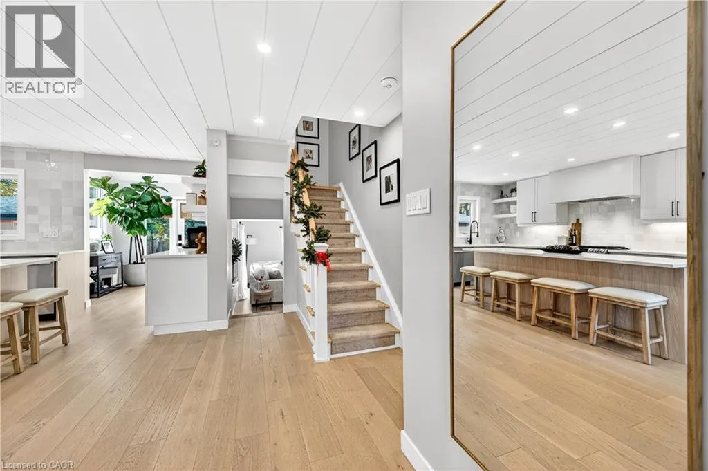 Turn onto Central Dr from Wilson St. 4th house in on the left. Exceptional opportunity in one of Ancasterâs most sought-after pockets. Situated on family-friendly Central Drive, this home sits steps from parks, schools, trails, and steps to Ancaster Village, shopping, restaurants, and highway access â truly an unbeatable location. This property has been extensively updated and expanded with a permitted addition (2024) that added a full garage, a versatile flex space (ideal for an office or playroom), and two extra bedrooms above. Nearly every major component of the home has been modernized in the last few years: complete kitchen renovation (2021) with all new appliances, new flooring, subfloor and trim throughout, updated mechanical systems, new windows and doors, fully refreshed bathrooms, and shiplap ceilings on the main level. Exterior improvements include a full-property fence (2023), a truly unique and beautiful permitted backyard gazebo (2025), brand new driveway, concrete pad, complete property re-grading, updated drainage, new steps, gutter guards, new eaves/soffits/fascia, and a new roof on the entire home (2024). Insulation upgrades include spray foam in the loft/office and blown-in top-up over the primary bedroom. The addition is serviced with its own furnace and HRV for efficient comfort. A rare opportunity to move into a beautifully updated home in an unbeatable Ancaster location â completely turn-key and ready to enjoy. (id:27476)