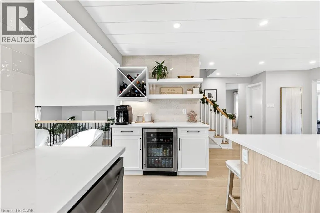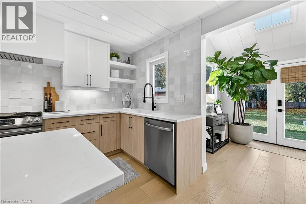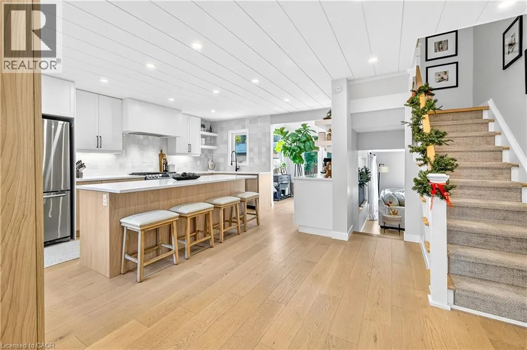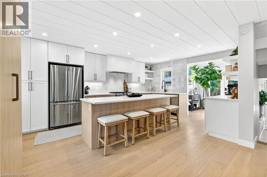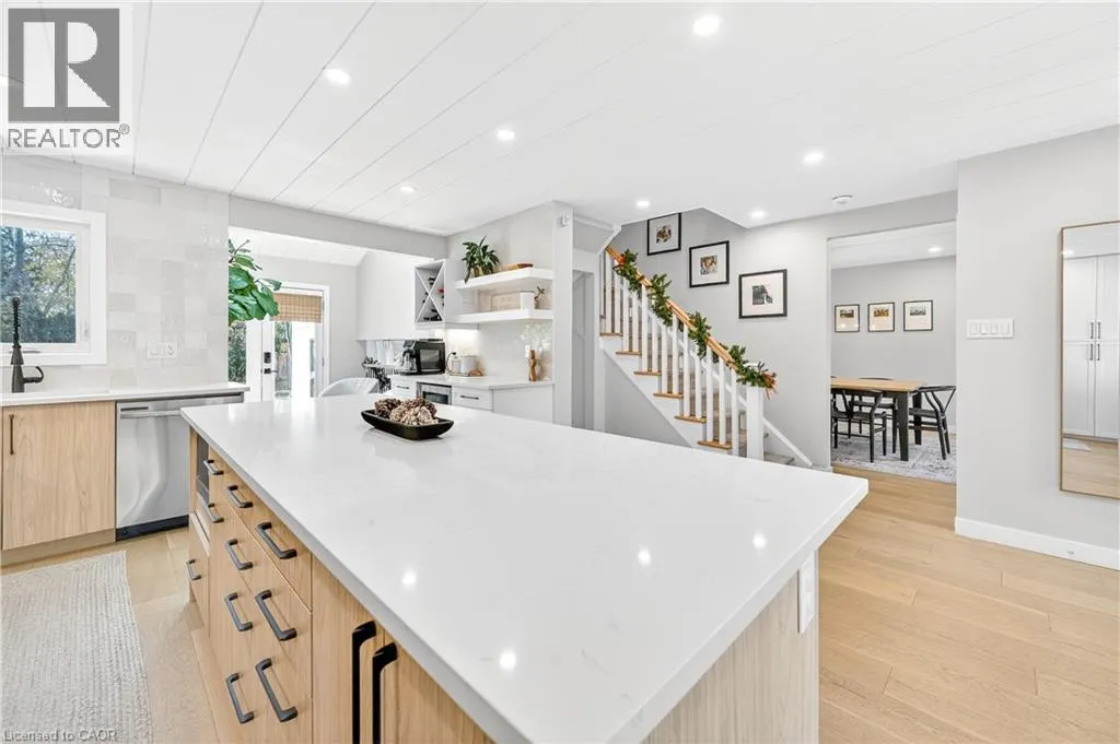 Turn onto Central Dr from Wilson St. 4th house in on the left. Exceptional opportunity in one of Ancasterâs most sought-after pockets. Situated on family-friendly Central Drive, this home sits steps from parks, schools, trails, and steps to Ancaster Village, shopping, restaurants, and highway access â truly an unbeatable location. This property has been extensively updated and expanded with a permitted addition (2024) that added a full garage, a versatile flex space (ideal for an office or playroom), and two extra bedrooms above. Nearly every major component of the home has been modernized in the last few years: complete kitchen renovation (2021) with all new appliances, new flooring, subfloor and trim throughout, updated mechanical systems, new windows and doors, fully refreshed bathrooms, and shiplap ceilings on the main level. Exterior improvements include a full-property fence (2023), a truly unique and beautiful permitted backyard gazebo (2025), brand new driveway, concrete pad, complete property re-grading, updated drainage, new steps, gutter guards, new eaves/soffits/fascia, and a new roof on the entire home (2024). Insulation upgrades include spray foam in the loft/office and blown-in top-up over the primary bedroom. The addition is serviced with its own furnace and HRV for efficient comfort. A rare opportunity to move into a beautifully updated home in an unbeatable Ancaster location â completely turn-key and ready to enjoy. (id:27476)
