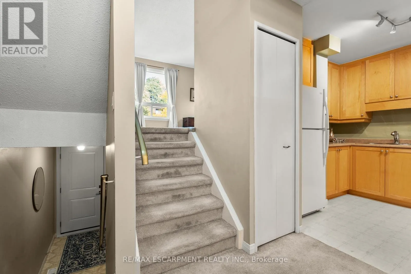 Cross Streets: Stone Church & Garth. ** Directions: Garth, West onto Stone Church, East into the complex, follow the bend, first house on the right. Welcome to this beautifully maintained end-unit townhome in one of Hamilton's most desirable West Mountain communities. Designed with a unique split-level layout, this home offers the perfect balance of openness and separation across its bright, spacious levels. The welcoming foyer leads up to an eat-in kitchen and dining area with updated cabinetry and direct access to the fenced, low-maintenance yard - perfect for morning coffee or weekend BBQs. Just above, the living room features large windows that fill the space with natural light. The upper levels include a primary bedroom retreat complete with an updated 4-piece bathroom, followed by two additional bedrooms on their own level, offering privacy and flexibility for family, guests, or a home office. The double-deep driveway and garage provide parking for three vehicles. The unfinished basement includes laundry facilities and plenty of storage space. Recent updates include attic and basement insulation (2023), new windows and doors (2025), and a furnace replaced 4 years ago. Located close to parks, shopping, schools, and highway access - this home combines comfort, convenience, and value in a sought-after West Mountain neighbourhood. (id:27476)