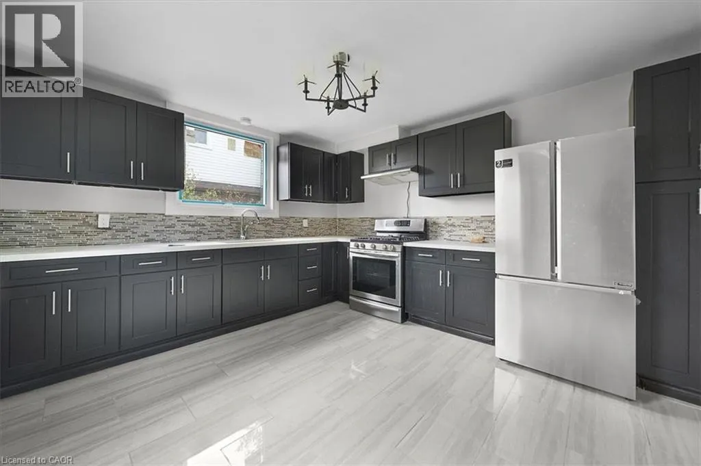 Go east Down Upper James Welcome to 687 Upper James Street - a beautifully updated home in a prime location close to shopping centers, public transit, highway access, and great schools. The bright upper level features 3 spacious bedrooms, a brand-new modern kitchen with quartz countertops and new appliances, and a fully renovated bathroom. The finished basement, with a separate entrance, offers 2 additional bedrooms, a full kitchen, and a 3-piece bathroom - perfect for extended family or potential rental income. Tenants currently renting the basement. Please allow 24 hours notice. (id:27476)