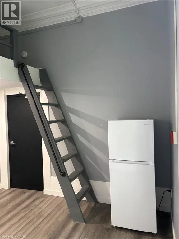 James to West on Bold to North on MacNab Welcome to the Apollo apartments in the sought after Durand neighbourhood. This micro bachelor apartment is conveniently located within steps of all James south has to offer including the GO station. This layout has private 3 piece washroom, kitchenette with sink and fridge, plus loft style, double size, bed platform accessed by ladder. This is the perfect solution for students and young professionals embracing a modern, downtown lifestyle. This secure Building is under new management with great friendly, respectful neighbours. Heat and water are included in the rent cost. Coin op laundry is available on site Electricity and internet/cable are the responsibility of the tenant. Rental application, current credit report and score, plus two month's of income verification required. Singlekey welcome. (id:27476)