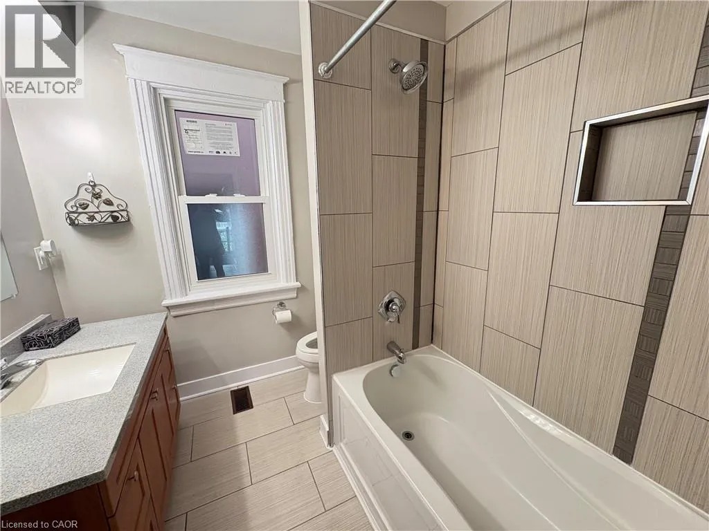 Maine and Gage Spacious 2-Level Suite in a Charming Hamilton Duplex â 71 Barnesdale Blvd. Unit 2 Step inside this beautiful 2-level suite located on a picturesque boulevard in Hamilton. Offering 3 bedrooms and 2 bathrooms across the upper two levels of a well-maintained duplex, this home provides both comfort and character. On the first level, youâll find a large eat-in kitchen with white appliances (including a dishwasher), plenty of cupboard space, and direct access to a private, oversized balcony. The living room features gorgeous bay-style windows that flood the space with natural light and is large enough to accommodate both a living and dining area. Also on this level is a generously sized bedroom with a closet, along with a full 4-piece bathroom. Upstairs, the second level offers two more spacious bedrooms and a 3-piece bathroom with shower. For added convenience, the unit also includes in-suite laundry. This unique multi-level suite combines space, charm, and functionalityâan excellent opportunity that wonât last long. $2250 + hydro (id:27476)