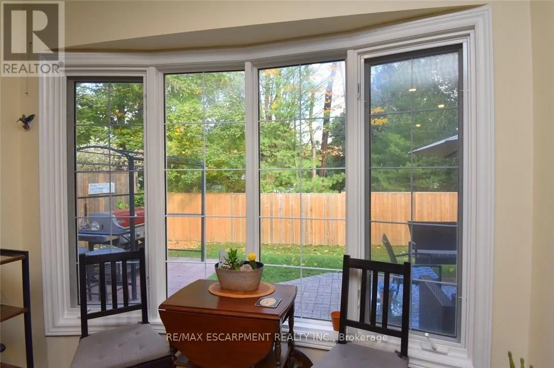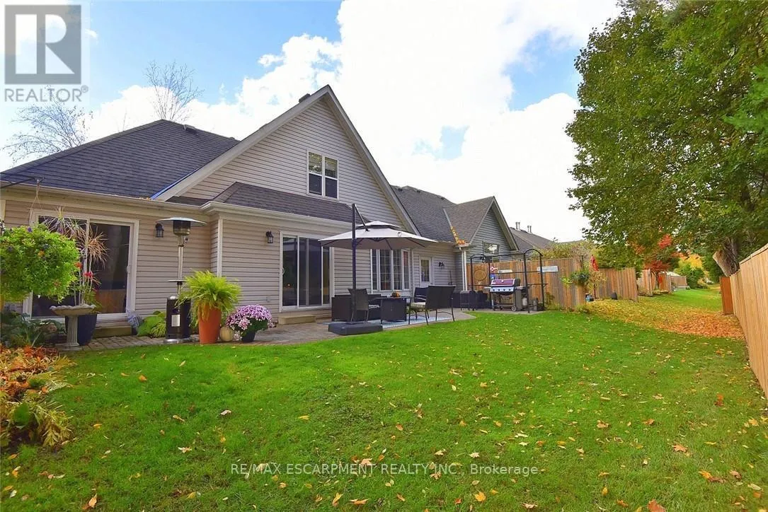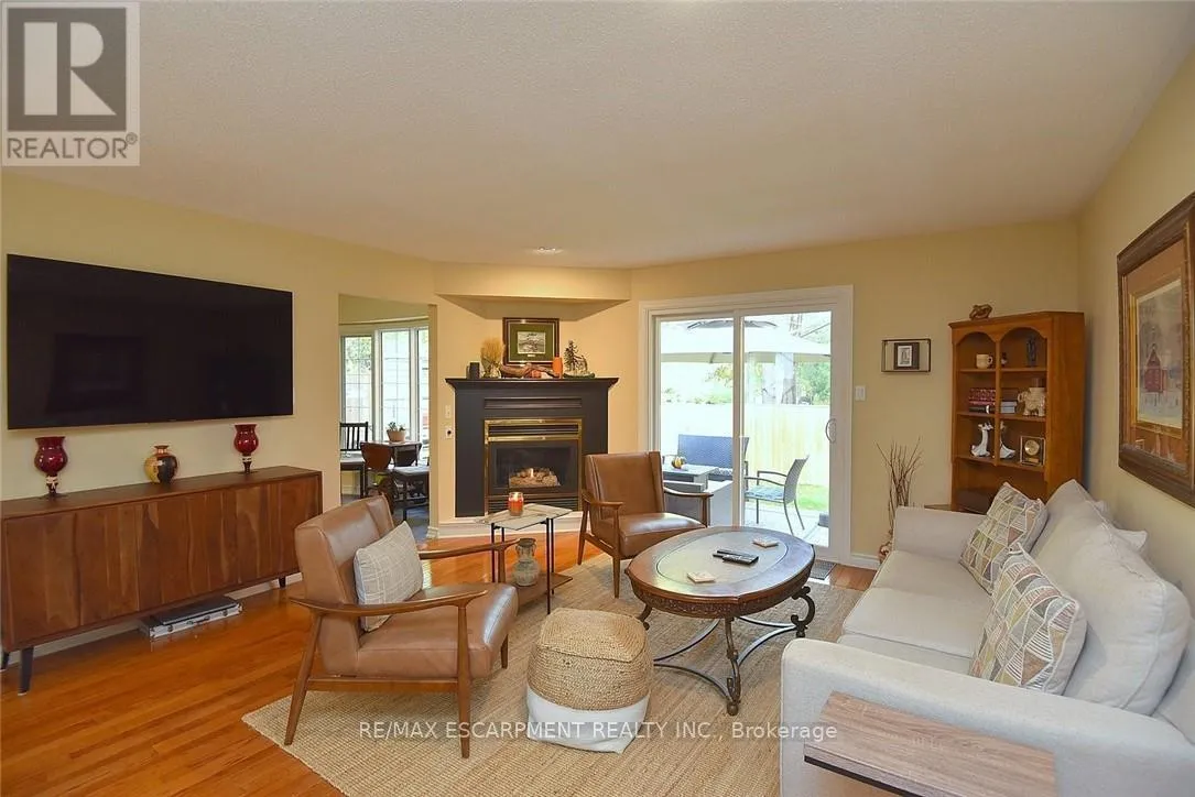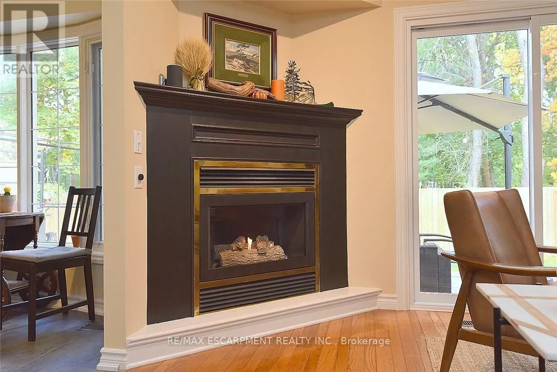 Cross Streets: Wilson Street. ** Directions: Wilson Street to Fiddlers Green. FANTASTIC END UNIT !! 2 bed 2 bath Bungaloft in an amazing complex. The bright and spacious main floor offers a Beautiful updated kitchen (2023), Large living & dining room with Gas Fire Place that overlooks a huge private backyard, a choice between a main floor bedroom or family room that has a skylight, 3 Piece bath and walk in wardrobe closet, Updated 2-piece bath and laundry area. The upper level has a large bedroom with walk in closet and a 4-piece bathroom with sky light. The lower level is unspoiled awaiting your personal touch. This community is close to shopping, restaurants, parks, and the prestigious Hamilton Golf and Country Club-this home offers the perfect blend of lifestyle and location. (id:27476)