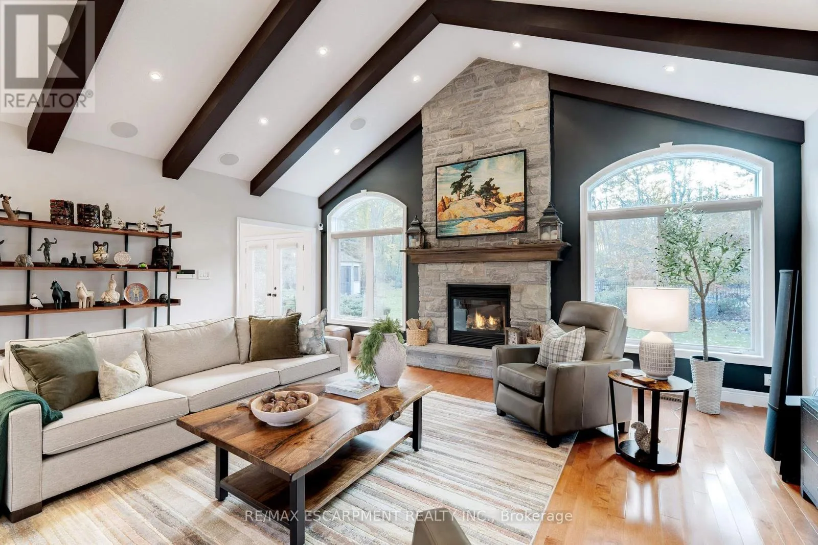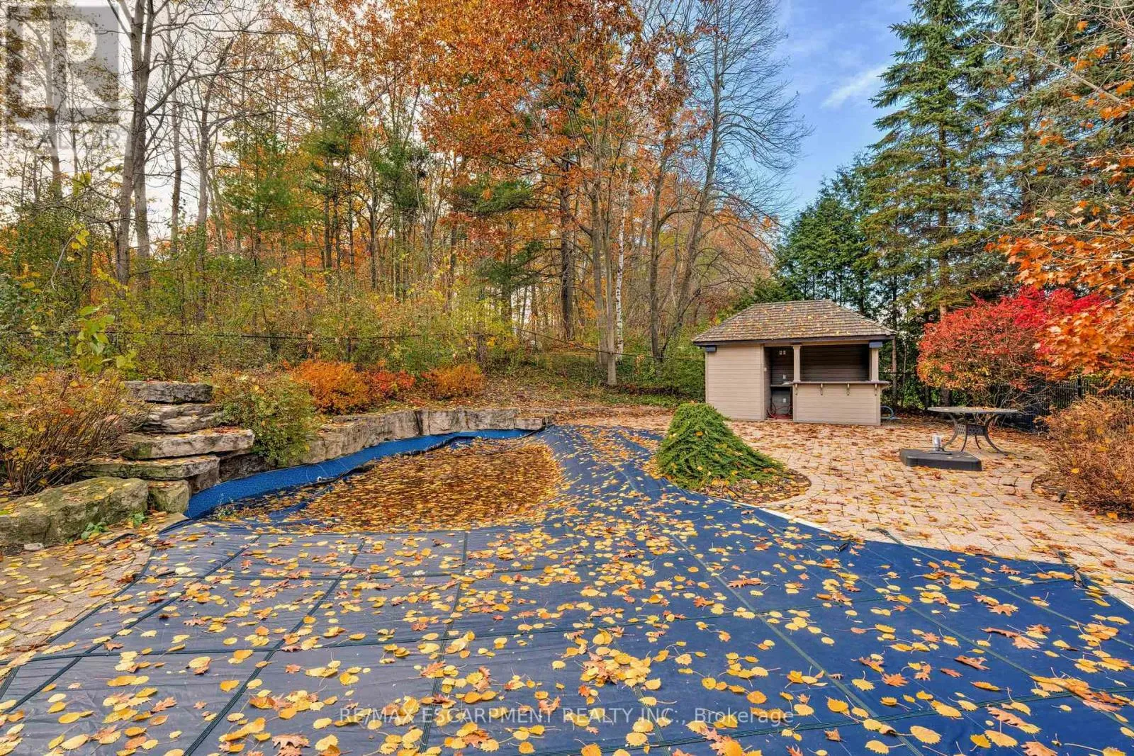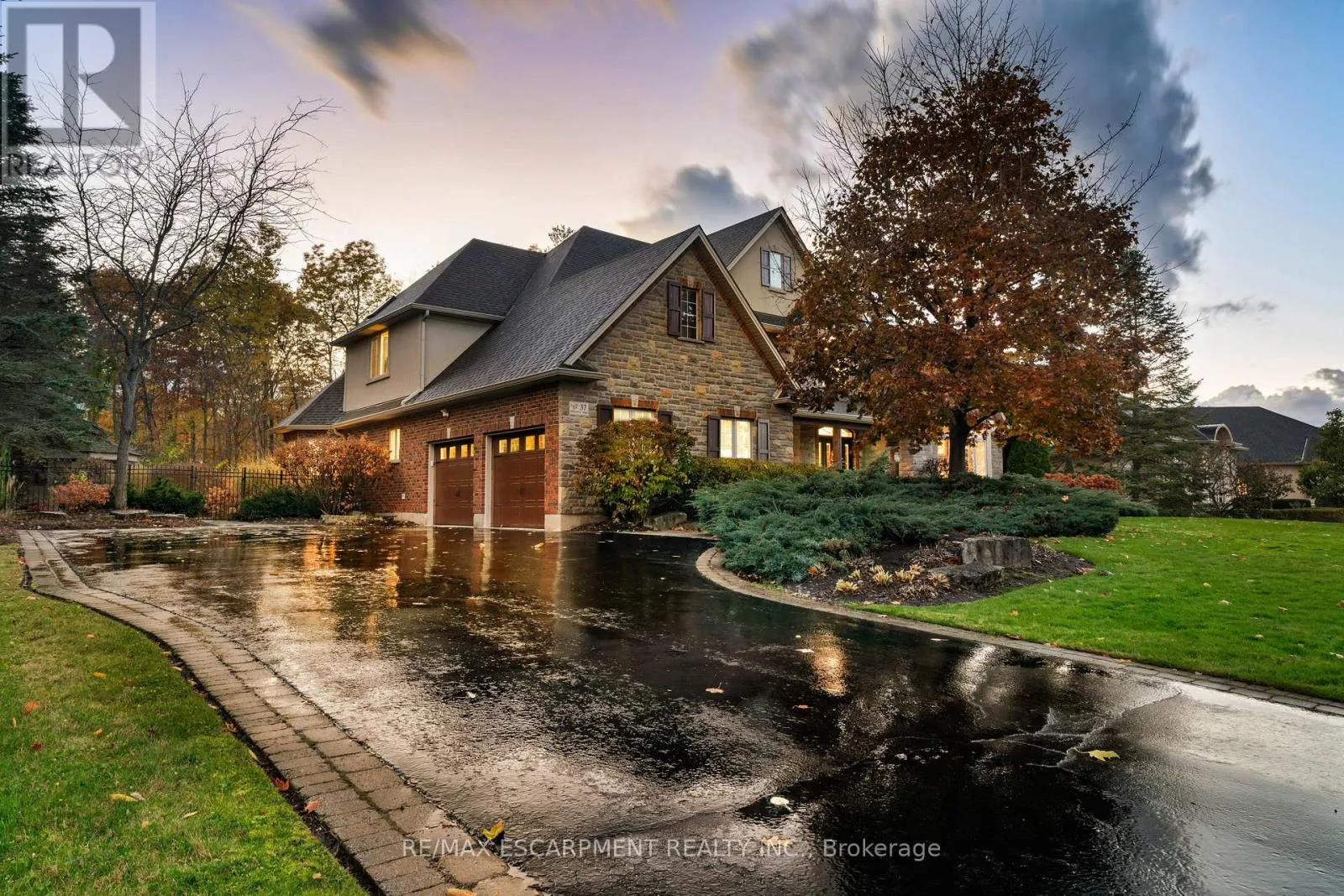 Carlisle Rd to Palomino Dr to Appaloosa Trail Welcome home! This exquisite, custom Charleston-built 1.5-storey dwelling is nestled on a private, forested half-acre-plus property, offering the perfect blend of luxury and tranquility. The main floor features a desirable primary retreat complete with a sunroom overlooking the private yard and a spa-like ensuite. Gather in the grand great room with its vaulted beamed ceiling and a magnificent 14-foot stone gas fireplace, or relax in the separate den/office, which also boasts vaulted ceilings and a fireplace. The spacious dining room seamlessly connects these living spaces, leading into the bright and spacious island-equipped kitchen. The upper level offers two bedrooms with a Jack and Jill bath in addition to another generous sized room with a full ensuite. The lower level is beautifully finished with high ceilings, a stone fireplace, a three-piece bath, and an additional bedroom. Step outside to your dream backyard oasis. This western-setting retreat features a stunning saltwater pool with a stone waterfall, a full cabana with a bar and dedicated bathroom/change room, a cozy gazebo, and ambient landscape lighting. This wonderful property is ready for your family to move in and enjoy! (id:27476)