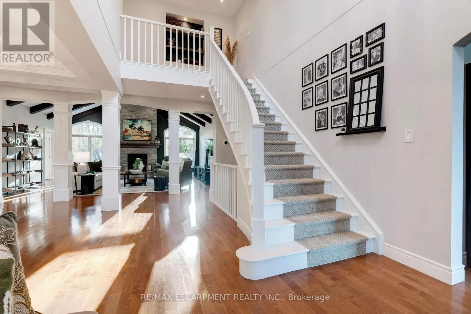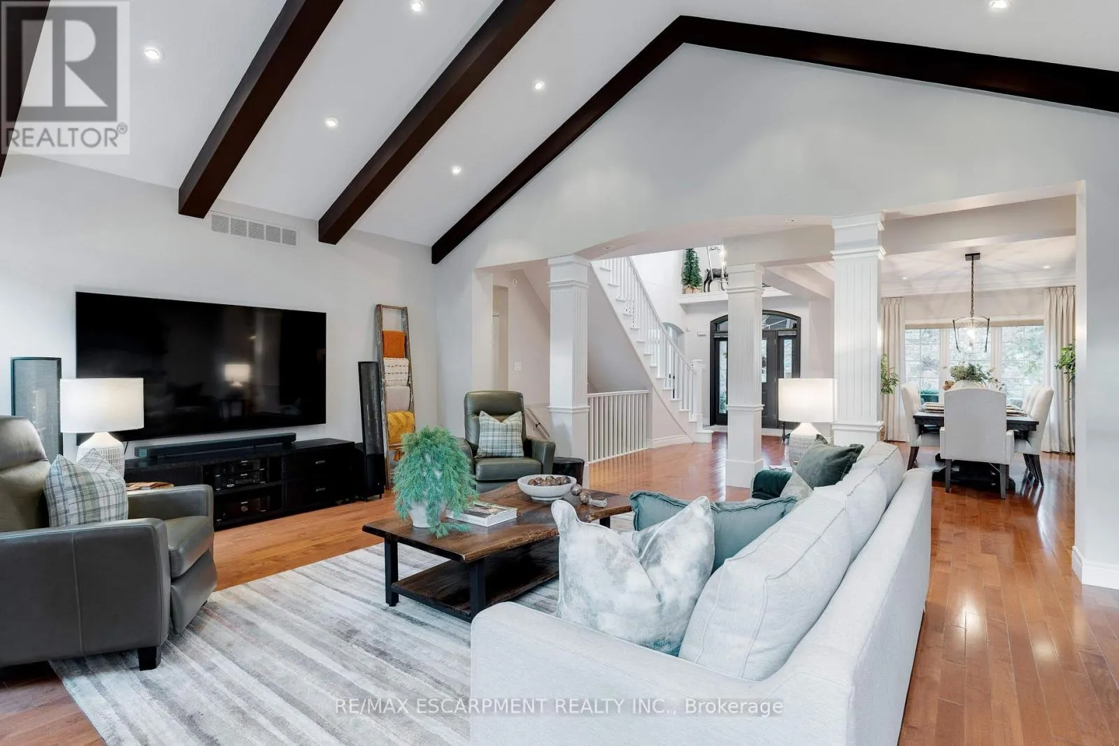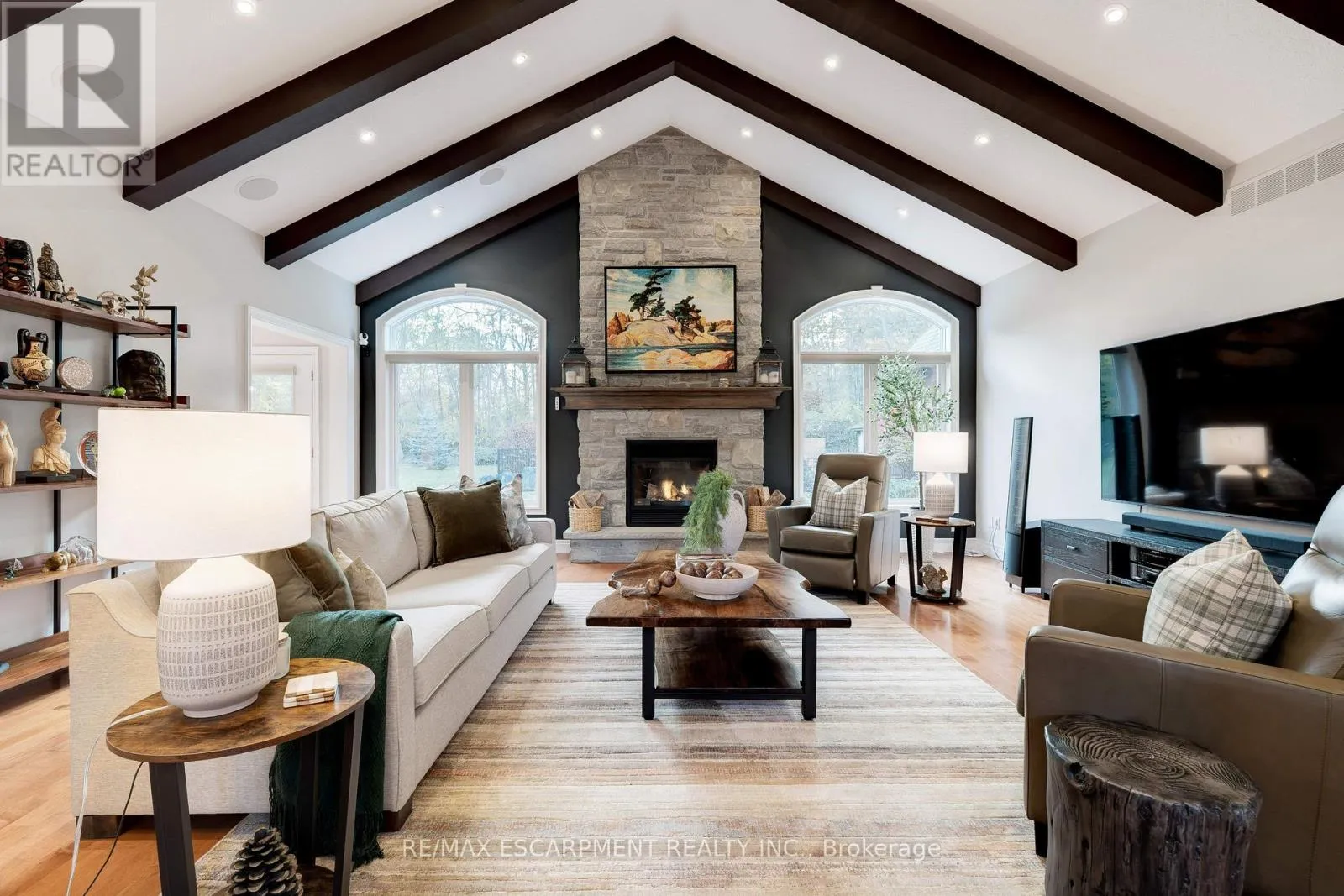 Carlisle Rd to Palomino Dr to Appaloosa Trail Welcome home! This exquisite, custom Charleston-built 1.5-storey dwelling is nestled on a private, forested half-acre-plus property, offering the perfect blend of luxury and tranquility. The main floor features a desirable primary retreat complete with a sunroom overlooking the private yard and a spa-like ensuite. Gather in the grand great room with its vaulted beamed ceiling and a magnificent 14-foot stone gas fireplace, or relax in the separate den/office, which also boasts vaulted ceilings and a fireplace. The spacious dining room seamlessly connects these living spaces, leading into the bright and spacious island-equipped kitchen. The upper level offers two bedrooms with a Jack and Jill bath in addition to another generous sized room with a full ensuite. The lower level is beautifully finished with high ceilings, a stone fireplace, a three-piece bath, and an additional bedroom. Step outside to your dream backyard oasis. This western-setting retreat features a stunning saltwater pool with a stone waterfall, a full cabana with a bar and dedicated bathroom/change room, a cozy gazebo, and ambient landscape lighting. This wonderful property is ready for your family to move in and enjoy! (id:27476)