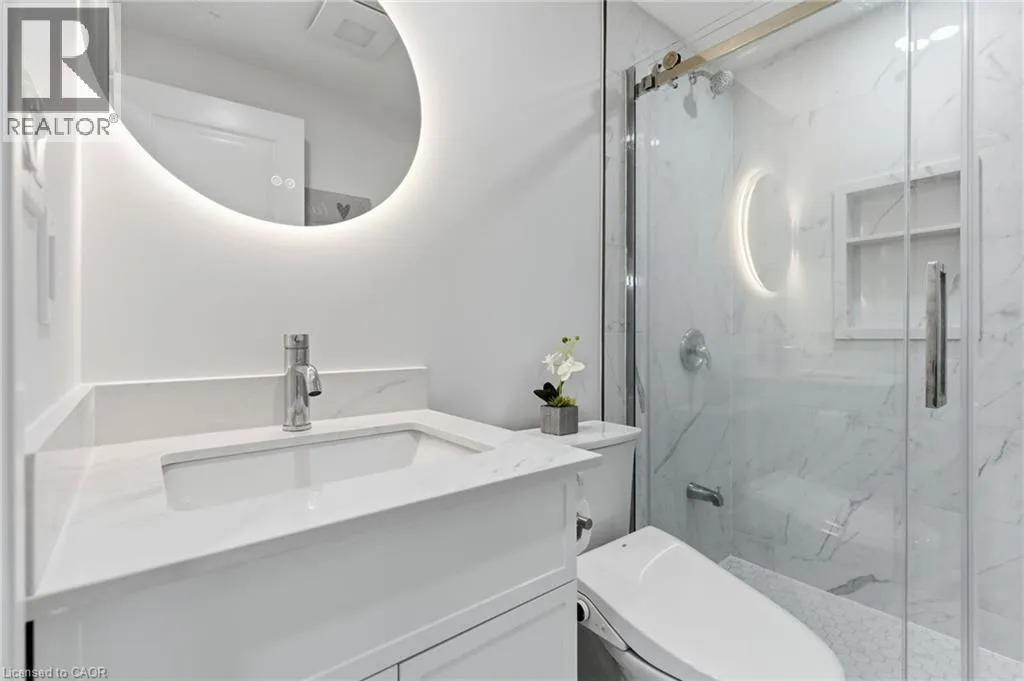 Upper James St to Regina Dr to Dicenzo Dr to Genoa Dr to Mia Dr Discover modern living in this stunning two-storey end-unit townhome, built in 2023 and loaded with upgrades. Situated on a premium 133â deep lot, this home offers exceptional space and style, starting with an open-concept main level featuring durable vinyl flooring, a beautifully upgraded kitchen with quartz countertops, island, stainless steel appliances and a sleek backsplash. Elegant hardwood stairs lead to the upper level, where you'll find three spacious bedrooms, including a luxurious primary suite complete with an upgraded ensuite, featuring a freestanding tub and glass shower. The fully finished basement extends your living space with a bright rec room, a versatile fourth bedroom or office and a full three-piece bathroom. Ideally located with shopping, restaurants, parks, schools, public transit and highway access all just steps away, this home combines comfort, style and convenienceâperfect for families and professionals alike. Donât be TOO LATE*! *REG TM. RSA. (id:27476)