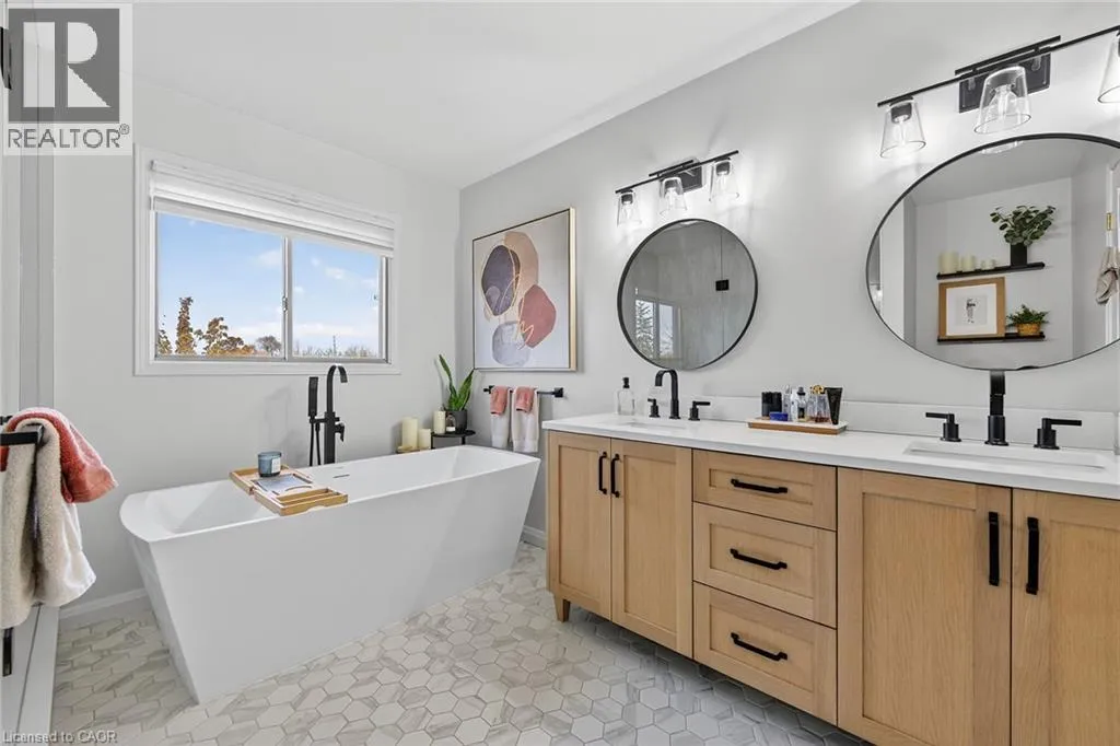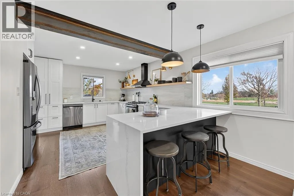 South of Rymal Road on Upper Wellington, turn right on Jacqueline Blvd Welcome to 3 Jacqueline with high end finishes throughout. Open concept kitchen, dining area with exposed beam and gorgeous waterfall quartz countertop.This 4 + 1 bedroom home has everything going for it! No detail has been spared for family living and relaxation inside or out. Cosy up in front of the fireplace in the winter and enjoy the above ground pool in the summer. Convenient to schools, shopping, skate park, recreation centre, library and transit. Full one bedroom In law suite in basement, no separate entrance. Invite a family or friend to stay short or long term! Heated 2 car garage is great for a gym or use for a workshop. Book it now & see for yourself! (id:27476)