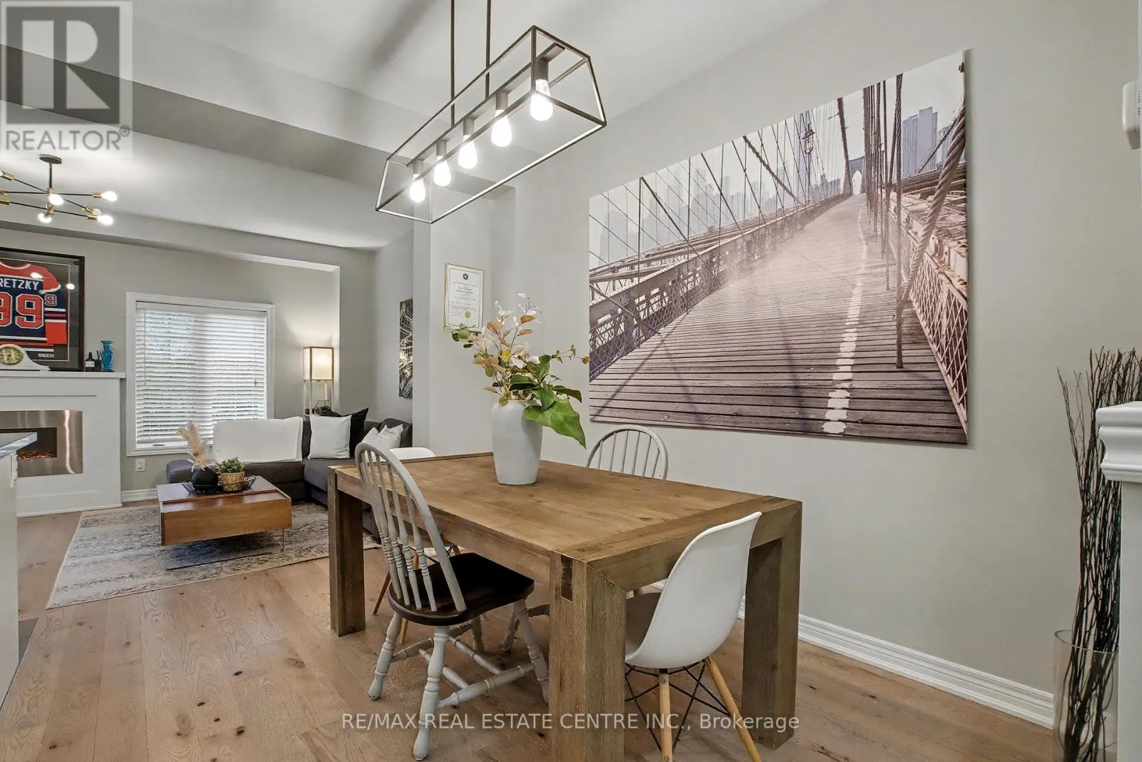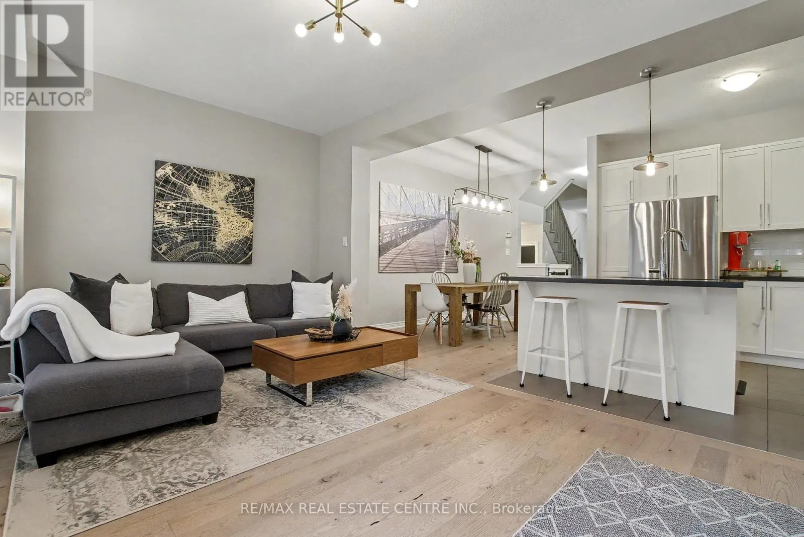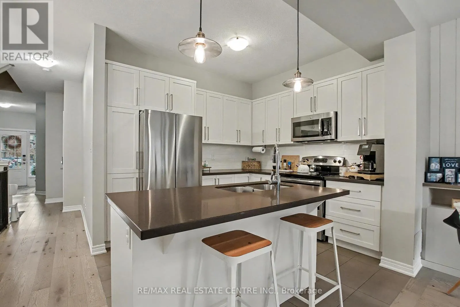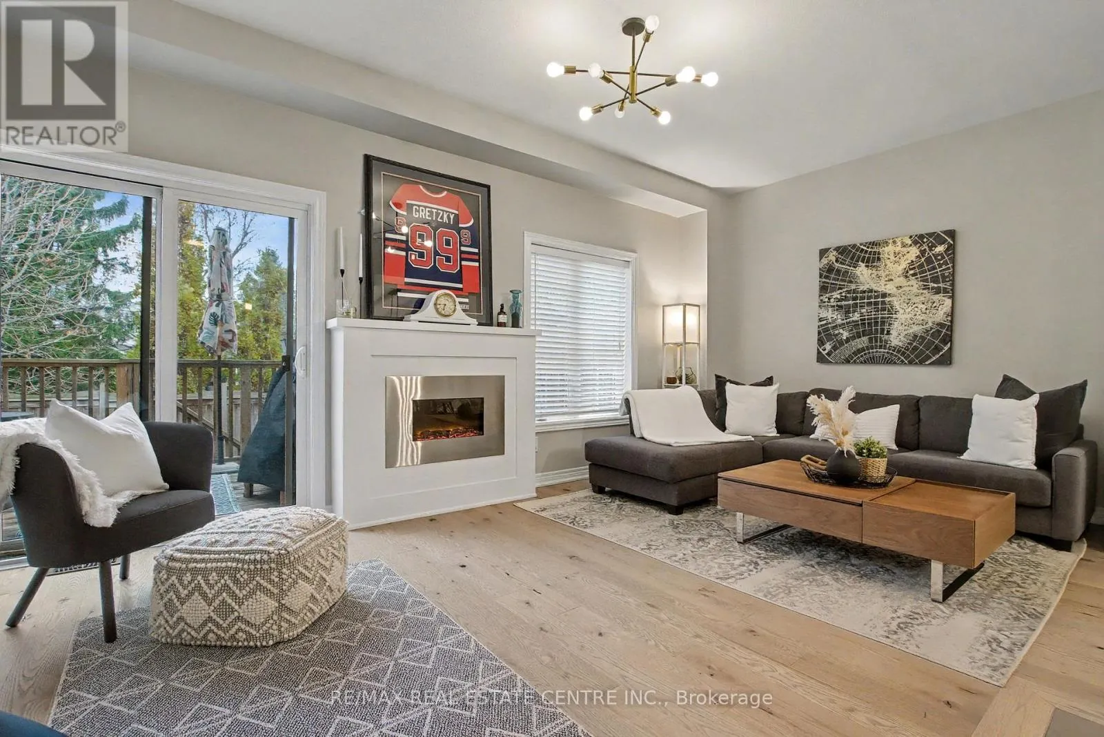 Dundas St E/ Hamilton St S Welcome to this beautifully maintained condo townhouse offering style, comfort, and convenience in every detail. The main level features an inviting open-concept layout with hardwood flooring and neutral paint tones that create a warm, modern feel. The gourmet kitchen boasts stainless steel appliances, a functional island, and plenty of counter space-perfect for cooking and entertaining. A custom built-in wall unit with charming shiplap & electric fireplace adds character and a cozy focal point to the living area. Upstairs, you'll find three generous-sized bedrooms, including a spacious primary suite complete with built-ins in the walk-in closet and its own 4-piece ensuite bathroom. An additional 4-piece bathroom serves guests or family. The second-floor laundry room has been tastefully updated, offering added convenience and style. The finished basement expands your living space with a versatile recreation room and ample storage options. A single-car garage provides secure parking and additional room for belongings. Move-in ready and thoughtfully updated, this home blends updated finishes with practical living spaces-perfect for families, professionals, or anyone seeking a low-maintenance lifestyle. (id:27476)