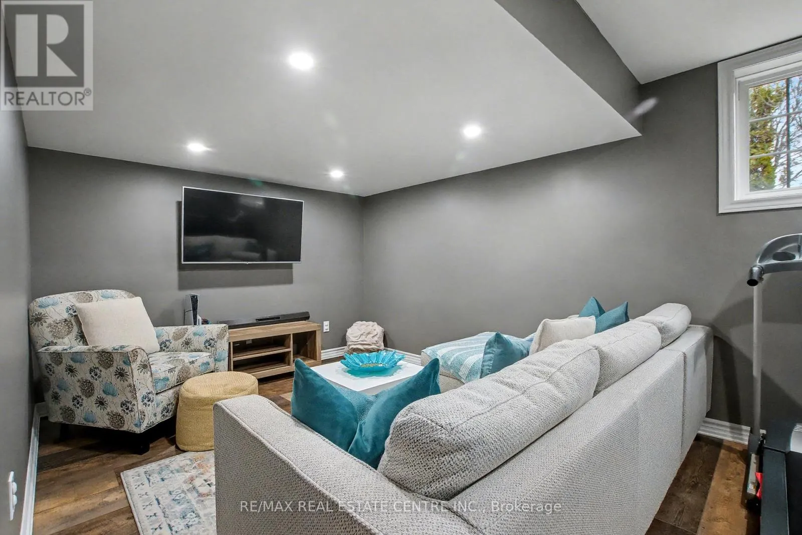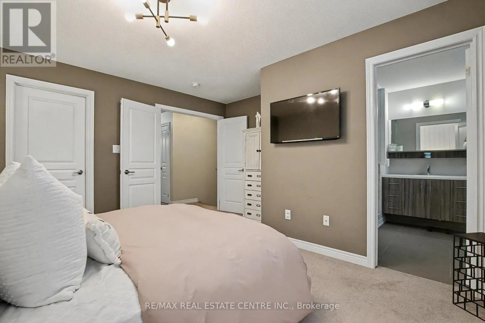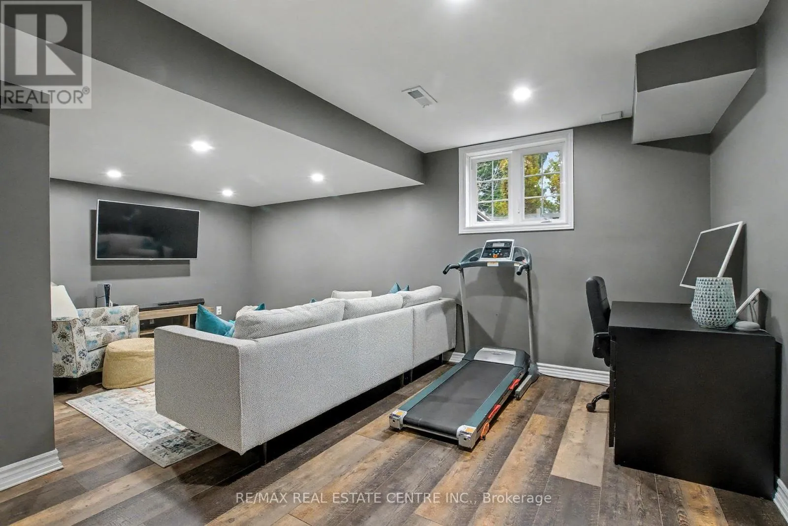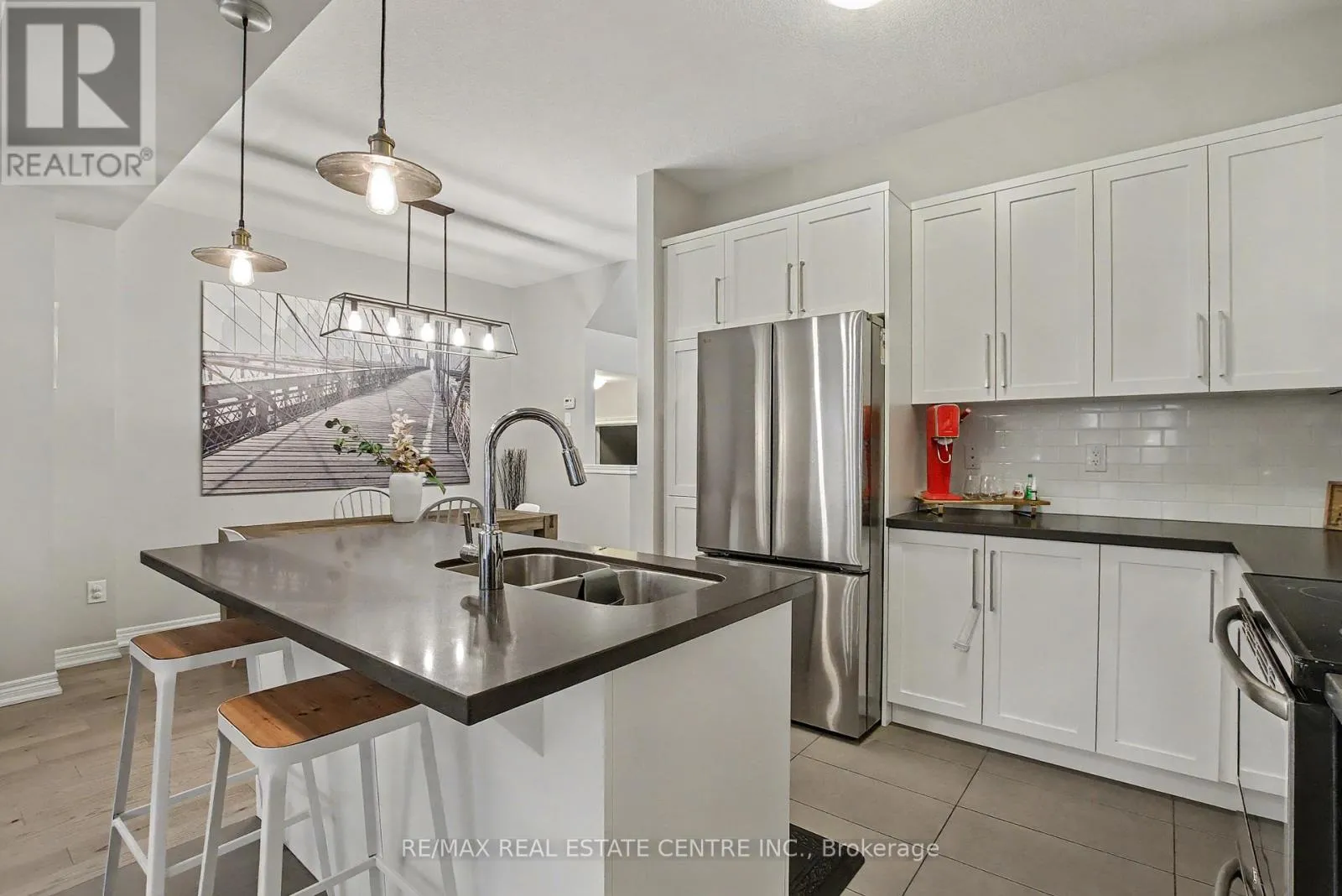 Dundas St E/ Hamilton St S Welcome to this beautifully maintained condo townhouse offering style, comfort, and convenience in every detail. The main level features an inviting open-concept layout with hardwood flooring and neutral paint tones that create a warm, modern feel. The gourmet kitchen boasts stainless steel appliances, a functional island, and plenty of counter space-perfect for cooking and entertaining. A custom built-in wall unit with charming shiplap & electric fireplace adds character and a cozy focal point to the living area. Upstairs, you'll find three generous-sized bedrooms, including a spacious primary suite complete with built-ins in the walk-in closet and its own 4-piece ensuite bathroom. An additional 4-piece bathroom serves guests or family. The second-floor laundry room has been tastefully updated, offering added convenience and style. The finished basement expands your living space with a versatile recreation room and ample storage options. A single-car garage provides secure parking and additional room for belongings. Move-in ready and thoughtfully updated, this home blends updated finishes with practical living spaces-perfect for families, professionals, or anyone seeking a low-maintenance lifestyle. (id:27476)