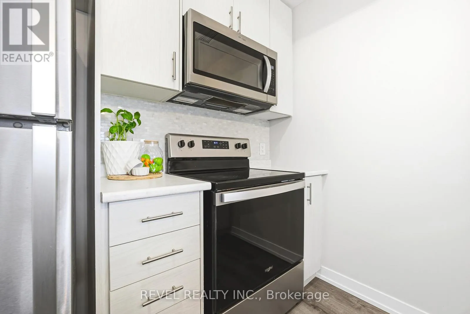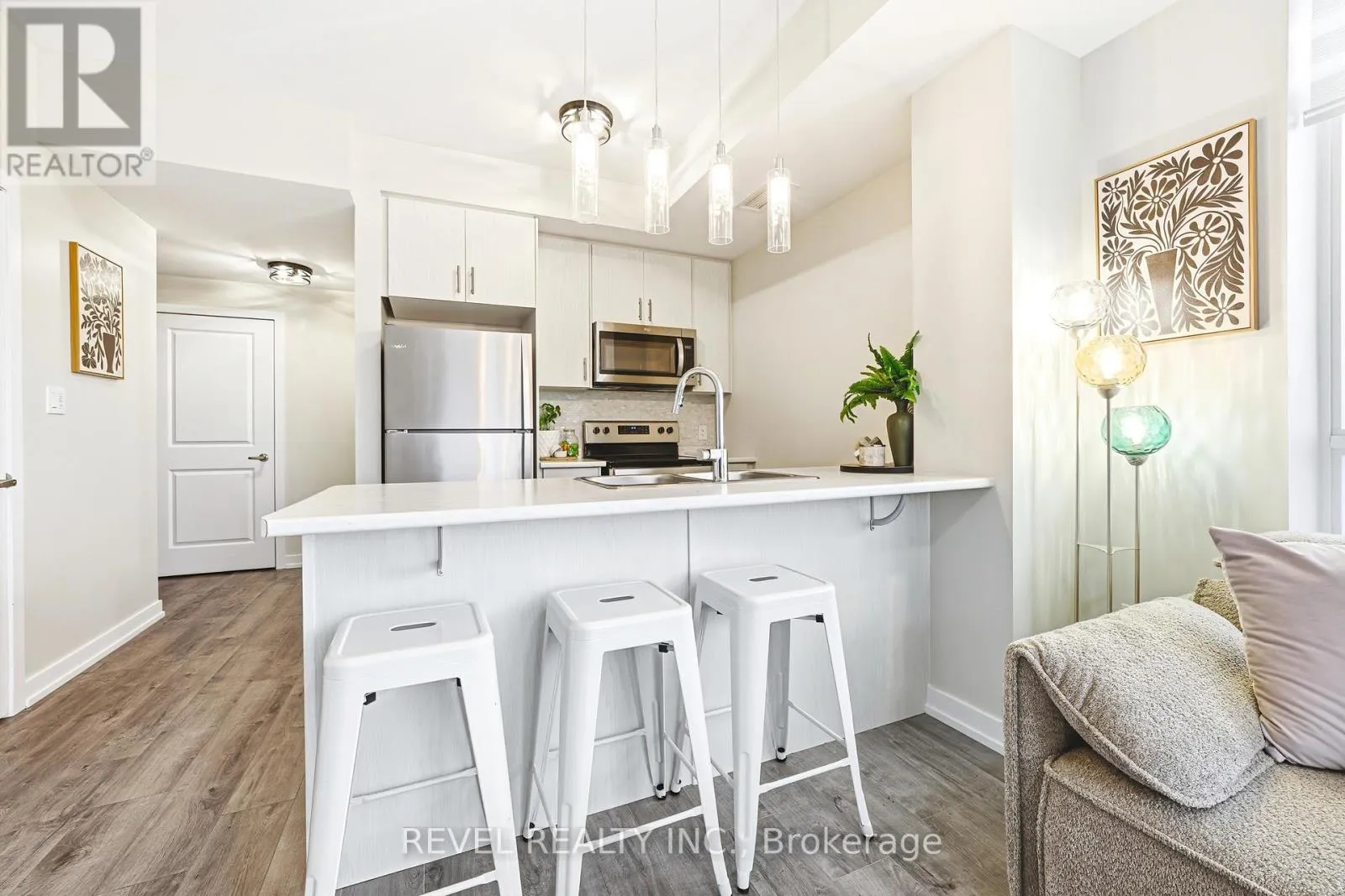 Cross Streets: Dundas Street East and Mallard. ** Directions: Dundas Street East and MallardDundas Street East and Mallard. Stunning 2-bedroom, 1-bath end-unit condo in the sought-after Trend community of Waterdown. This bright, modern suite features 9 ft ceilings, floor-to-ceiling windows, stylish laminate flooring, and large-format tile in the bath, entry, and laundry areas. Freshly painted with updated lighting throughout. Enjoy energy-efficient geothermal heating and cooling, low-maintenance fees, full-size stainless steel appliances, and corner units that offer exceptional privacy with fewer neighbouring units. Includes one underground parking space and a same-floor locker. Building amenities include a gym, party room, rooftop BBQ terrace, and bike storage. A perfect blend of style, comfort, and convenience. (id:27476)