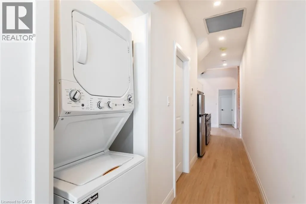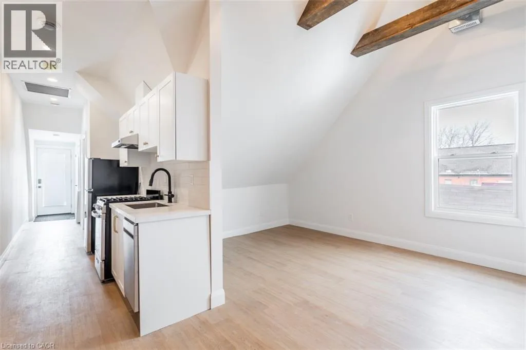 Cannon St E to Catharine St N, Left on Catharine St N - building is on the right hand side. Quiet and Clean top level unit in Beasley Neighbourhood. This 1 bedroom 1 bathroom unit has wonderful exposed brick in the living room area and bedroom. Soaring ceilings and plenty of light in both the living room and bedroom. Plenty of space to grow your herbs and plants! Well sized galley kitchen with plenty of storage, stainless steel appliances including a dishwasher and gas range! The bathroom is modern and updated with well sized shower, and this unit has in suite laundry. Enjoy your own private entrance and no neighbours above you. Sitting on the transit line in both directions, this unit is less than 10 minutes to Mcmaster University, less than 10 minutes walk to Hamilton General and 5 minute walk to the trendy shops and restaurants on James St N. Enjoy Coffee at one of the many beautiful cafes, explore amazing clothing stores and shops! Walk a little bit further and you can shop for your groceries at Nations grocery store or the Hamilton Farmers Market. Beautifully maintained building, no outdoor winter or summer maintenance required by tenant. Gas included in the lease. Water and Hydro Separately metered. Available Starting January 15th! A Perfect place to start 2026! (id:27476)