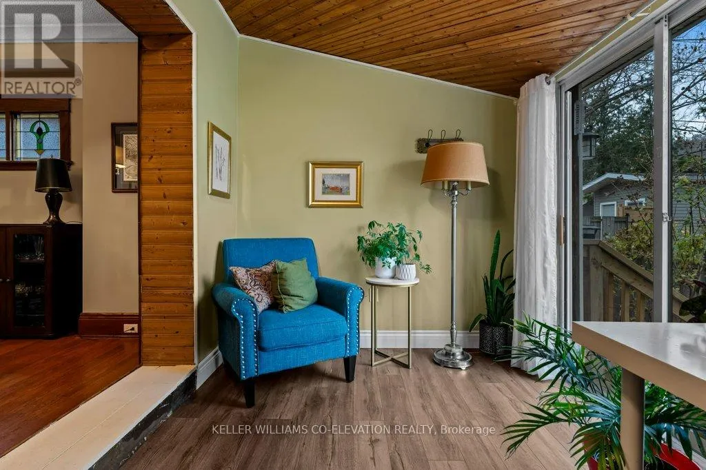 Cross Streets: Lawrence. ** Directions: South off of King, in between King & Lawrence. Nestled on a beautiful, tree-lined street, this home offers the perfect blend of original charm and modern updates. Ideally located providing exceptional convenience in a quiet, established neighbourhood. This solid 1.5-storey home features three generously sized bedrooms, a finished lower level, and a warm, inviting layout. The living room showcases refinished original hardwood floors. A bright office/den addition at the rear of the home offers a comfortable workspace or family room, opening directly onto the newly installed patio and a peaceful backyard.The home has undergone extensive improvements to ensure comfort and peace of mind for years to come. Recent upgrades include new beige siding, upgraded electrical, new lighting throughout the main and second floors, a renovated kitchen and bathroom. The property also features a new furnace and air conditioner, refinished hardwood floors and staircase, and improved basement functionality. Outside, the gated driveway, chain-link fencing, and new 8' x 10' Suncast shed provides added convenience. With a welcoming front porch, a functional rear addition, and thoughtful upgrades throughout, this home delivers exceptional comfort, character, and efficiency. Truly move-in ready with all the major updates complete, it offers an ideal opportunity to settle into one of Hamilton's well-established, family-friendly neighbourhoods. (id:27476)
