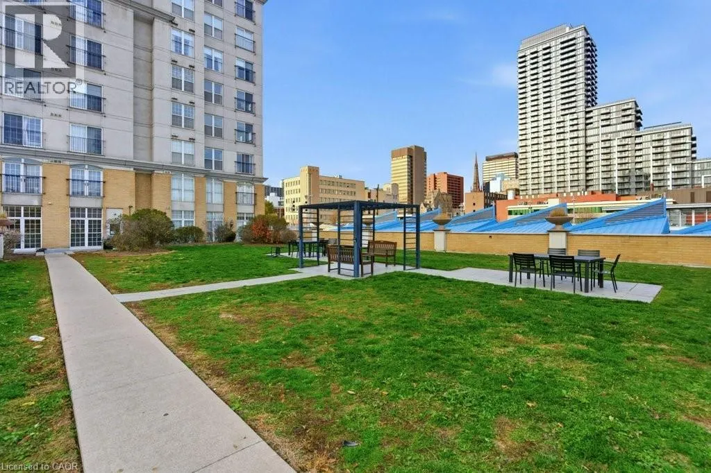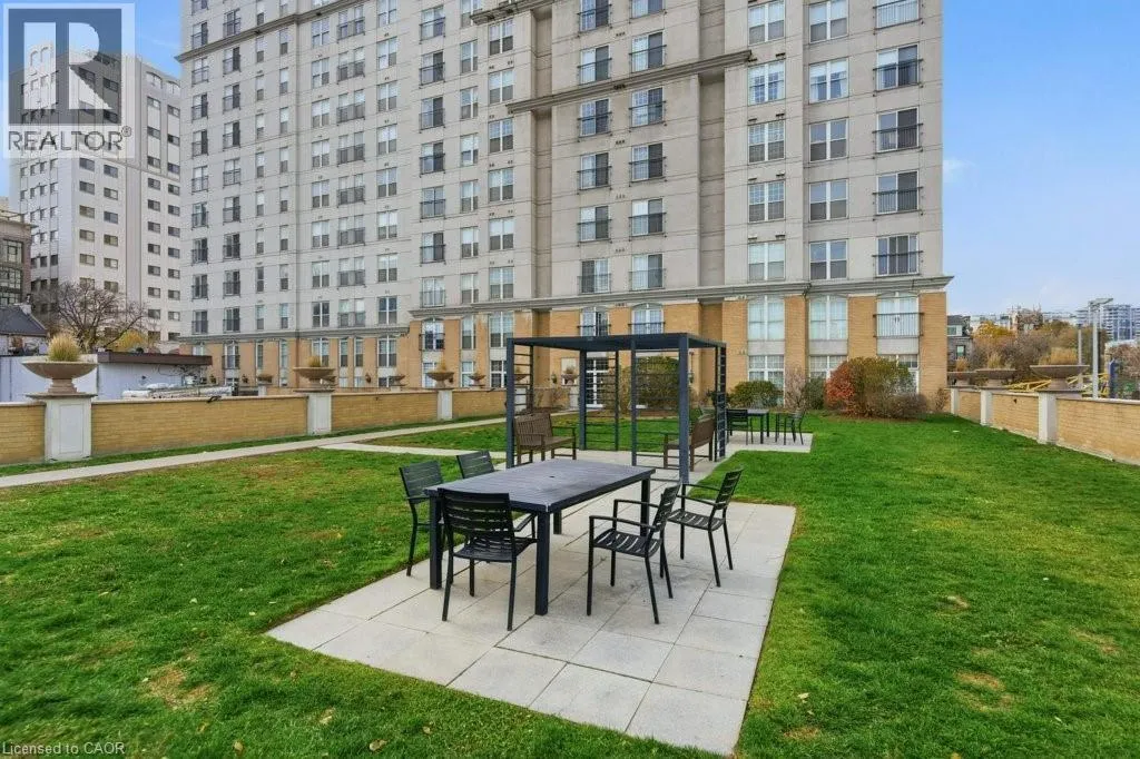 James St S/Hunter St W Heat, water, parking and a storage locker all included in the lease price! Welcome to unit 209 in the Chateau Royale at 135 James St S. Offering over 800 square feet of living space, this one bedroom unit features high ceilings and large windows throughout. The living space is the star of the show with gorgeous floor-to-ceiling doors to a Juliette balcony overlooking a private courtyard. There's plenty of room for your living room furniture, as well as a proper dining table (or desk if you work from home). The kitchen is at the back of the dining room allowing a bit of privacy, while still retaining an open concept feel. The large bedroom features a double mirrored closet, as well as convenient in-suite laundry. The 4-pc bathroom with wide vanity, great for storage, completes the unit. Worried about storage for seasonal items? No need - one storage locker is included! One underground parking space is also included - something not every unit here can offer. The building itself offers great amenities to it's occupants including a 24 hour concierge, a fully equipped gym with yoga studio and sauna, 20,000 square feet of landscaped gardens including a huge outdoor terrace with community bbqs and designated pet relief area, a 14th floor rooftop patio, and direct access to the GO station behind the building. Steps from great restaurants and nightlife on Augusta and James St S, and moments from St. Joe's Hospital. Tenant just pays hydro and cable/internet! There's so much this unit has to offer! (id:27476)