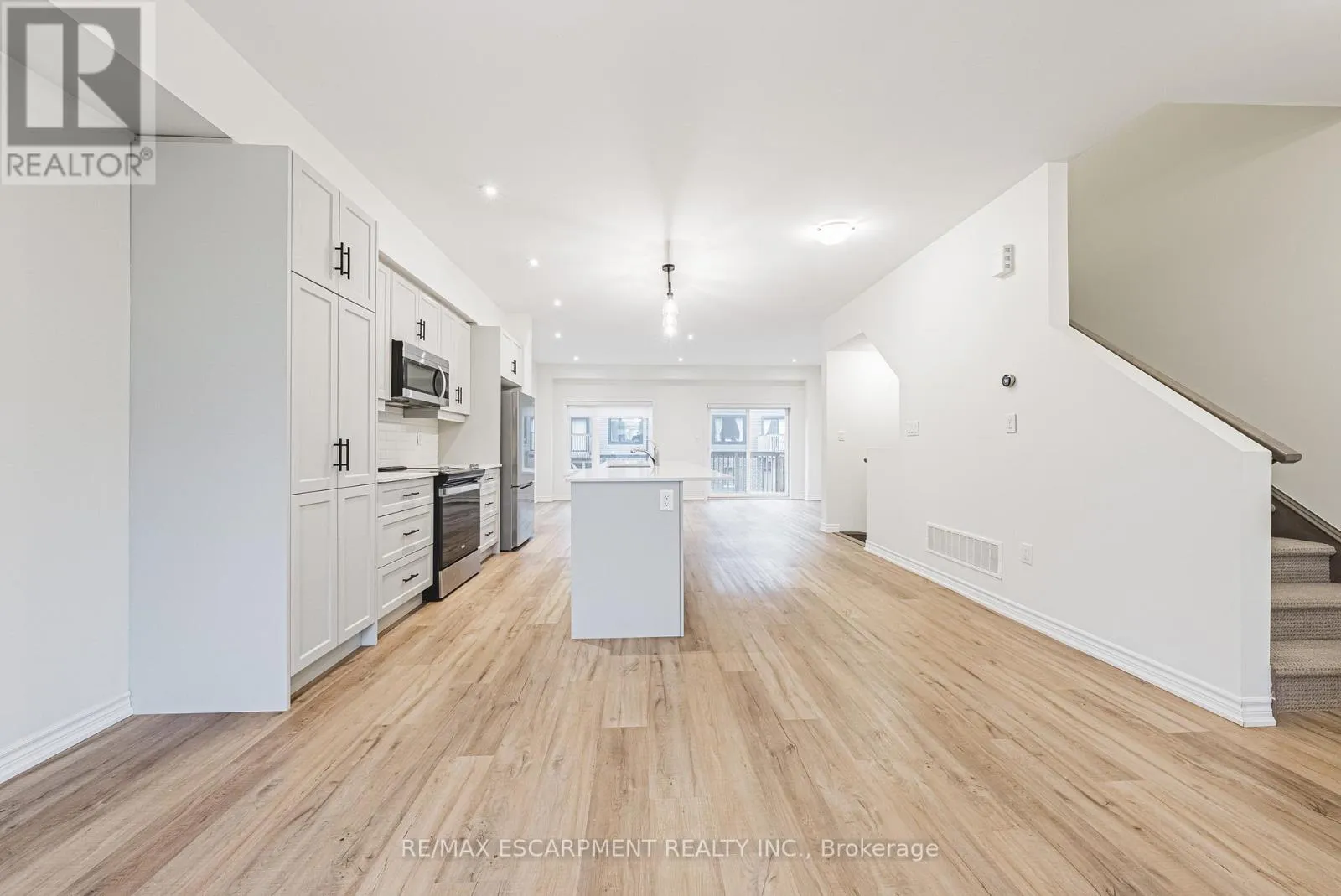 Cross Streets: Chedmac & Sanatorium. ** Directions: Sanatorium Rd to Southam Ln to Cadwell Ln. Welcome to this beautifully upgraded 3-storey freehold townhome in the heart of Hamilton Mountain's Mountview neighbourhood. Offering 1,930 sq. ft. of finished living space, this modern residence features an open-concept second level with a bright living/dining area and an upgraded kitchen complete with quartz countertops, an extended pantry, stylish backsplash, and a large island with breakfast bar-perfect for everyday living and entertaining. Luxury vinyl flooring flows throughout the main spaces, complemented by upgraded pot lights and contemporary hardware. A newly upgraded sliding door leads from the living room to a private deck, creating seamless indoor-outdoor living. Upstairs, the primary suite impresses with a glass-enclosed upgraded shower and quartz counters, with two additional bedrooms and a full bath completing the level. The home also features Berber carpeting in the bedrooms, inside-entry garage, second-level 2-piece bath, and main-floor family room. Located close to parks, trails, schools, shopping, transit, and highway access, this nearly new home features convenience, style, and exceptional value. (id:27476)
