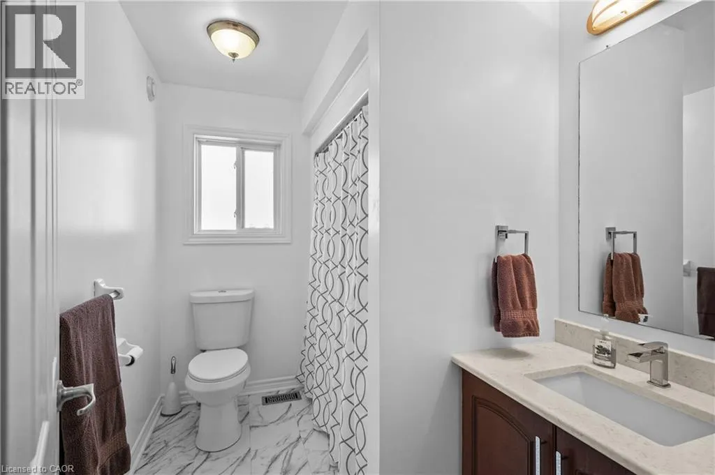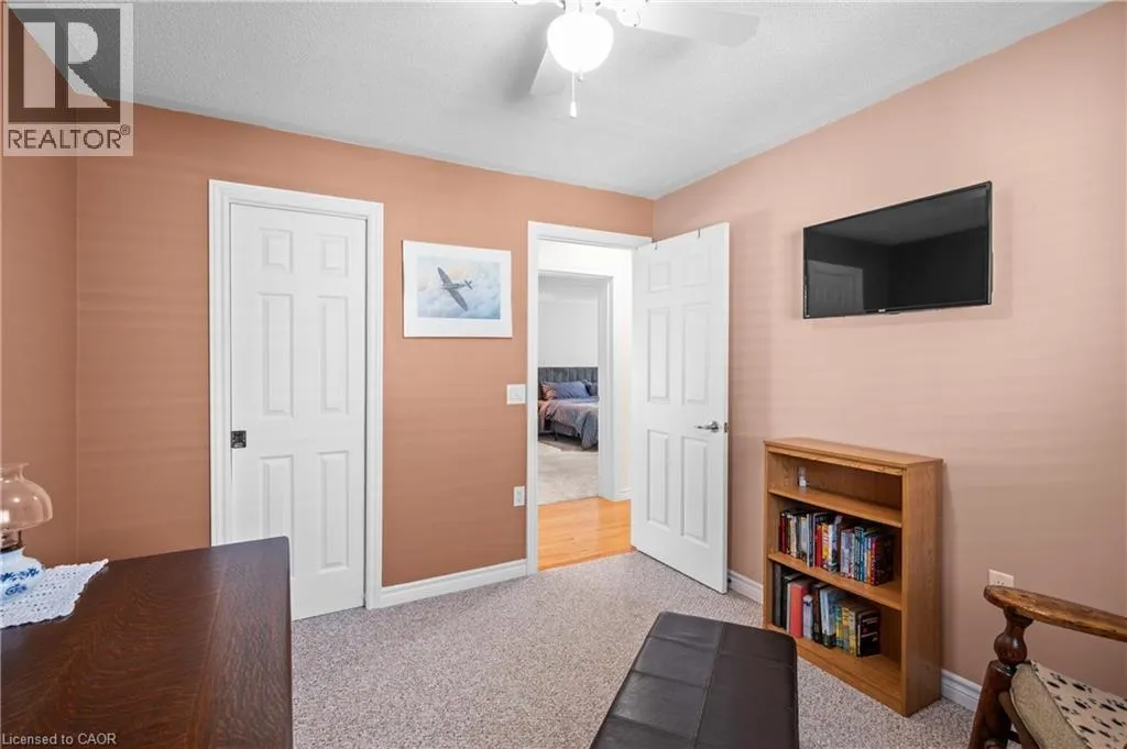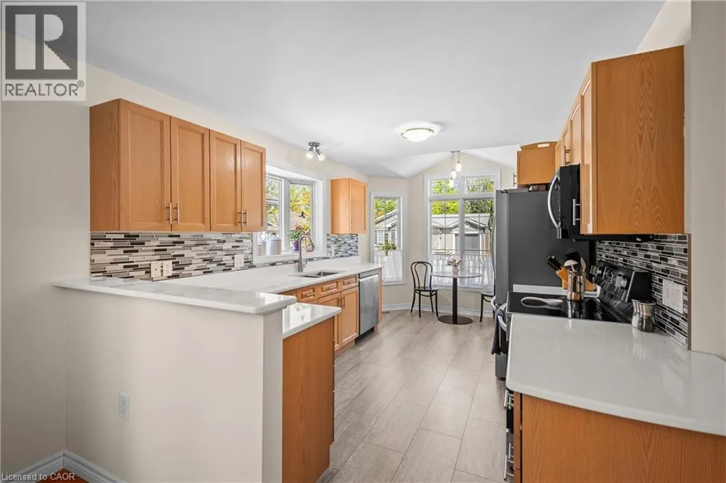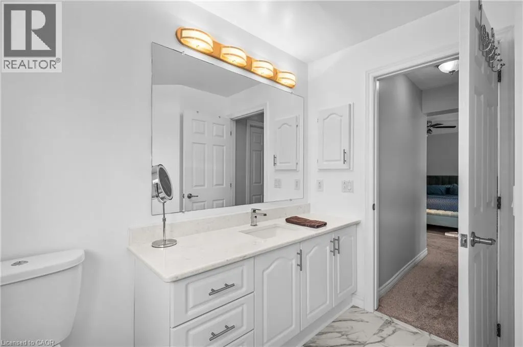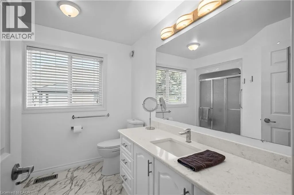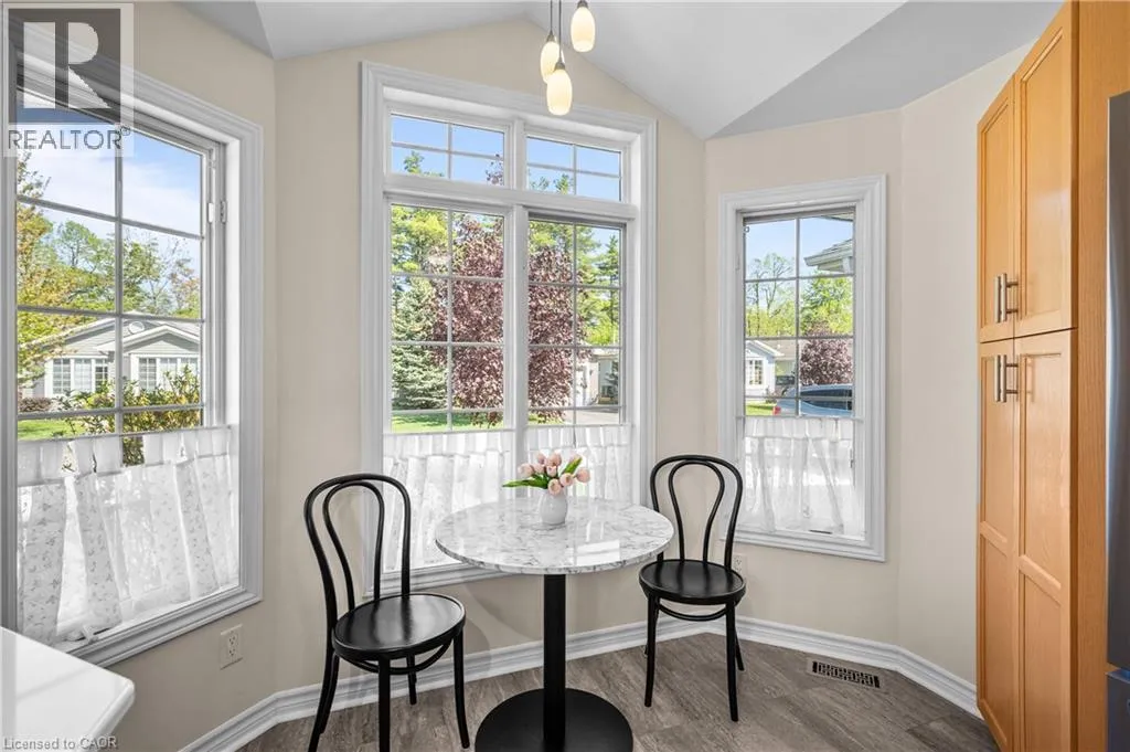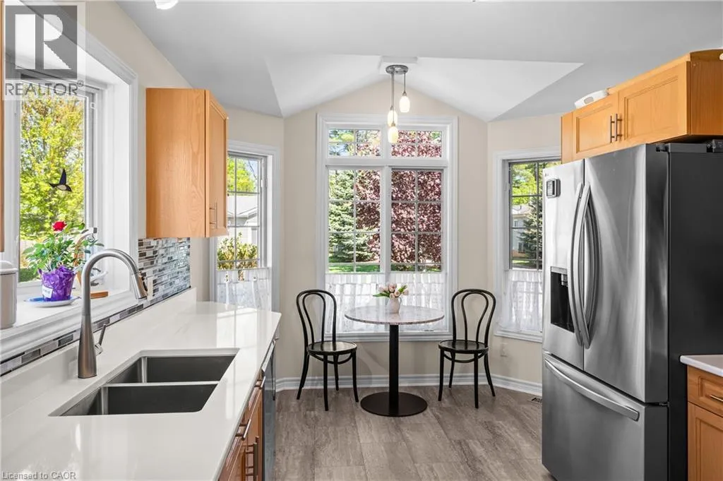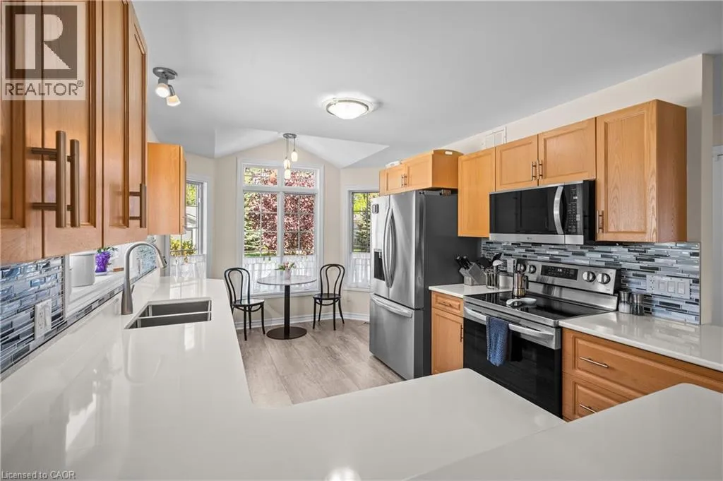 Hwy 6 N west on 8th Conc Rd W turn left in Antrim Glen Welcome to this beautifully maintained 2 bed, 2.5 bath detached bungalow in a quiet rural 55+ community. Featuring brand new quartz countertops in the kitchen and upstairs bathrooms, new flooring in the kitchen and baths, new faucets, and newer appliances, hardwood flooring, this home is move-in ready. The functional layout includes a spacious living area, eat-in kitchen with plenty of cabinets, dining room, large primary bedroom with walk-in closet & 4pc ensuite and a fully finished basement with a large rec room, a den perfect for a workshop or hobby space, and ample storage. Recent upgrades include a newer furnace and a roof approx. 2 years old. The double car garage adds convenience and extra space. Enjoy a vibrant lifestyle with access to a community centre offering an in-ground pool, shuffleboard, billiards, craft room, library, and a full kitchen for events and gatherings. A perfect blend of comfort, updates, and community living awaits! (id:27476)
