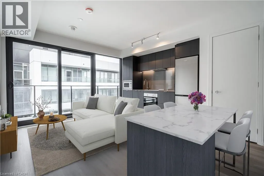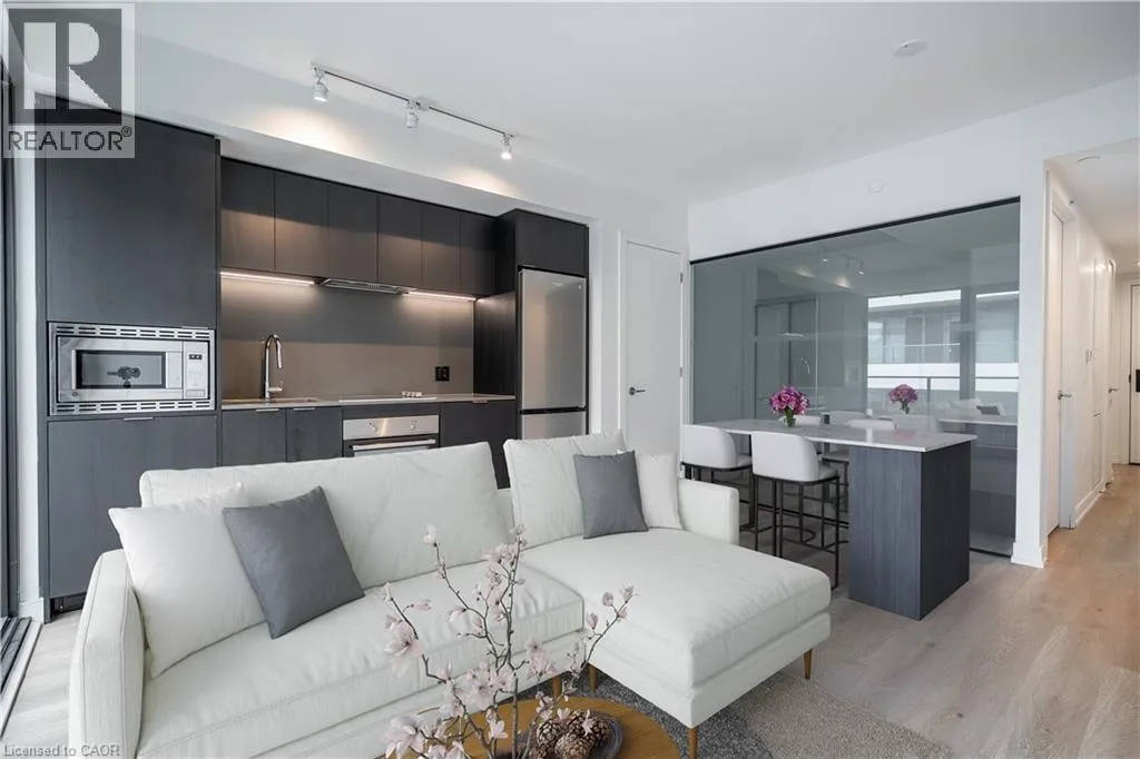 King St W to Jarvis St A great opportunity to acquire a turn-key condo with offers anytime! Rent-to-own option is also available! This bright and modern 1-bedroom, 1-bathroom condo in lower Hamilton features a walkout balcony and is move-in ready. Located in a building that's only 2 years old, enjoy low condo fees and hassle-free living- perfect as an investment property or your new home close to all amenities. Inside, you'll find stainless steel appliances including a fridge, stovetop, oven, built- in dishwasher, and microwave, plus convenient in-suite laundry. The building offers fantastic amenities like a fully equipped gym, resident lounge, 24-hour concierge and security, elevators, and internet included in the condo fees. Don't miss your chance on this great property! (id:27476)