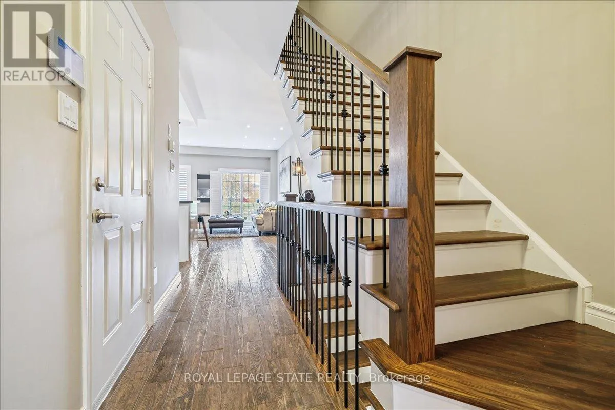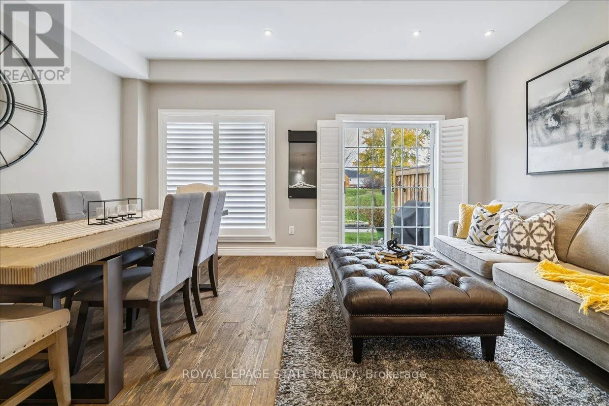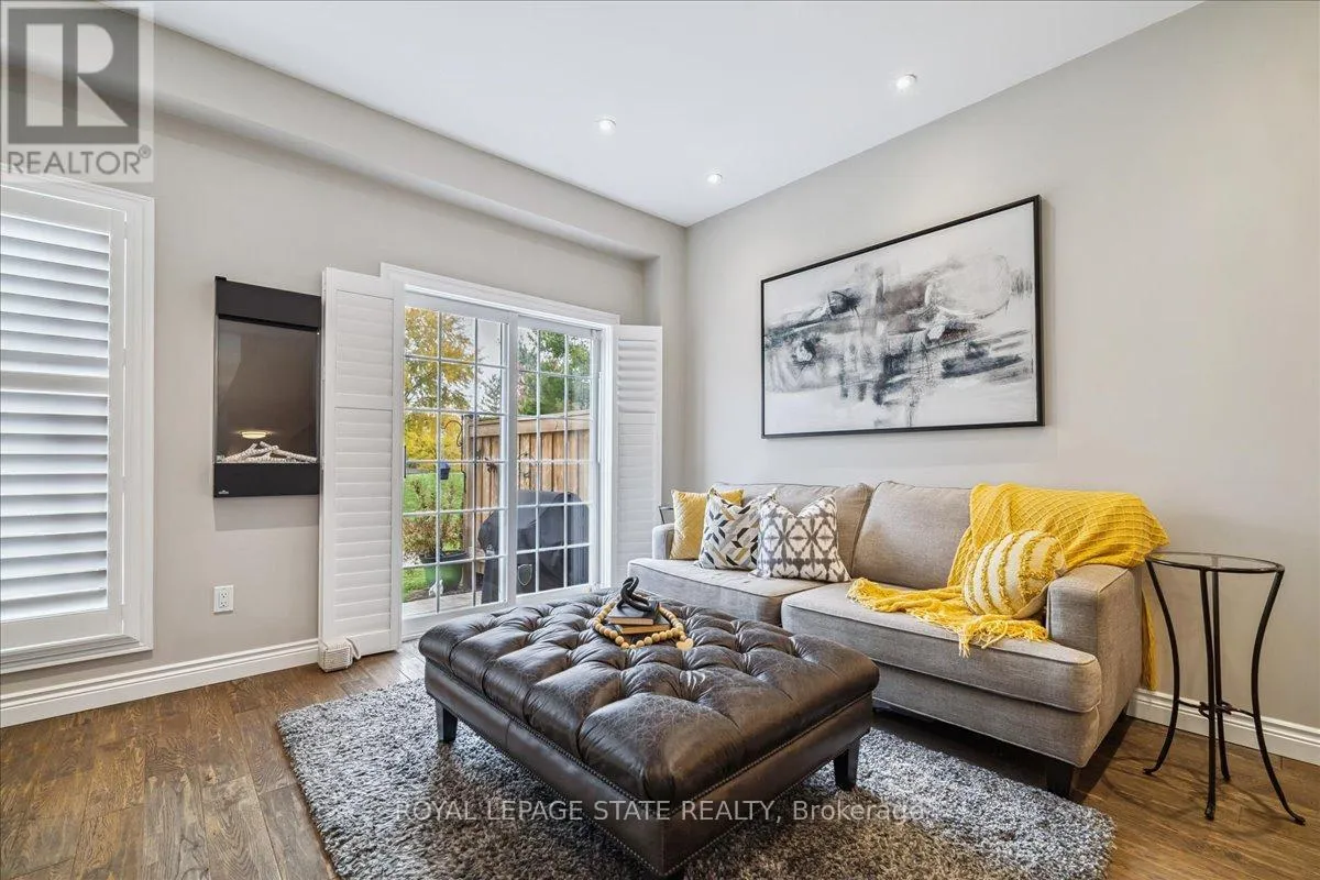 Cross Streets: Aberdeen Ave. ** Directions: QEW - to 403 W - exit on Aberdeen Ave - continue on Aberdeen Ave to Beddoe Dr. Stunning upgrades, elegant design & prime location! This beautifully updated townhome, just off HWY 403 & the Linc, blends modern style, comfort & everyday convenience. Enjoy rich 5" oak hardwood floors, upgraded lighting & LED pot lights throughout. The bright kitchen features Caesarstone counters, soft-close cabinets, stainless steel appliances, undermount sink & sleek subway tile backsplash. The open living/dining area offers great natural light & walkout to a private courtyard overlooking a landscaped parkette - a peaceful spot for morning coffee or evening relaxation. Interior garage access & stylish powder room complete the main level. Upstairs, the spacious primary suite offers 2 closets & a stunning 5-pc ensuite with soaker tub, stone accents, glass shower, frosted barn door & double vanity. The second bedroom also features a 4-pc ensuite & generous closets. The finished lower level includes a laundry room with cabinetry, sink & backsplash, plus a large rec room with media wall, stone fireplace & custom built-ins, along with an upgraded 3-pc bath. Located in a walkable, highly sought-after neighbourhood near scenic trails, the Bruce Trail, Chedoke Golf Course, Locke St., Westdale, McMaster & St. Joe's Hospital. Minutes to shops, cafés & parks. Meticulously finished from top to bottom - a hidden gem offering the perfect blend of luxury & lifestyle! (id:27476)