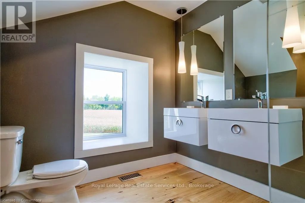 Cross Streets: 10th Concession East & Centre Road. ** Directions: East of Hwy 6, just North of Balaclava School and Our Lady of Mount Carmel Catholic School. 54.99 acres more/less in prestigious Carlisle on natural gas, Bell fibe underground to the house, and walking distance to 2 schools! Here is your opportunity to own a beautiful farm with A2 zoning, has no 'P' City of Hamilton zones, and allows for a variety of permitted uses on natural gas! This sparkling, super stylish, 1800's stone home boasts fresh organic modern decor, sits proud upon a hilltop and offers exceptional vista views, horses frolicking and nature's offerings always so entertaining. Solar panels are owned on contract to 2033 paying an impressive .80 c/kwh, portion of land leased to tenant farmer, equestrian portion leased. Opportunity here to start your own multi generational family farm ... buy and hold ... move in and have fun ... or lease it out for future investment. Carlisle is home to many amenities and the friendly village itself is quite charming, a must visit is the Carlisle Bakery for a tasty sandwich or pizza slice and coffee to go! Golf courses, hockey arena, baseball diamond, walking trails, always lots of outdoor fun! (id:27476)