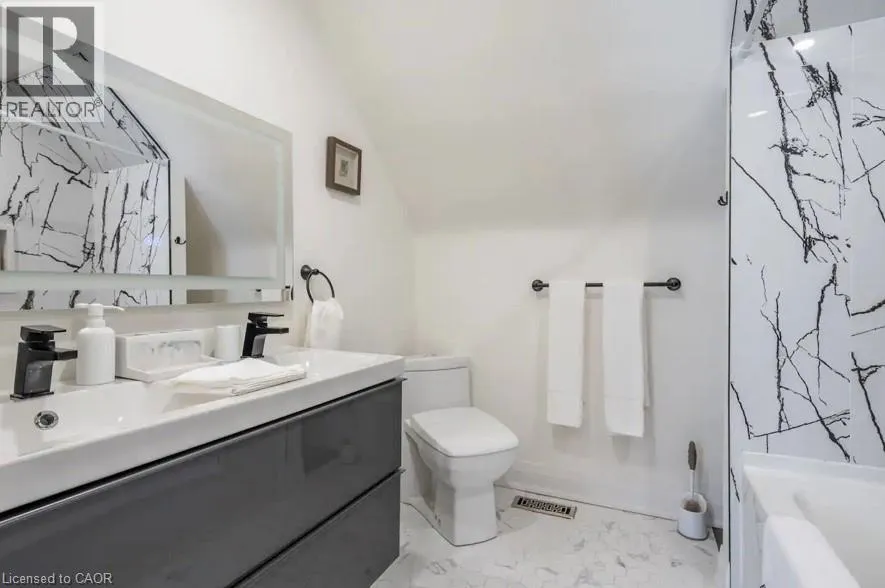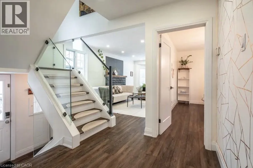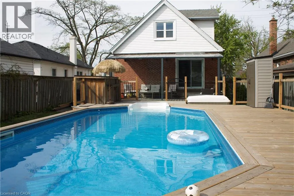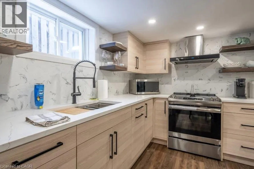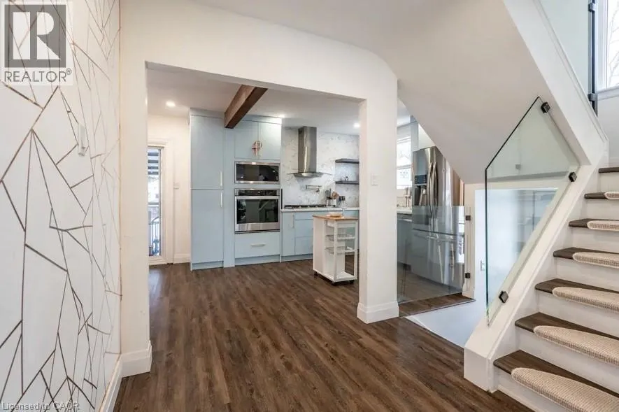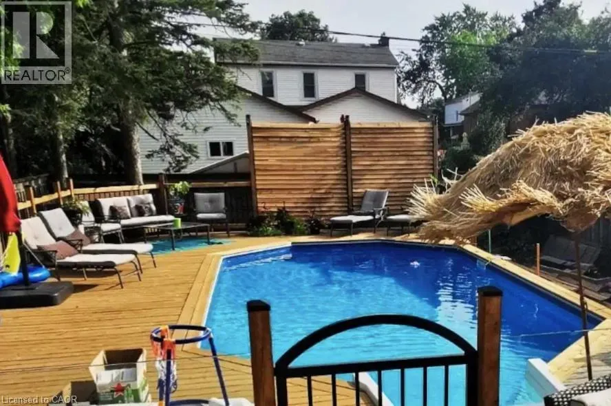 Upper James & Queensdale Welcome to the charming, peaceful yet well-connected treelined neighbourhood of Centremount on the Mountain. As you step inside, you are greeted by the sleek and stylish look of the glass railings flowing seamlessly into the well-appointed living room, perfect for relaxing or entertaining guests. The modern kitchen features custom cabinets fully equipped with gas cooktop, built-in oven, & touchscreen microwave. The farmhouse sink, pot filler, & brass hardware add an opulent feel to the kitchen, creating a luxurious dining experience. The main floor also features a primary bedroom with walk-in closet & ensuite, providing a private retreat. Upstairs, you will find large rooms, offering ample space, comfort, & flexibility to meet your needs. The 5 piece bathroom features a floating double vanity, adding a touch of convenience to a growing family. The basement has been thoughtfully designed with a secondary modern eat-in kitchen, providing a cozy space for gatherings and relaxation. Additionally, you will find a bedroom and a third full bathroom, perfect for hosting guests or extended family stays & rental potential for additional income. One of the standout features of this property is the backyard oasis, which includes a heated saltwater pool. The large wrap-around deck provides plenty of space for lounging and sunbathing, while the California-style awning offers shade and comfort even on rainy days. Your new home with a balance of luxury, tranquility & convenience awaits! (id:27476)