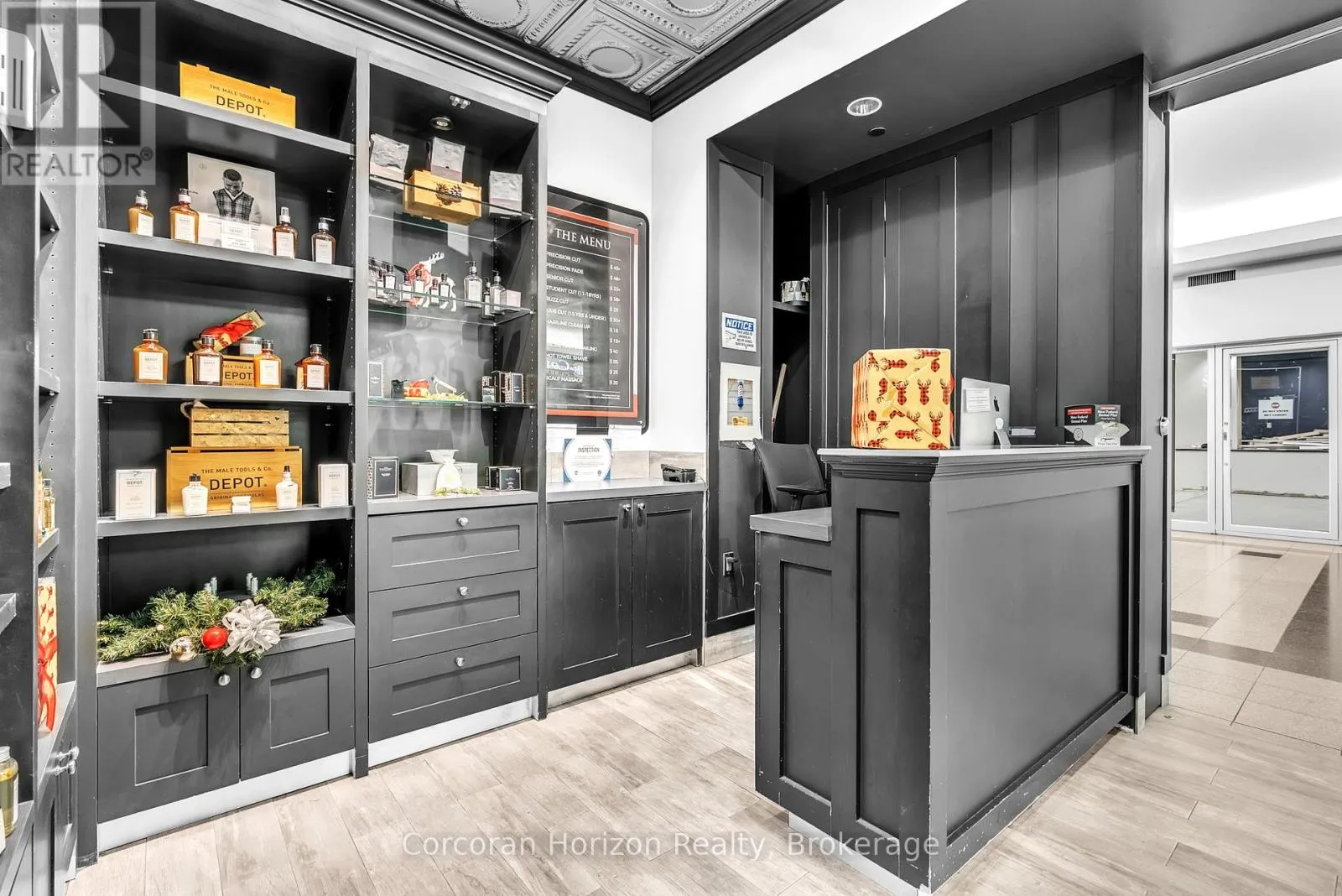 Cross Streets: King and James. ** Directions: Located within Jackson Square Mall, steps from the primary entrance at King and James streets. Established high-traffic barbershop space available for sale in high-traffic Jackson Square Mall! Mavericks Barber Studio has been a staple of of the mall for over fifteen years. Built out by the seller and current tenant to the tune of nearly $200,000 in value, this unit is turn-key, fully equipped, and ready for takeover by another personal services user such as salon, barber, or aesthetician. Includes 4 cutting stations with chairs, 4 wash basins, as well as all built-in shelving, racking, and more. See attachments for full list of chattels. Join notable neighbouring tenants such as TD Bank, Landmark Cinemas, Rexall, Bluenotes, and . Right outside your front door and neighbouring institutions include the financial centre of the city, student residences, City Hall, Hamilton Convention Centre, hotels, the Hamilton Art Gallery, the Hamilton Farmers Market, and so much more. Come join the living, beating heart of the city! **Note** Asset sale only - does not include business name or client database. Lease in place until November 30, 2029. Listing also includes 107 SF basement storage area (not pictured). (id:27476)