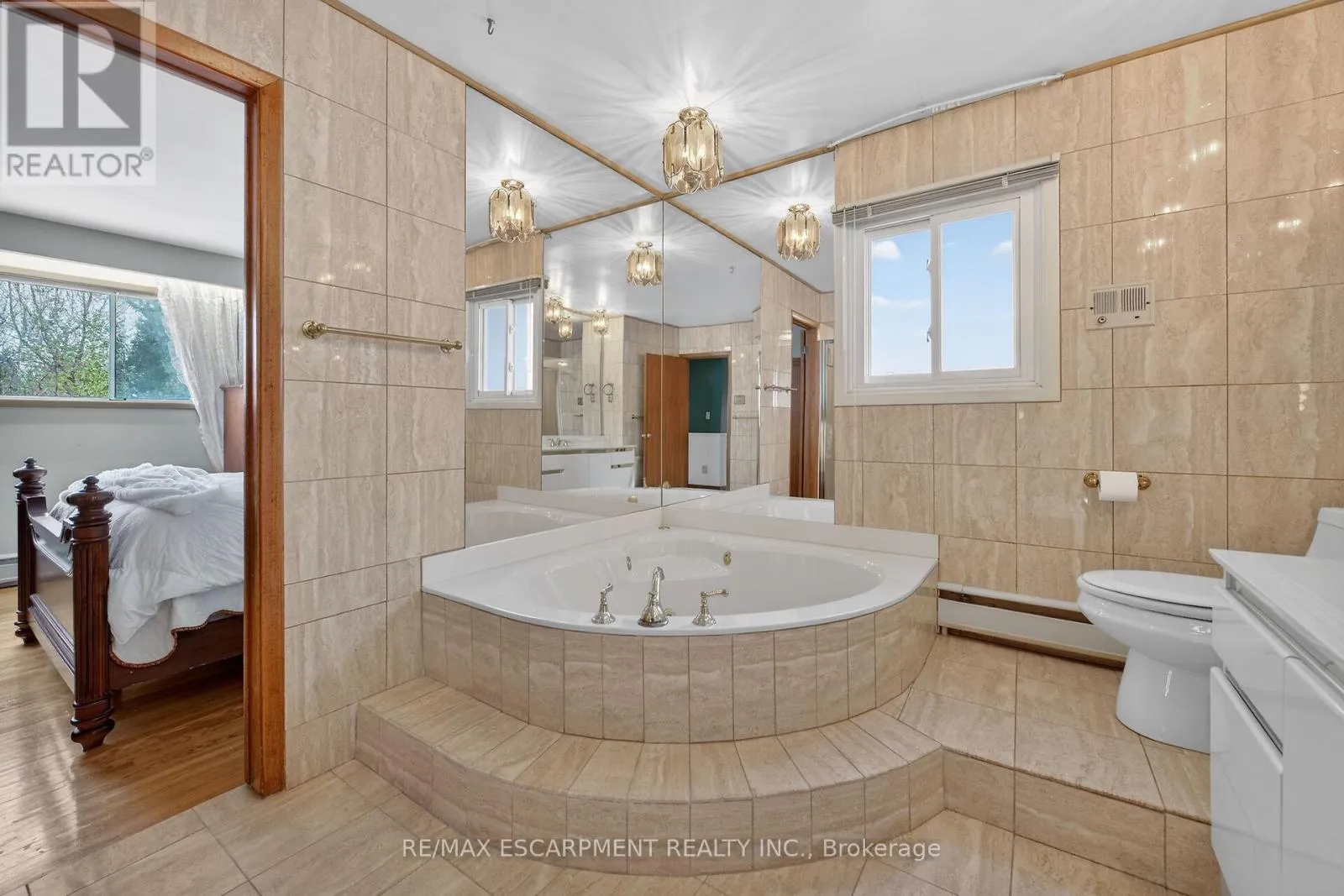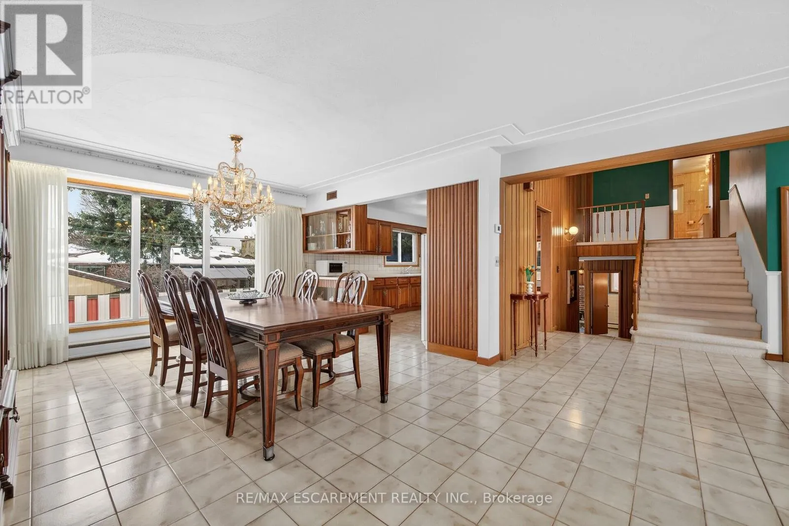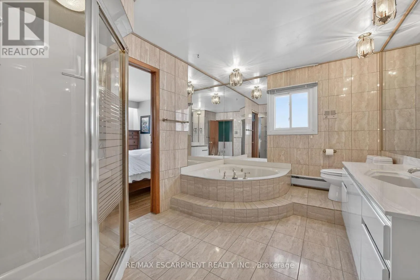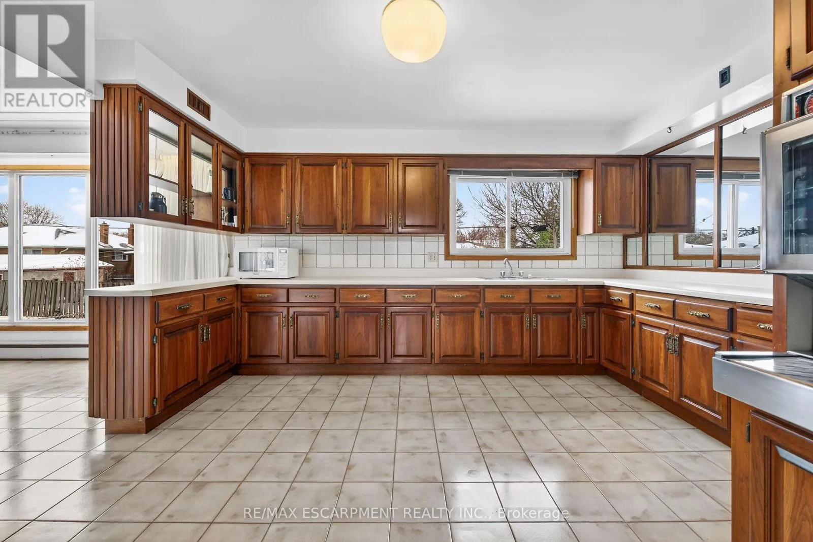 Cross Streets: Inverness Ave E/Southill Dr. ** Directions: Two blocks west of Upper Wellington St, off Inverness Ave E. Prime Location! Steps to Bruce Park & Mountain Brow! Bright & Spacious, Custom Built, Brick 4 Level Sidesplit. Oversized 2 Car Garage with Inside Entry. Impressive Foyer with Cathedral Ceiling. Striking Mahogany Accent Walls. Main Level Features an Inviting Eat in Kitchen with Loads of Cabinets, Expansive Living & Dining Room with Large Light Filled Windows to Highlight the Home's Unique Design. Upper Level Offers 3 Generous Bedrooms with Oversized Closets, Hardwood Floors & Spacious 4 Piece Ensuite Privilege from Primary Bedroom with Separate Shower & Whirlpool Tub. Family Room with Wood Burning Fireplace, Convenient 2 Piece Bath & Four Window Panelled Double Door Walk Out Leading to Fully Fenced in Yard with Concrete Patio & Walkway. Fully Finished Lower Level Boasts Large Recreation Room with Electric Fireplace, Wet Bar, 2nd Kitchen, Vinyl Flooring Installed 2022, Updated 3 Piece Bathroom with Double Glass Door Walk in Shower. Ideal for In-Law Potential or Multi-Generational Families. State-of-the-Art 95% Efficient Boiler Installed 2023. Eavestroughs Replaced 2025. Central Air. Central Vacuum. Owned Hot Water Tank. Double Concrete Driveway, Parking for 4 Cars. Minutes to Juravinski Hospital, Shopping, Schools, Parks, Transit & Highway Access to the Linc! Elementary Schools: Queensdale, Sts. Peter and Paul. High Schools: Hillfield Strathallan, Sir Allan MacNab. Square Footage & Room Sizes Approximate. (id:27476)