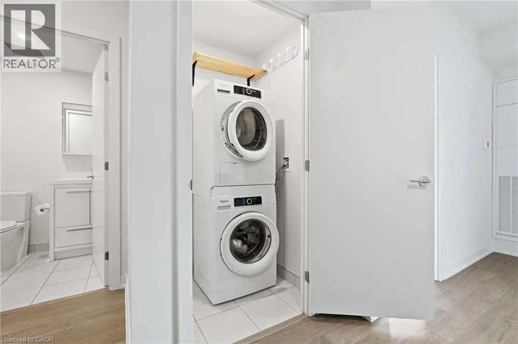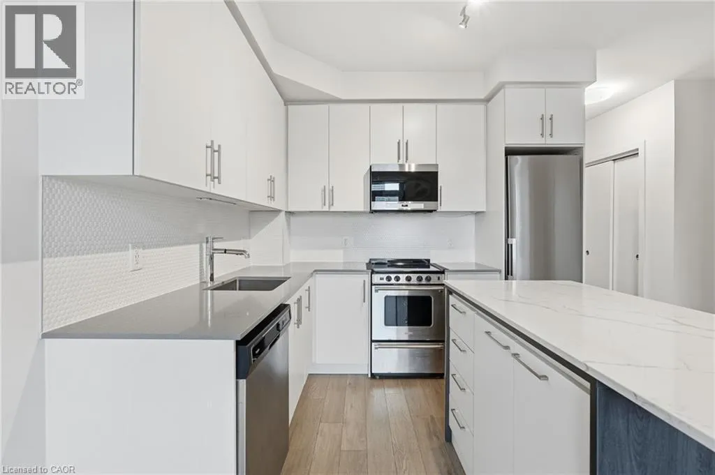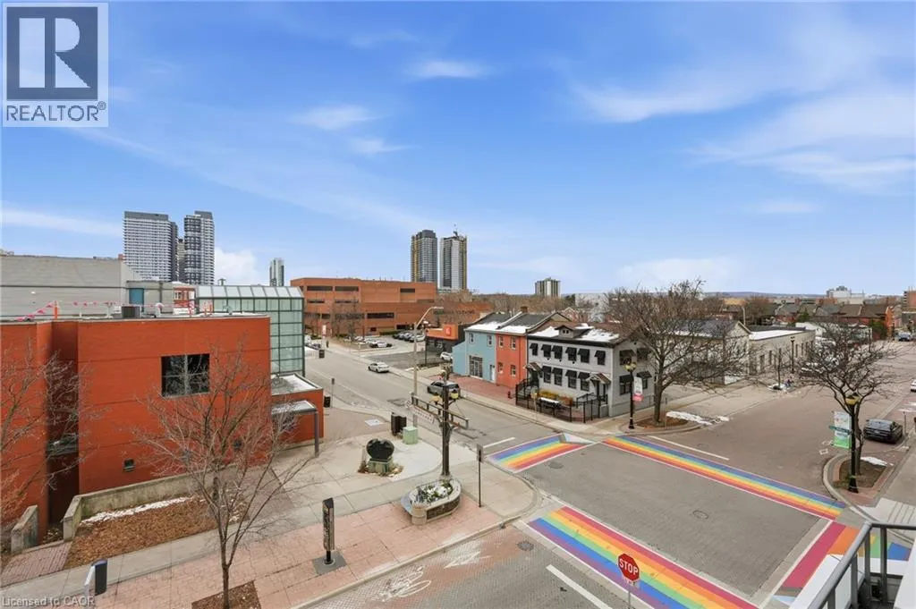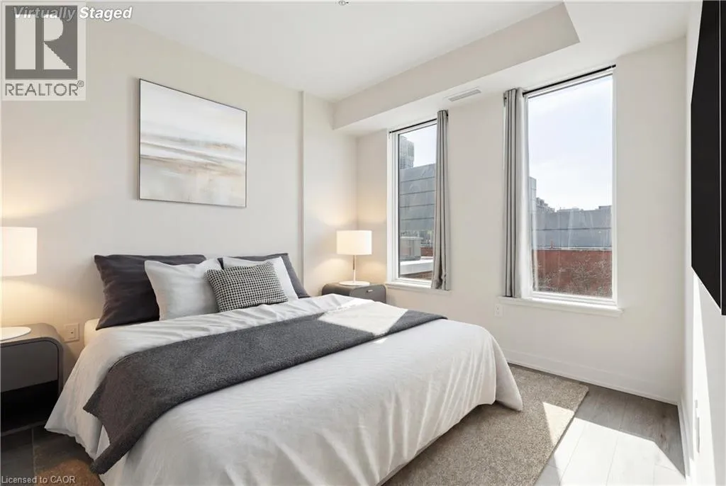 John Street North to King William St, east on King William, building is in the south side Amazing 1 bedroom + den unit with a private outdoor balcony and walk-in-closetâthis one truly shows 10+ with no disappointments. The suite comes complete with a washer, dryer, fridge, stove, dishwasher, microwave, and window coverings. Step into your dream kitchen featuring a stunning quartz island. The balcony offers a beautiful retreat to unwind or entertain, complete with spectacular sunset views. This unit also includes an indoor exclusive parking space, roughed in for EV charging, on ground level, convenient location near elevators for easy loading and unloading, plus a storage locker for added convenience. The building is packed with amenities: concierge, an impressive gym with top-tier equipment, pet washing station, a beautiful, modern, and spacious party room with large kitchen, dining tables, sofas and a fireplace, as well as a stunning rooftop terrace with vast sitting areas to unwind, entertain or dine with access to multiple BBQs, and so much more. The location is unbeatable, just steps to the theatre, restaurants, shops, and transit. Closing date is flexible. (id:27476)