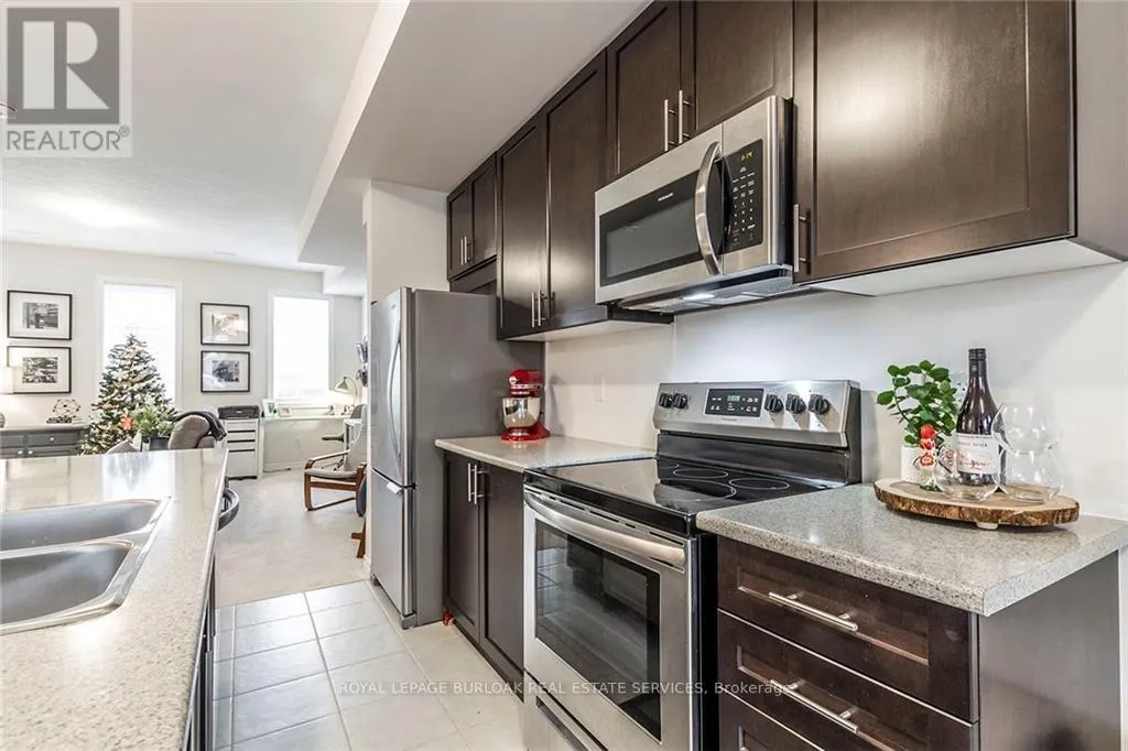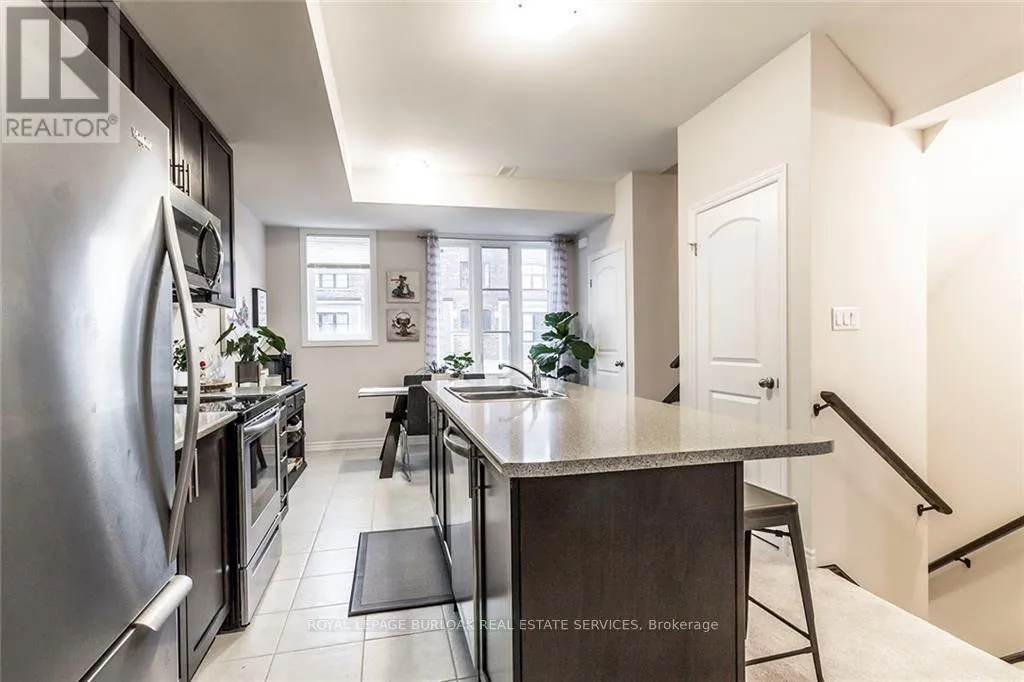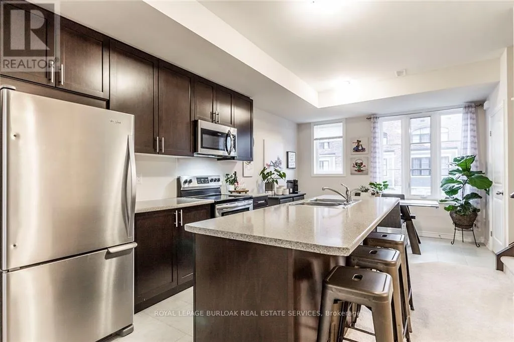 Cross Streets: Hamilton St N and Dundas St E. ** Directions: Hamilton St N t o Dundas St E. Nestled in the vibrant heart of Waterdown, this modern 3-level townhome offers an urban oasis with exclusive CTOR rooftop terrace. Perfectly positioned for convenience, The Tannery is steps from local dining, shops, parks, and the library, ideal for those desiring upscale amenities with a charming small-town ambiance. Easy access to 407/403/QEW & Aldershot GO Station. The open-concept main floor is designed for seamless entertaining, featuring a spacious layout and an eat-in kitchen equipped w SS appliances & expansive island/breakfast bar. Retreat to the upper floors where two sizable bedrooms await, each with W/I closets. The master boasts a Juliet balcony with sliding doors & ensuite bath. A convenient in-suite laundry & 2nd full bathroom add to the thoughtful layout. The pinnacle of this unique property is the private rooftop terrace. Enjoy serene evenings under a partially covered area. Including 1 parking space. The perfect package for stylish, convenient living. (id:27476)