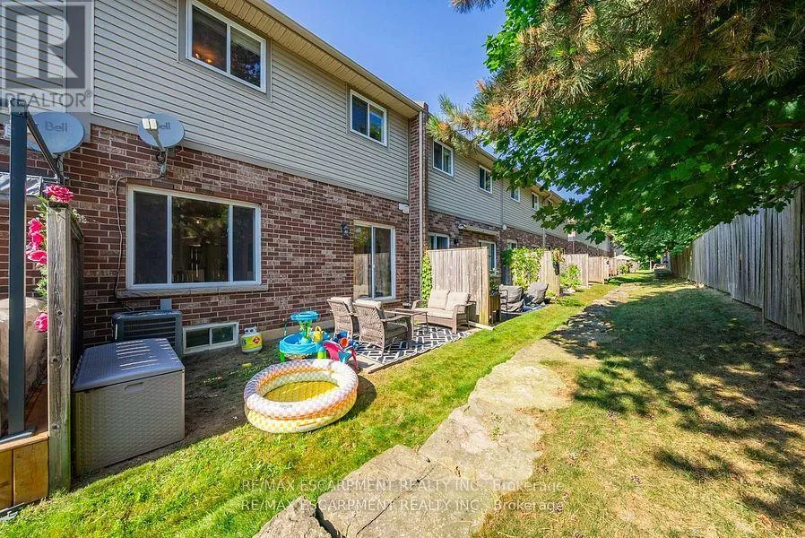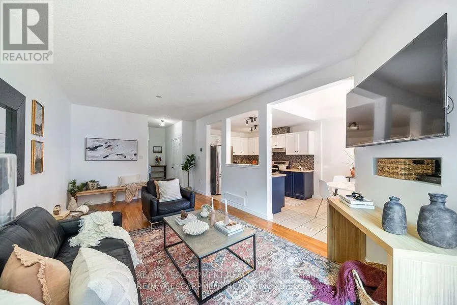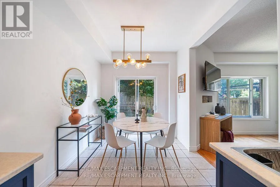 Wilson to Shaver A prime Ancaster location close to trails, highway access, shops, and restaurants. The street itself is quiet, perfect for evening walks, yet just minutes from everything you need. This home is an excellent fit for families, offering 3 spacious bedrooms, 2 full bathrooms upstairs, and a powder room on the main floor. As you enter, you'll appreciate the tall ceilings, front closet, inside entry to the garage, and parking for two with the single-car garage and driveway. The main floor has been freshly painted, with the kitchen cabinets professionally refinished and light fixtures thoughtfully updated for a more modern feel. The layout is bright and airy, with large back windows and sliding doors that flood the living and dining areas with natural light. There's space for both a breakfast nook and a formal dining area, making it ideal for everyday living and entertaining. Upstairs, all three bedrooms are generous in size with their own closets. Two of the bedrooms feature striking accent walls with gorgeous millwork. The unfinished basement provides plenty of opportunity to create a space tailored to your needs. Step outside to the private, partially fenced backyard. One of the standout features of this property is the low-maintenance lifestyle. Snow removal, lawn care, window cleaning, roof, and common area upkeep are all taken care of (and more), and there's plenty of visitor parking. It's not only perfect for families but also an ideal choice for downsizers, snowbirds, or investors looking for worry-free ownership. At this price point, few homes in Ancaster are truly move-in ready with updated finishes and everything complete. (id:27476)