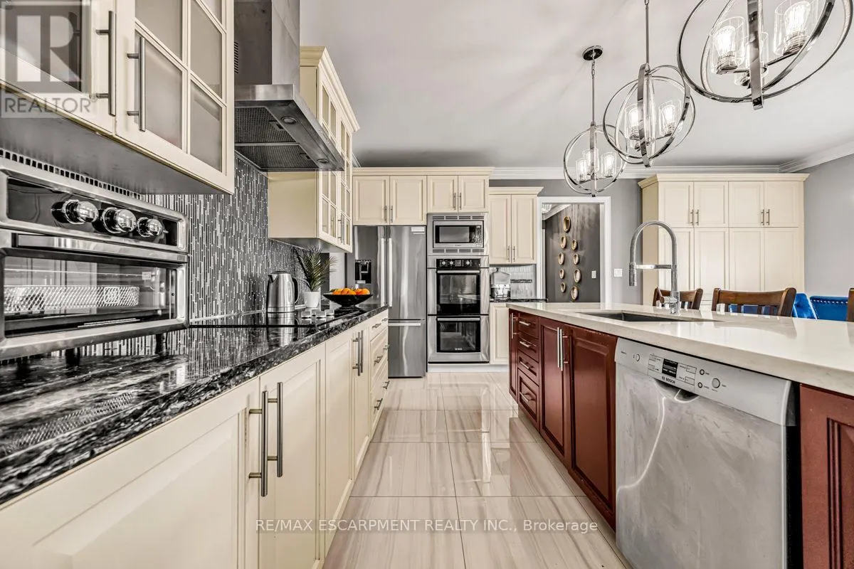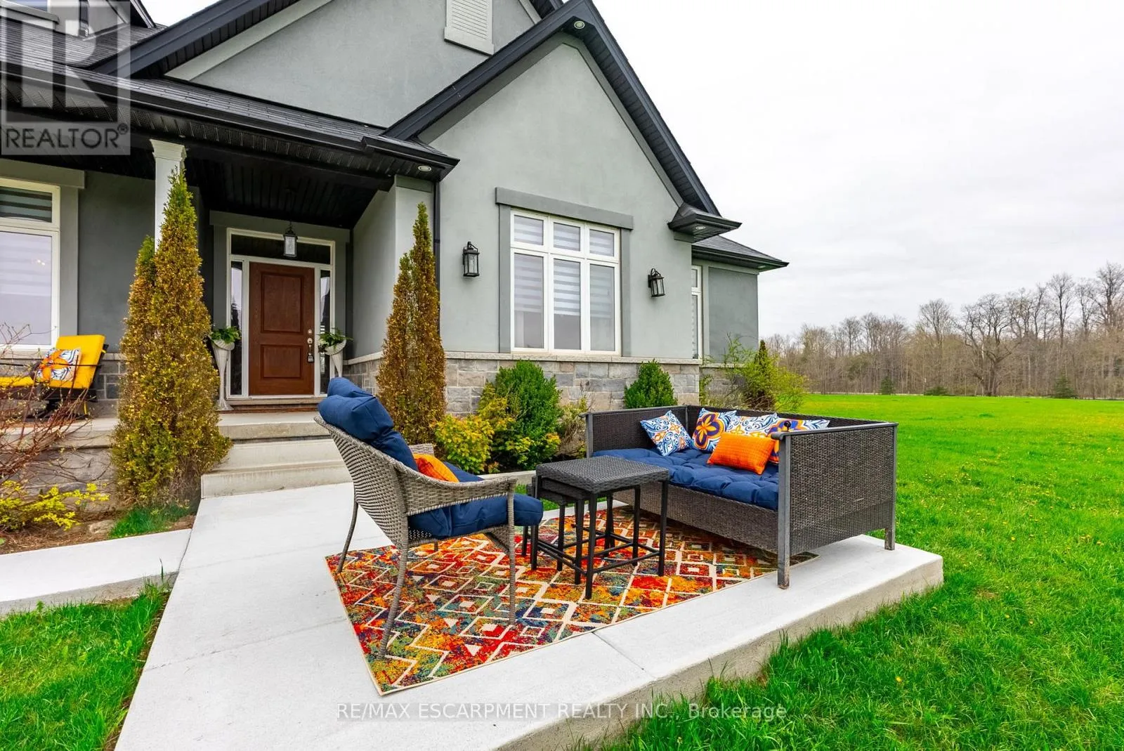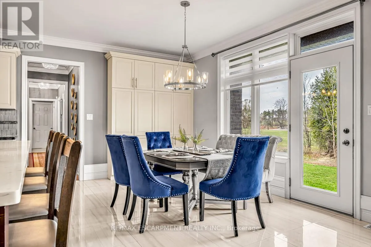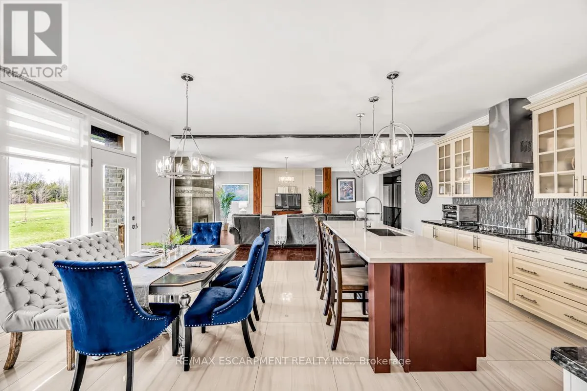 Hwy 6 to Campbellville Rd to Chesswood Trail Welcome to this stunning 3,000-square-foot home, perfectly situated on a peaceful dead-end street and surrounded by equally exquisite homes. Step into the impressive foyer where the quality of craftsmanship is immediately evident. To your left, a generous formal dining room sets the tone for elegant entertaining, while straight ahead, a sprawling living room centred around a cozy propane fireplace flows seamlessly into the show-stopping open-concept kitchen. On the south side of the home are two bedrooms, including a guest bedroom with access to a private 3-piece bathroom and the luxurious primary suite featuring a spa-inspired 5-piece ensuite and a spacious walk-in closet. The north wing of the home offers thoughtful convenience with a secondary entrance, a walk-in pantry and a well-equipped main floor laundry room with direct access to the oversized 3-car garage. Further along, you'll find two generously sized bedrooms and a beautifully finished 5-piece bathroom. The finished staircase leads to a completed landing that opens into an expansive, unfinished basement. Here, you'll notice the impressive features already in place, including a state-of-the-art geothermal heating and cooling system, a water filtration system and large windows that flood the space with natural light. Stepping outside, you'll find a newly paved driveway and a welcoming walkway that enhance the home's curb appeal, while the expansive 3.554-acre lot is ready for your personal touch. This incredible bungalow is sure to impress! RSA. (id:27476)