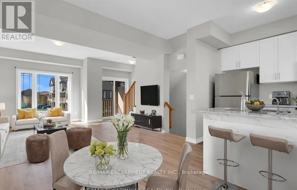 Highland Rd to Picardy Dr. Stylish Freehold Townhouse in Prime Stoney Creek Mountain Location. Welcome to this beautifully maintained freehold townhouse, where modern design meets everyday functionality in one of Stoney Creek Mountain's most desirable neighborhoods. This bright and spacious 2-bedroom, 2-bathroom home features a private backyard, an attached garage with convenient inside entry, and additional parking on the driveway-offering everything you need for comfortable, low-maintenance living. Step inside to a contemporary open-concept main floor, where a sleek modern kitchen seamlessly flows into the living and dining areas-perfect for entertaining or simply relaxing in style. Large windows fill the space with natural light, enhancing the warm, inviting atmosphere. Upstairs, the primary bedroom provides a peaceful retreat with a generous walk-in closet and a private 3-piece ensuite. A well-sized second bedroom and a beautifully finished 4-piece bathroom complete the upper level, offering space and comfort for family or guests. Ideally located directly across from Saltfleet High School, this home is just minutes from shopping, restaurants, parks, and transit, with quick and easy access to the Red Hill Valley Parkway and Lincoln Alexander Parkway-making your commute a breeze. Whether you're a first-time buyer, downsizer, or investor, this home offers unbeatable value in a prime location. (id:27476)