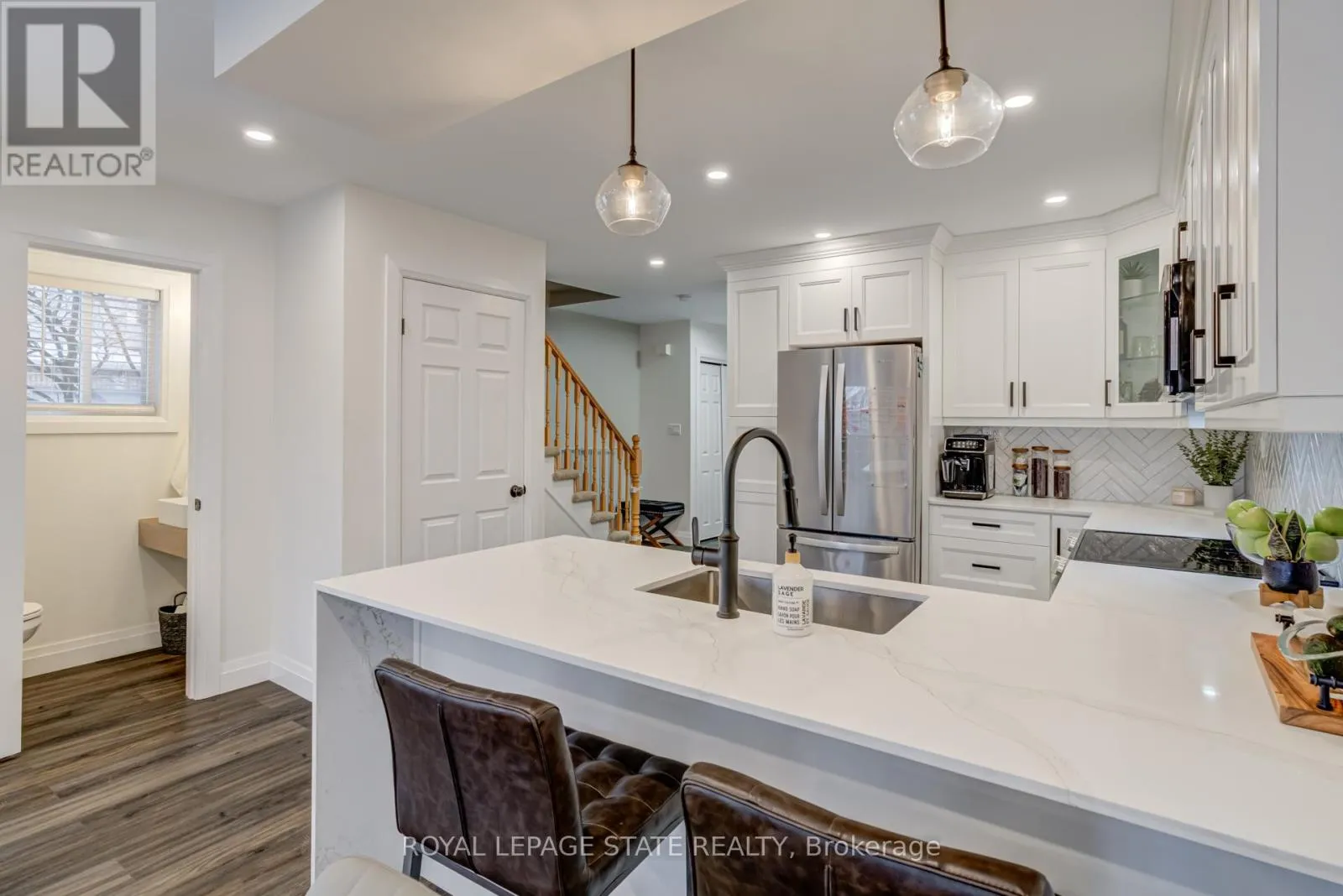 Cross Streets: Gatestone Dr and Highland Rd W. ** Directions: south on Gatestone Dr from Highland Rd W then left on Highbury Dr. This attractive end-unit townhome is tucked away in a great family neighbourhood called Leckie Park. It is close walking distance to schools. There is 2139 sq ft of finished living space. The main floor was renovated to have spacious open concept living in 2022. The updates include granite counters, double-sized under mount sink, new cabinetry and appliances, pot lights, and luxury vinyl flooring throughout the main floor enhancing the continuity of open concept flow between kitchen, dining and living room and extends to the 2pc bath and hallway. The main floor is updated with Smart light switches which can be controlled by a Google Home app or Alexa. Walk out through the living room sliding doors to a fenced deck area for extended living. The finished recroom is 21x16 feet offering potential for a variety of entertaining options, and has a 3pc bath. The large primary bedroom has a walk-in closet that could potentially be converted to an ensuite given the 2pc bath below it, with the option of a closet being added wall to wall at the other end bedroom still leaving a large bedroom. Backs onto the park of the elementary school. Close to parks, shopping, dining and community amenities. Come and see all that this home and area have to offer. (id:27476)
