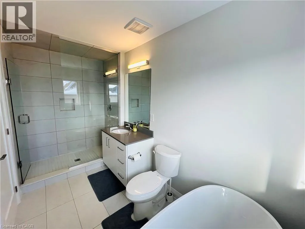 Rymal Rd W to Hazelton Ave to Alessio Dr to Cherry Blossom Heights Welcome to this beautifully newly built one of the most spacious semi-detached 2-storey home by the reputable Spallaci Home Builders. Nestled in the highly sought-after, upscale, & family-friendly West Hamilton Mountain neighbourhood, this home offers the perfect combination of modern design, everyday comfort, & exceptional convenience. From the moment you arrive, the inviting brick & stone exterior & charming covered porch create a warm & welcoming first impression. Step inside to discover a bright, open living space enhanced by 9-foot ceilings & large windows that fill the main floor with natural light, creating an uplifting & spacious atmosphere. The heart of the home is the stunning kitchen, featuring quartz countertops, sleek overhead cabinets & drawers, & a seamless walk-out to the rear deckâideal for outdoor dining, entertaining, or simply enjoying a quiet moment outside. The modern open-concept layout makes hosting & everyday living feel effortless, with a smooth flow from kitchen to dining to living areas. Upstairs, the home continues to impress with a well-designed second floor that offers comfort & privacy for the whole family. The main bedroom serves as a peaceful retreat, complete with a private ensuite bath & a walk-in closet. Two additional bedrooms provide flexibility for children, guests, or office spaceâone of which includes its own walk-in closet for added convenience. The separate second-floor laundry room is a thoughtful & practical touch that simplifies daily routines. The partially finished basement, complete with a 3-piece bath, offers excellent potential for additional living spaceâwhether you envision a cozy family room, home gym, hobby area, or guest suite. Perfectly located minutes from the Garth & Upper James shopping areas, & a short distance to nearby parks & schools, this home delivers style, comfort, & convenience in one exceptional package. A wonderful opportunity to enjoy modern living in a fantastic neighbourhoodâwelcome home! (id:27476)