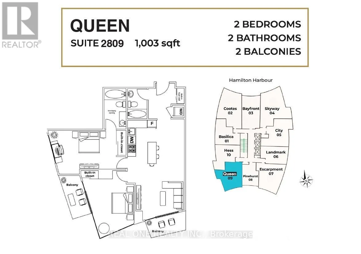 Cross Streets: George & Caroline. ** Directions: Caroline to George. Marquee Residence Is One Of The Most Sought-After Luxury Condo Buildings In The Heart Of Downtown Hamilton A Modern, 5-Year-New Landmark And The Second-Tallest Building In The City. This 1007 sqft Spacious Two-Bedroom Corner Unit On The 24th Floor Offers Two Oversized Balconies With Unobstructed South And West Views Overlooking The Escarpment And The Lake. A Sleek Kitchen Featuring A Central Island, Quartz Countertops, Backsplash, European-designed Custom Cabinetry And Stainless-Steel Appliances. Vinyl Flooring Throughout. Two Bright Bedrooms With Built-In Closet Organizers, And Large Windows That Fill The Home With Abundant Natural Light. In-Suite Laundry Included. Residents Enjoy Top-Notch Amenities, Including A Gym, Yoga Studio, Two Party Rooms,Complete With Kitchenette, Lounge Chairs, Fireplace And Billiards Table, And An 8th-Floor Outdoor Terrace Ideally Located Just One Block From Hess Village, Nations Supermarket, Samir Supermarket, Jackson Square, And The New McMaster Family Practice. HSR And GO Bus Stops Are Right At Your Doorstep. Close To McMaster Children's Hospital, St. Joseph's Healthcare Centre, And Hamilton General Hospital. No Smoking Building. Other Units With Various Sizes And Layouts Are Also Available, Offering Sweeping Views Of The Waterfront, Escarpment, And Downtown Skyline. Indoor Parking Available at $150/Month. Available Immediately. Flexible Possession. (id:27476)