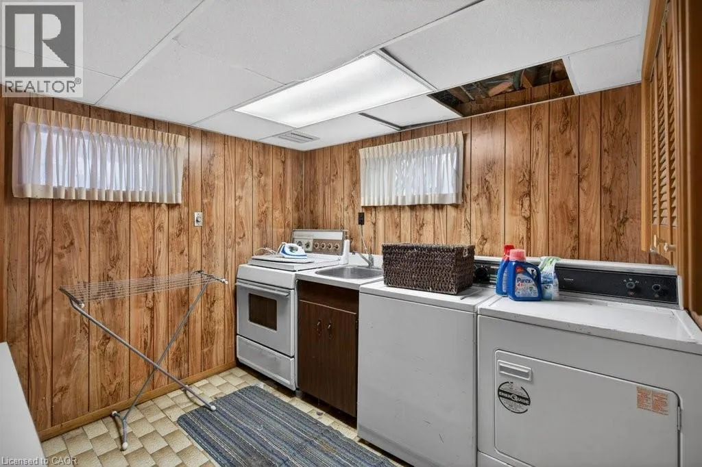 Dallas to East 37th Calling all families, your perfect house is waiting. Hamilton Mountain bungalows come in all shapes and sizes but this thousand square-foot brick beauty is the perfect blend of modern meets sweat equity potential. Built in 1956 this property has been in the same family for almost 75 years! Recent upgrades include refinishing all the original main floor hardwood, a new roof in 2012, upgraded central air in 2015 and many updated vinyl windows. With a one-of-a-kind floor plan this home divides itself into wings, one for living and one for sleeping. Three bedrooms, all with generous closets, all completed in hardwood flooring with overhead lighting share a main floor bathroom with an updated vanity, additional storage and a laundry chute. Stop looking at tiny homes and enjoy living with two main level storage closets and a generous kitchen with hardwood cabinetry. The basement is an absolute time capsule, you know they have no water issues here because it hasnât changed since 1960. Whether youâre looking to live out your wall panel fantasy, or are looking to renovate to accommodate your lifestyle or family members, with a separate walk up entrance, loads of storage, and a powder room and wet bar, this transitional space is ready for any design. Donât overlook the fully fenced yard, concrete drive and back patio with coverage to provide more seasons of use. Fantastic location, steps to schools and parks. Contact us if youâre dreaming of bungalow living! (id:27476)
