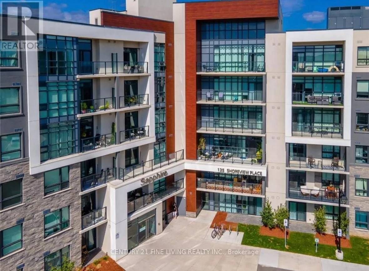 Millen Rd/ N Service Rd Welcome to the Beautiful Waterfront condo at Unit 326 at 125 Shoreview Place! This stunning unit offers 668 sqft of modern living space, including 1 bedroom + den, 1 bathroom, and stylish finishes. The gourmet kitchen is complete with stainless steel appliances, quartz countertops, a double sink, and breakfast bar. The spacious living room provides access to a private 53 sqft balcony overlooking the lake, perfect for entertaining. Located at Sapphire Condos, enjoy waterfront living at its finest. Exclusive parking spot and locker included. (id:27476)