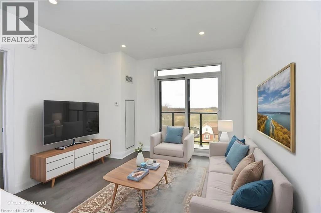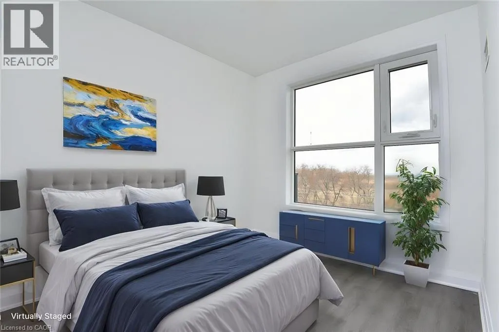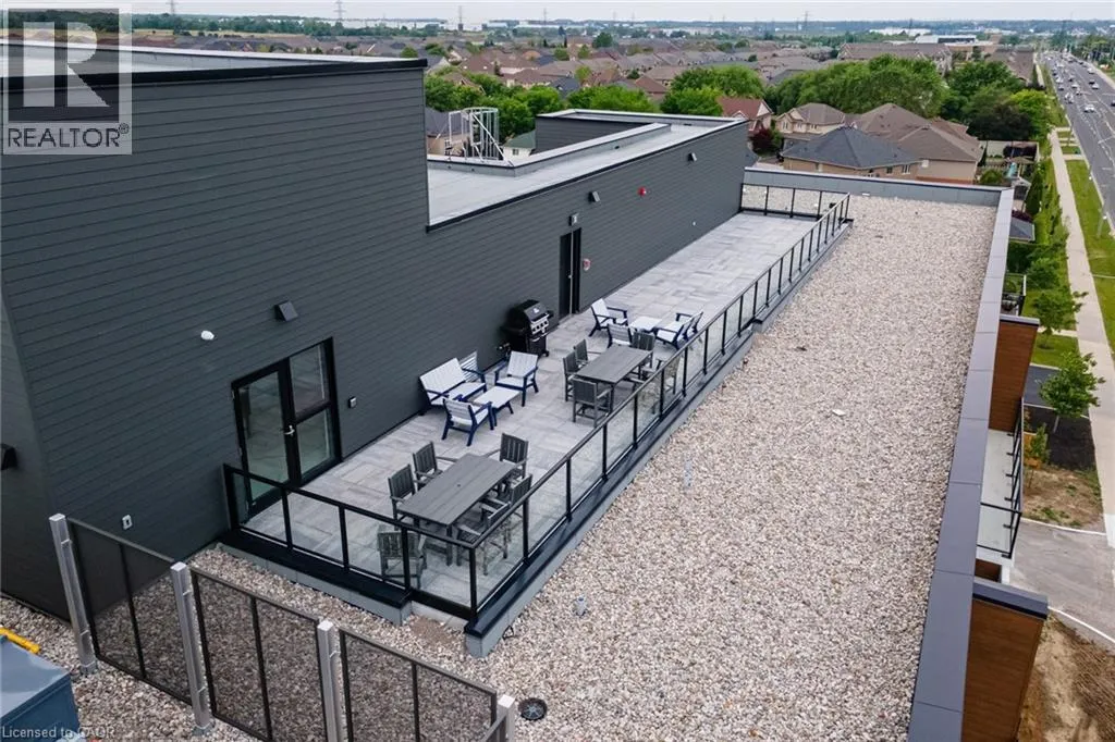 East on Rymal Rd E from Upper Red Hill Valley Pkwy Brand-new, never-lived-in top-floor 1 Bedroom + Den suite at PEAK Condos on the Upper Stoney Creek Mountain. Bright open-concept layout with 9 ft ceilings, quartz countertops, pot lights, luxury vinyl flooring, stainless steel appliances, and in-suite laundry. The den offers flexible space for a home office. Private balcony with unobstructed views. Building amenities include a rooftop terrace with BBQs, fitness room, party room, bike storage, and landscaped green spaces. Underground parking and same-floor locker included in the lease rate. Located directly across from the Eramosa Karst Conservation Area and close to shopping, parks, schools, transit, and highway access. Available immediately. (id:27476)