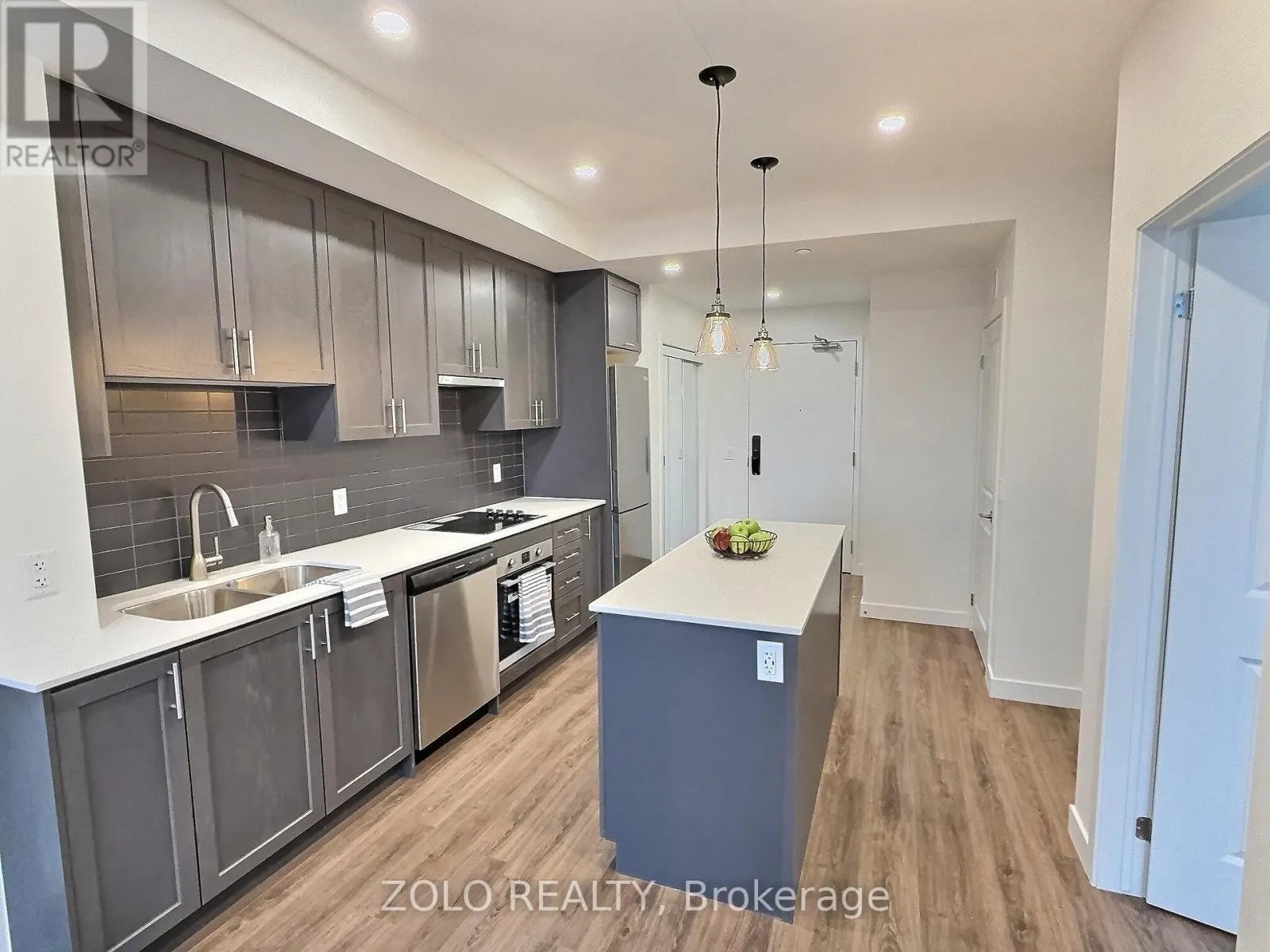 Cross Streets: North Service and Green Rd. ** Directions: North service to Green Rd. Welcome to this bright and modern 1-bedroom suite featuring the desirable Canary floor plan at Muse Lakeview Condominiums. Offering approximately 609 sq. ft. of interior living space plus a private balcony, this thoughtfully laid-out unit provides a comfortable and functional living environment with no wasted space.The open-concept living and dining area is well proportioned and filled with natural light, flowing into a contemporary kitchen designed for both form and function. The kitchen features upgraded vinyl plank flooring, upgraded countertops and backsplash, and a full-size island with a built-in power outlet-ideal for casual dining, working from home, or entertaining.The spacious primary bedroom boasts a semi-ensuite and large walk-in closet. The suite is completed by a sleek 4-piece bathroom and the convenience of in-suite laundry. Custom window coverings will be installed throughout, including blackout blinds in the bedroom, scheduled for early January.One underground parking space and one storage locker are included. Located in a newly built condominium with easy access to highways, public transit, shopping, restaurants, and everyday amenities, this is an excellent opportunity for tenants seeking modern, low-maintenance living in a well-connected location. (id:27476)