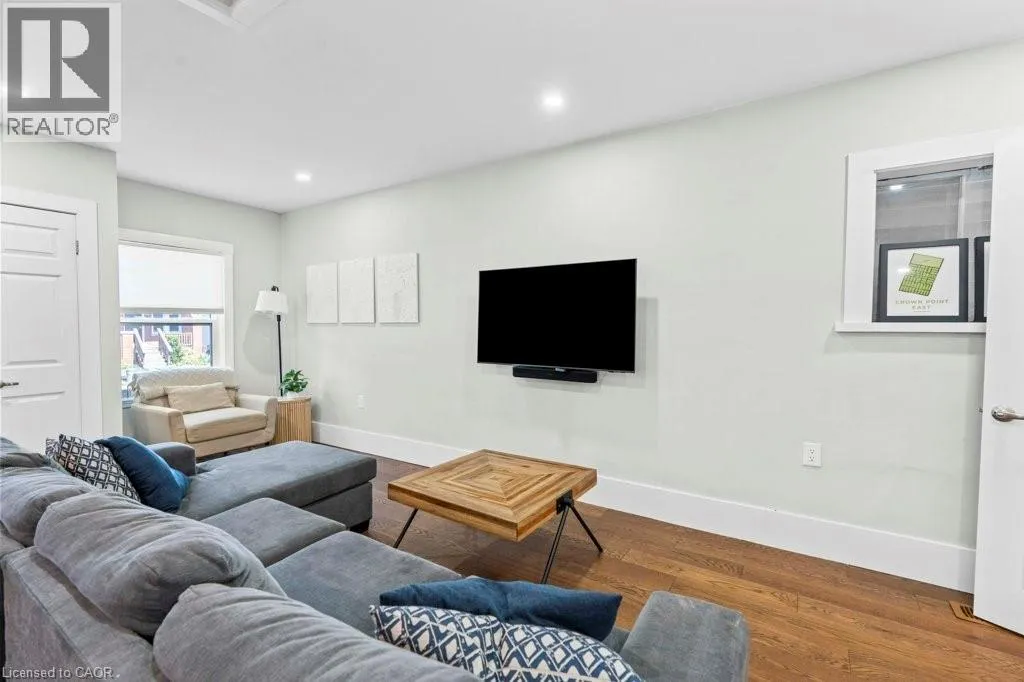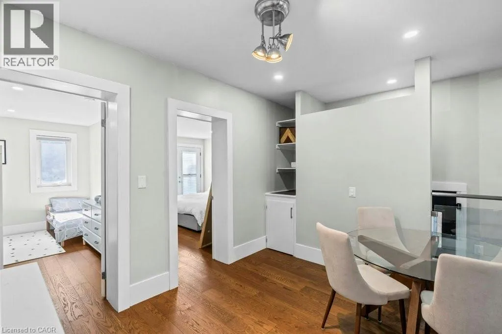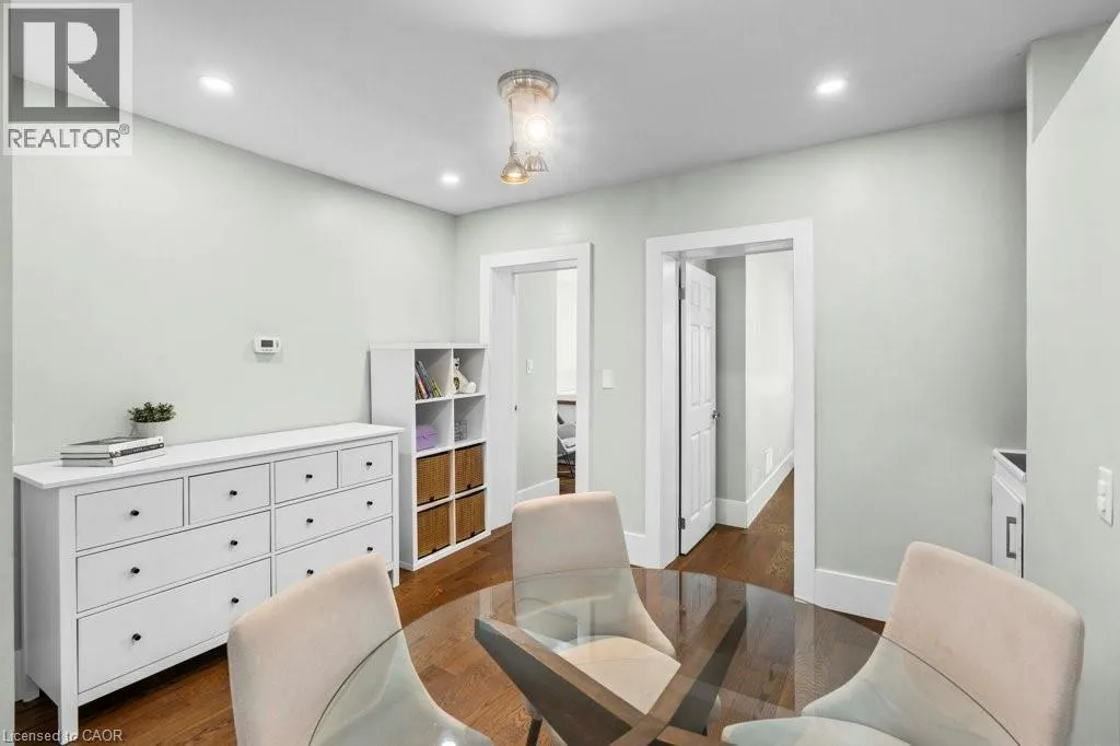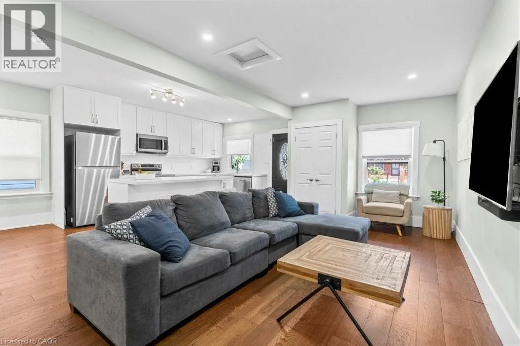 Main St E to Park Row N Extensively updated in 2021, with a large backyard, and walking distance to trendy Ottawa St N! The large covered front porch makes for an attractive and welcoming first impression. Entering the home, you'll see it features an open concept layout, with engineered hardwood and potlights throughout. The kitchen is the heart of the home, offering a huge centre island. Along with white cabinetry, quartz countertops, a double sink overlooking the porch, this kitchen is ideally made for both daily living and entertaining. The living room includes a coat closet and front window to bring in natural light. The dining room is tucked behind the kichen/living, offering space for a dining set as well as enough room for a storage hutch, kids toys, or even desk for a work station. At the back of the home, you'll find two good sized bedrooms, with the bright primary offering a glass door to the back deck. A renovated 3 piece washroom, with standing shower, completes the main level. Downstairs, the finished basement provides versatility for your family's needs. The family room here is the perfect area for cozy movie nights and a kids play room! The basement also offers a separate office space. Complete with a window for added natural light, this room ensures privacy without taking away from other living areas. With an additional 3 piece washroom, laundry room, and plenty of storage, you'll find this basement suits every need. Back upstairs, you can utilize the side door to access the backyard. This fully fenced yard has enough space for outdoor dining, a large area for kids and pets to play, as well as a shed for your storage. Two cars? No problem! The driveway is long enough to accommodate both. Located just a few streets over from trendy Ottawa St N, parks, and schools, you're not far from easy commuting access either. There's lots to love here at 18 Park Row N! (id:27476)