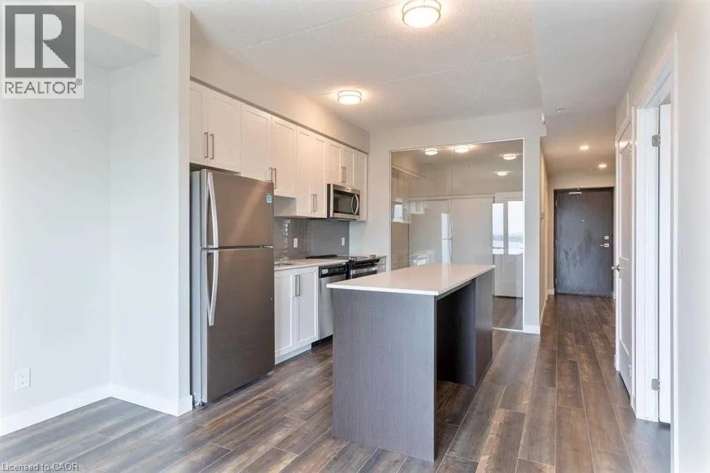 King St W and Queen St N This fantastic open-concept layout offers a generous living and kitchen area featuring sleek laminate flooring, a convenient breakfast bar, brand-new stainless steel appliances, and a walk-out to a private balconyâperfect for relaxing or entertaining. The primary bedroom boasts a large closet and a luxurious 4-piece ensuite. Enjoy exceptional building amenities including an exercise room, party room, and a stunning rooftop deck with garden space. Located in an unbeatable area close to parks, the library, public transit, recreation centre, schools, shopping, and so much more! (id:27476)