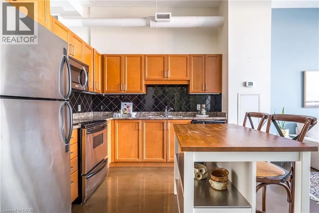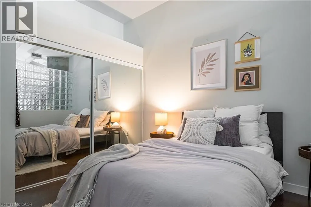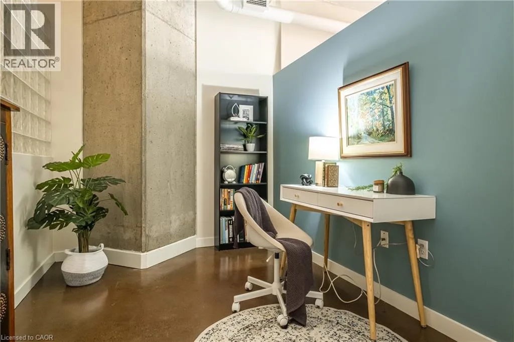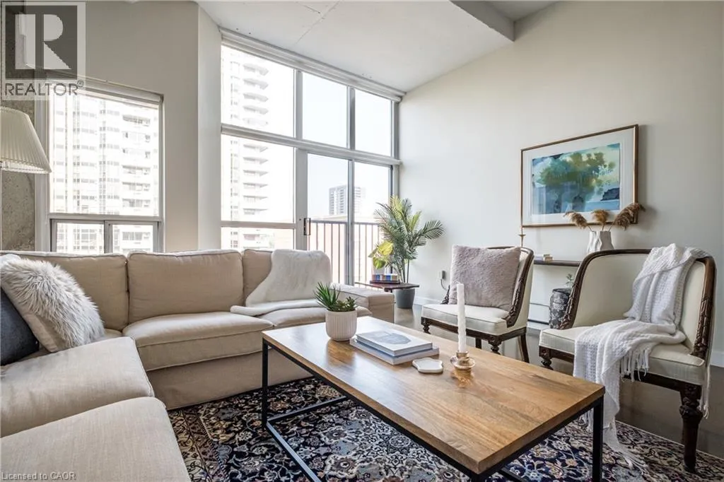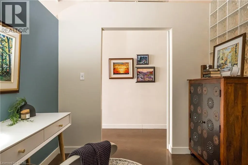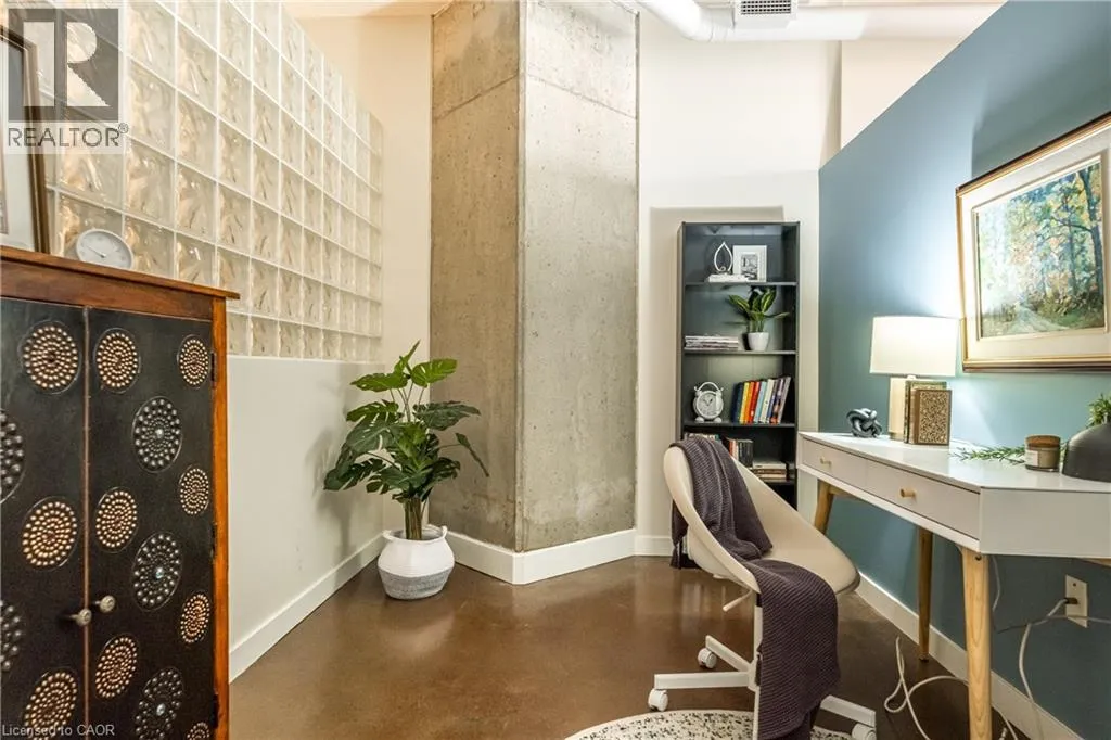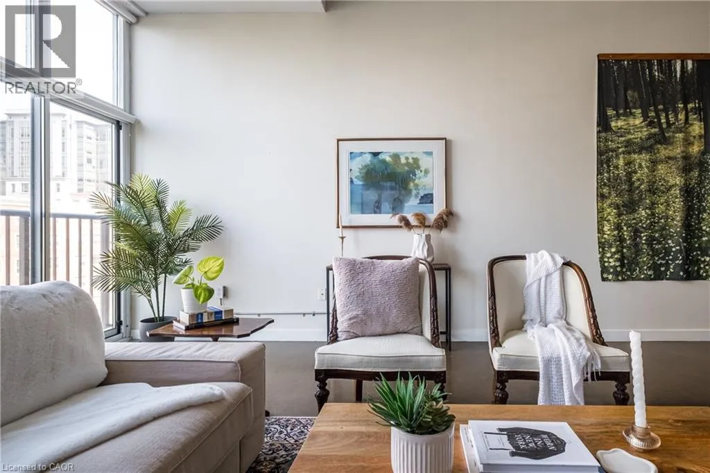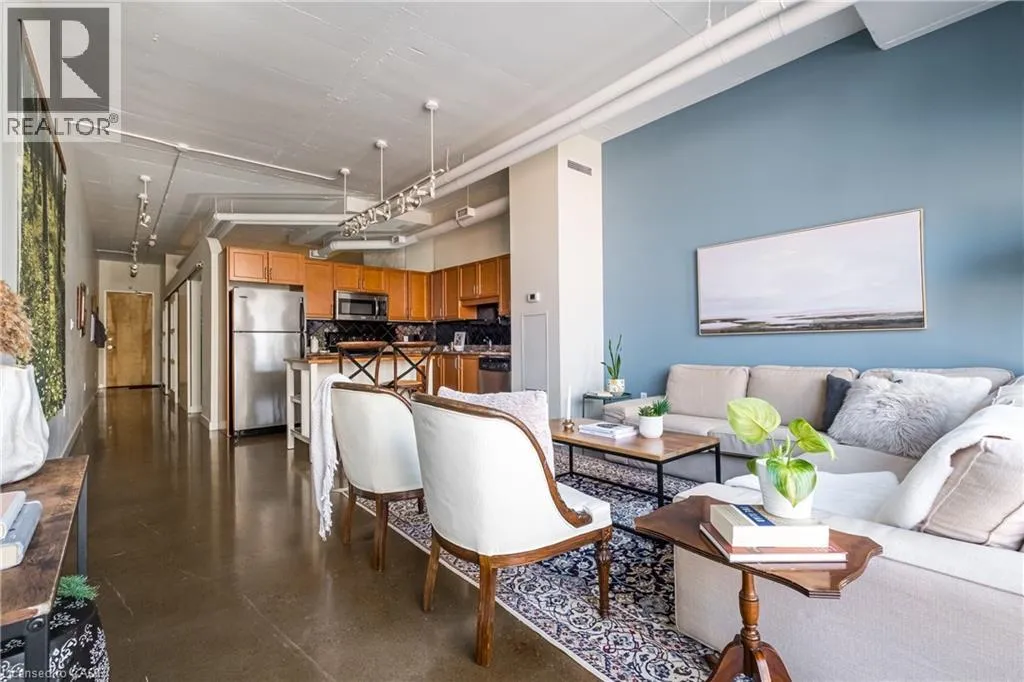 Bay St S between Jackson St and Main St Experience urban chic living at the Core Lofts! This super cool condo boasts a modern industrial vibe with polished concrete floors, soaring 10+ft ceilings with exposed pipes and beams, glass bock accents and floor-to-ceiling windows for a ton of natural light. This 834 sqft unit features 1 bedroom plus a den that can also serve as a home office or an additional bedroom, a 4pc bath, convenient in-suite laundry and an open-concept living and dining area. The kitchen features stainless steel appliances with ample cupboards and storage and the spacious open living area is perfect for entertaining with a Juliette balcony to enjoy west-facing sunset views. Residents enjoy premium building amenities, including a gym, party room, guest suites, and rooftop patio with BBQ perfect for taking in breathtaking city skyline views. The unit include an underground parking spot and convenient lockers on 8th-floor. This sought-after building in a prime downtown location is close to St. Joseph, McMaster and all area hospitals + the David Braley Medicine Centre making it ideal for medical professionals. Within walking distance to the new TD Coliseum, the Convention Centre, the Downtown Core, restaurants, shopping and amenities, Art Gallery of Hamilton, Central Library, Farmersâ Market and just minutes to trendy Locke St S. Public transit direct to McMaster University, Go-transit, and easy access to the 403 make this cool and convenient condo at the Core Lofts the perfect choice to call home! RSA (id:27476)