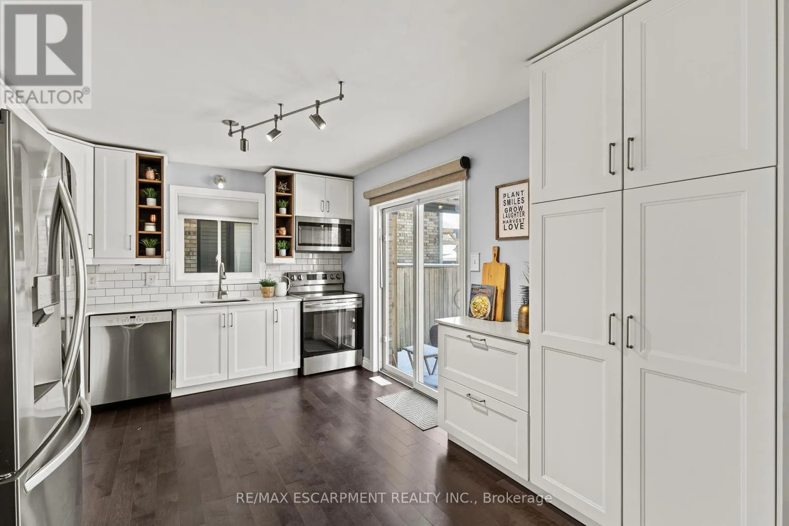 Cross Streets: Wills Crescent. ** Directions: Tanglewood Drive - Wills Crescent - Wilbur Drive. Welcome to 11 Wilbur, a beautifully updated 3+1 bedroom, 2.5 bath home in one of Binbrook's most established family neighbourhoods. Enjoy a bright foyer with double-door entry, an updated white kitchen (2019) with quartz counters and subway tile backsplash, and hardwood floors on the main and upper levels (2020). The kitchen walks out to a private, fenced yard with a large concrete patio and double Toja Grid pergola (2020)-perfect for outdoor living. Upstairs offers three spacious bedrooms, including a primary suite with Roman tub and separate shower. The finished lower level adds a rec room and a 4th bedroom with its own walk-in closet. Major updates include: roof (2020), windows (2021), insulated garage door (2021), central air (2018), furnace (2024), and owned hot water tank (2025). Stamped concrete driveway and walkway with parking for four complete the exterior. Close to schools, parks, shopping, and conservation areas, with easy commuting via the Confederation GO Station-just a 15-minute ride into Hamilton. Move-in ready and perfectly located, 11 Wilbur offers comfort, updates, and convenience in a highly desirable community. (id:27476)