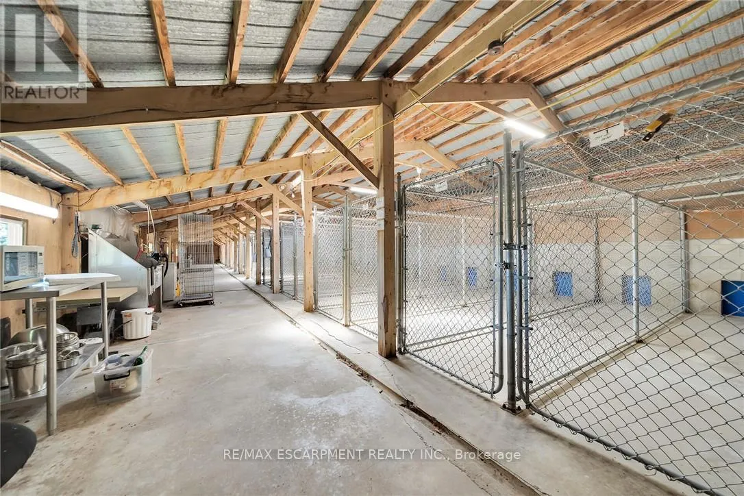 Cross Streets: FIDDLERS GREEN. ** Directions: South on Fiddlers Green Rd FROM 403. Left on 65 (Carluke Rd). Ideally located, Incredible Ancaster Investment Opportunity. Rare turn key pet care facility tied to Celebrity dog trainer Sherri Davis with loyal clientele base & minutes from Hamilton Airport. A picture perfect setting situated on stunning 9.5 acre triangular corner lot on sought after Carluke Road E. The 45' x 125' detached outbuilding is currently set up for 28 indoor / outdoor kennels, pet grooming area, and room for business expansion. The 45' x 150' second outbuilding includes heated upper level set up for dog training and main level with concrete floor that is used for storage. The property also includes a beautifully updated 4 bedroom Bungalow with multiple updates throughout, great curb appeal, extensive concrete patio, & above ground pool. Conveniently located minutes to Ancaster, Mt. Hope, 403, Linc, & Red Hill. A transferable City of Hamilton kennel license is available with the sale making this an Irreplaceable package. Live, work & grow your business, brand, & Lifestyle. (id:27476)