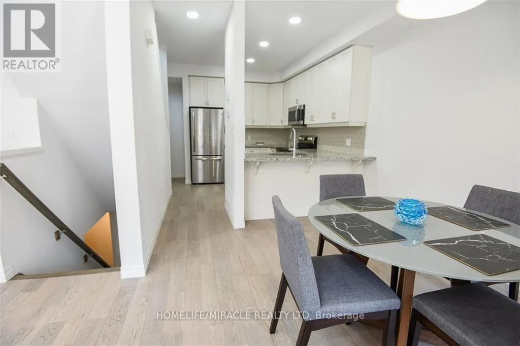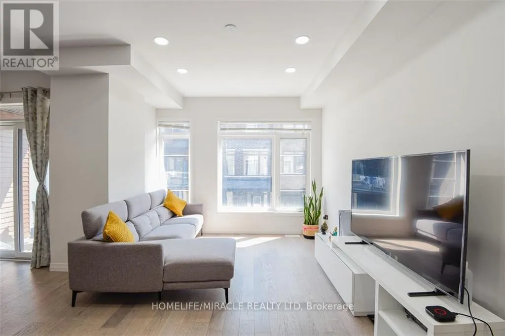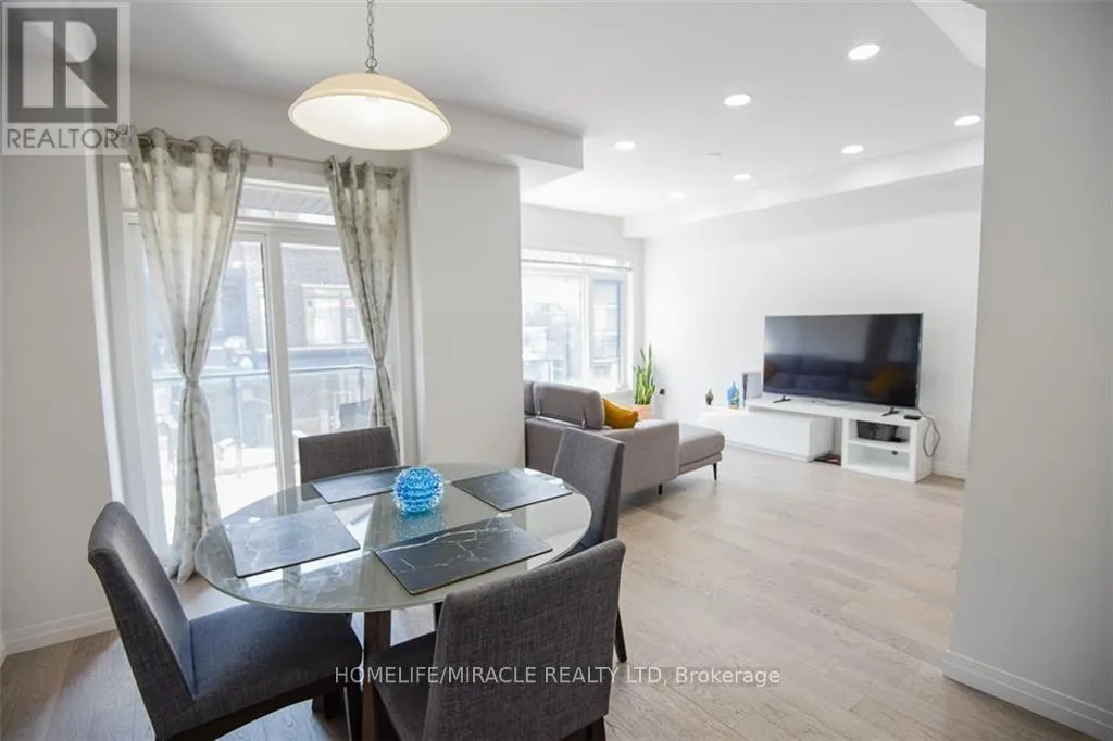 Rymal Rd E & Upper Red Hill Welcome to this modern Losani-built urban townhouse located in the sought-after Madison Central Park community. This beautifully maintained 3-bedroom, 3-washroom home is only 6 years old and offers exceptional convenience with walking-distance access to plazas, grocery stores, parks, a community center, and scenic conservation-area trails. Featuring 9 ft ceilings, an open-concept floor plan, and a bright balcony, the home is filled with natural light throughout. The interior includes wood/vinyl flooring, pot lights, and quartz/granite countertops in both the kitchen and bathrooms. The stylish kitchen boasts tall shaker-style cabinets, pot & pan drawers, stainless steel appliances, and a convenient breakfast bar-ideal for both everyday living and entertaining. (id:27476)