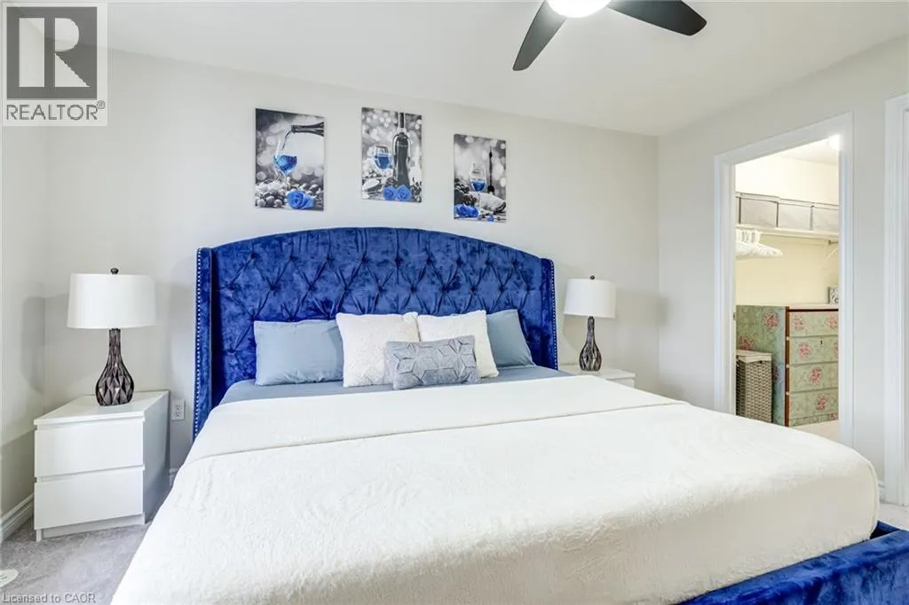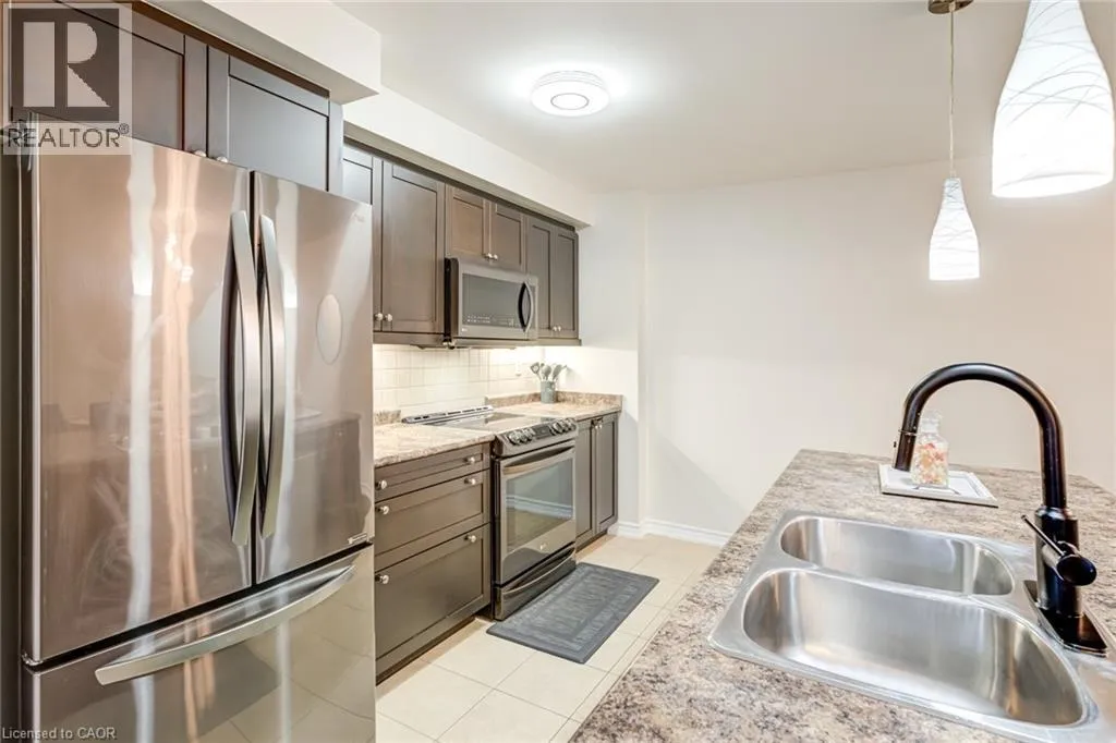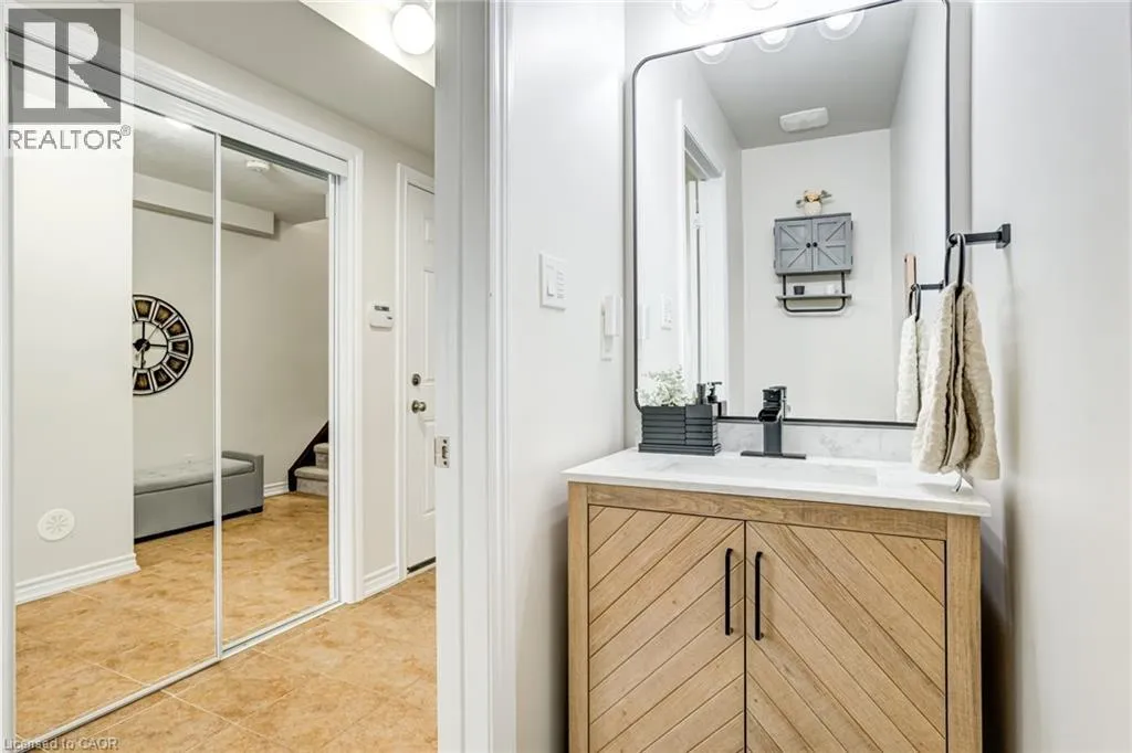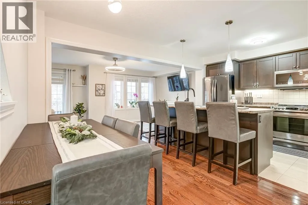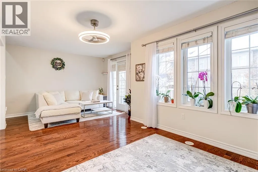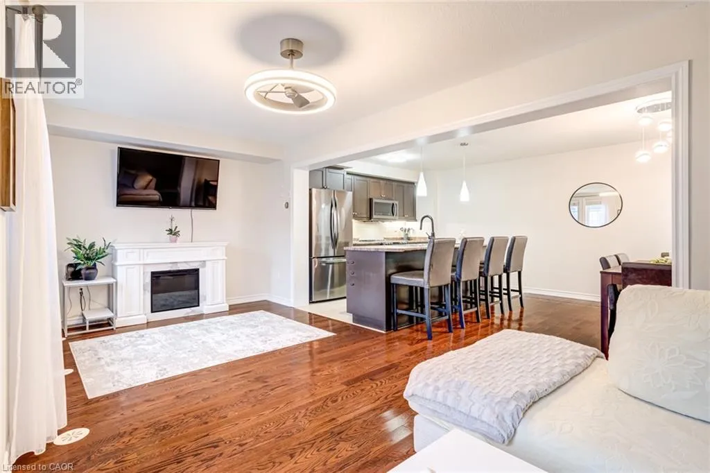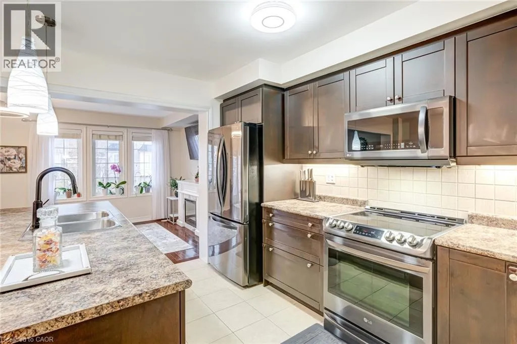 North on Upper Wellington St., West on Sirente Dr Absolutely stunning home with custom lighting and upgrades throughout. This 2 bedroom, 1.5 bath, home offers warmth and style from every angle. Enjoy this beautiful, open, and airy main floor, with hardwood flooring, overflowing with natural light leading to the spacious terrace for those BBQ days. Large kitchen with oversized island is both practical and inviting. 2019 kitchen appliances makes cooking feel like a dream. Newer carpeting on stairs and top floor (2021) Top floor includes two fantastic sized bedrooms. Primary bedroom offers large walk-in closet and ensuite privilege. Great floor plan with plenty of storage space, and attached garage with auto-garage door opener, allow for organization and functionality in your day-to-day living. 2 pc powder room renovated in 2024. Newer washer/dryer (2021). Perfectly cared for home, immaculately maintained, and conveniently located, a must see! (id:27476)