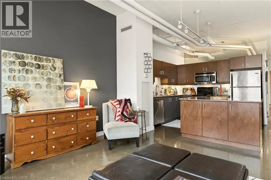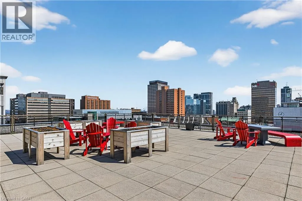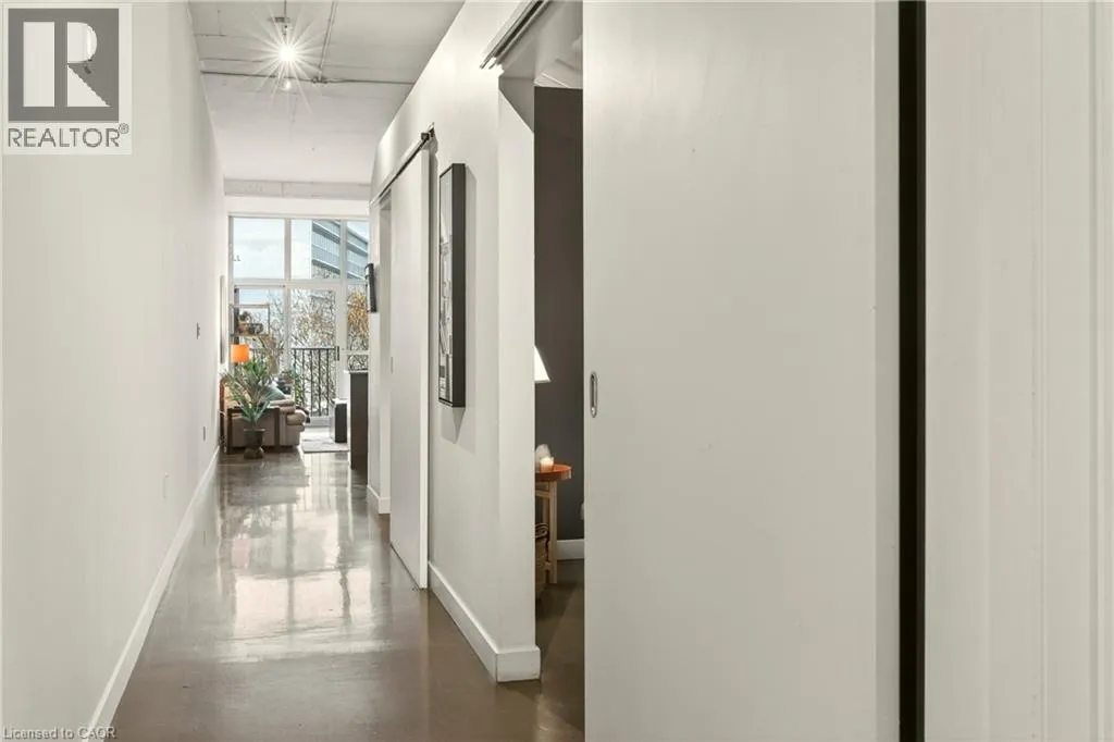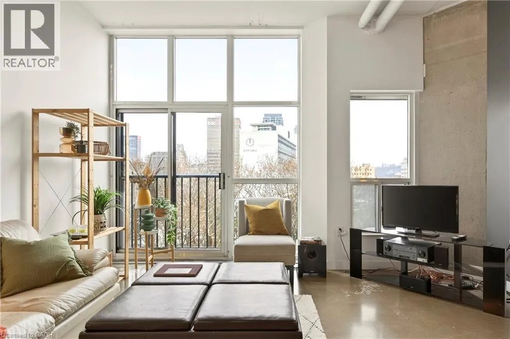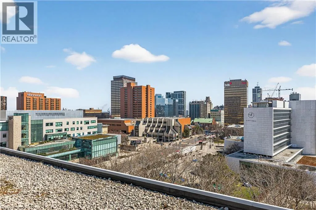 Heading north on Bay street south, building is located on the corner of Jackson and Bay, Garage access off Jackson What do you want from an industrial style condo? Convenient downtown location, underground parking, concrete floors, 10'7 tall ceilings and open concept living. The Core Lofts at 66 Bay St S offer all of this and more. This 1 bedroom + den east facing unit, features a spacious main bedroom, with the option of a 2nd for guests, or feel free to use that space for your office, gaming area or library. The main living area is perfect for entertaining with granite counters, island and floor to ceiling windows looking out at some of the city's best modern architecture including the Stanley Roscoe designed City Hall, and the 70s modernist Stelco Tower by Arthur C.F. Lau. Building amenities include an exercise room, rooftop terrace and a party room. You have all the best of downtown at your fingertips, walking to the farmers market, shows at the new TD Coliseum, tons of fantastic restaurants and shops on Locke St, James N and South as well. (id:27476)