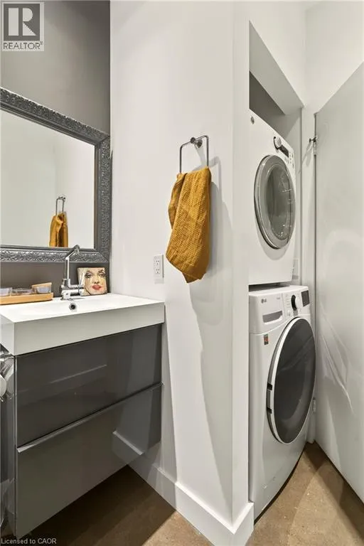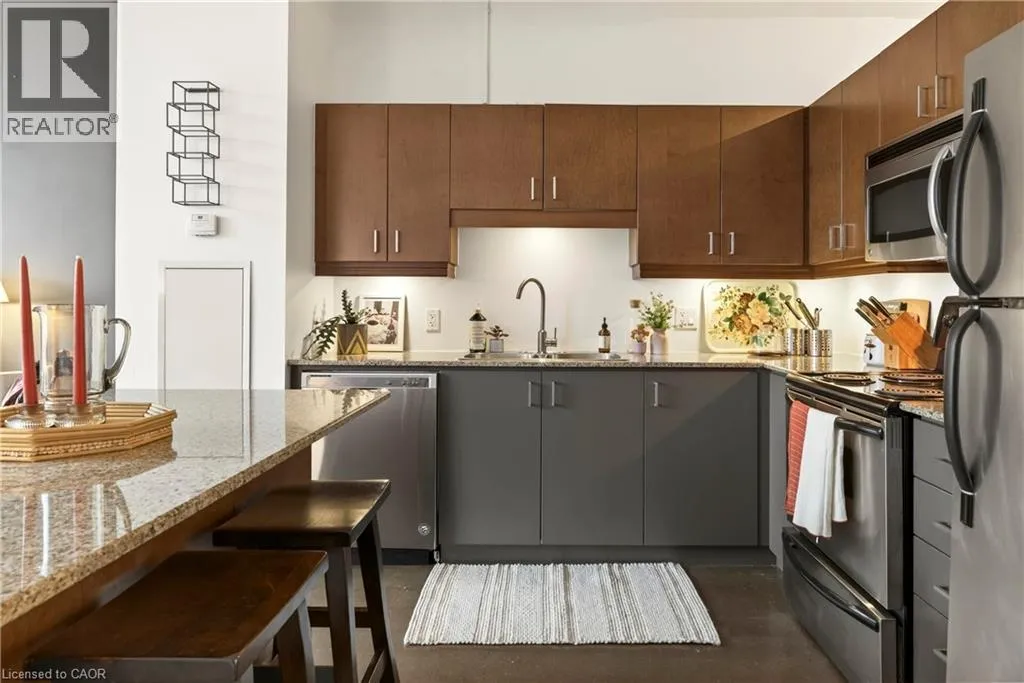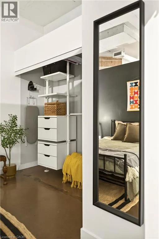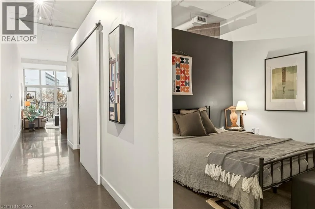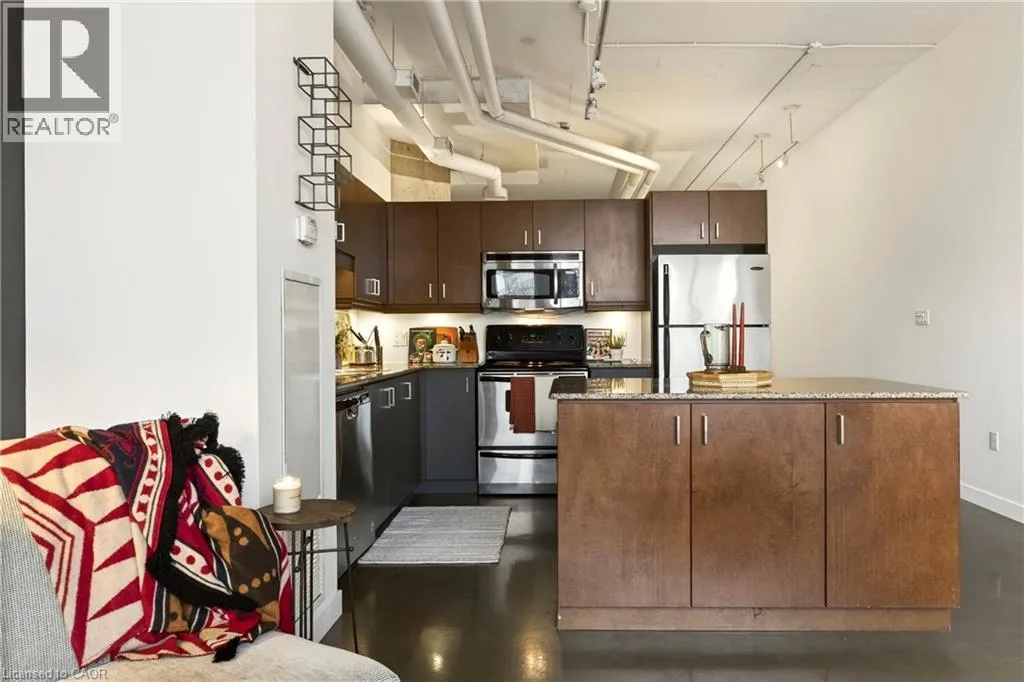 Heading north on Bay street south, building is located on the corner of Jackson and Bay, Garage access off Jackson What do you want from an industrial style condo? Convenient downtown location, underground parking, concrete floors, 10'7 tall ceilings and open concept living. The Core Lofts at 66 Bay St S offer all of this and more. This 1 bedroom + den east facing unit, features a spacious main bedroom, with the option of a 2nd for guests, or feel free to use that space for your office, gaming area or library. The main living area is perfect for entertaining with granite counters, island and floor to ceiling windows looking out at some of the city's best modern architecture including the Stanley Roscoe designed City Hall, and the 70s modernist Stelco Tower by Arthur C.F. Lau. Building amenities include an exercise room, rooftop terrace and a party room. You have all the best of downtown at your fingertips, walking to the farmers market, shows at the new TD Coliseum, tons of fantastic restaurants and shops on Locke St, James N and South as well. (id:27476)